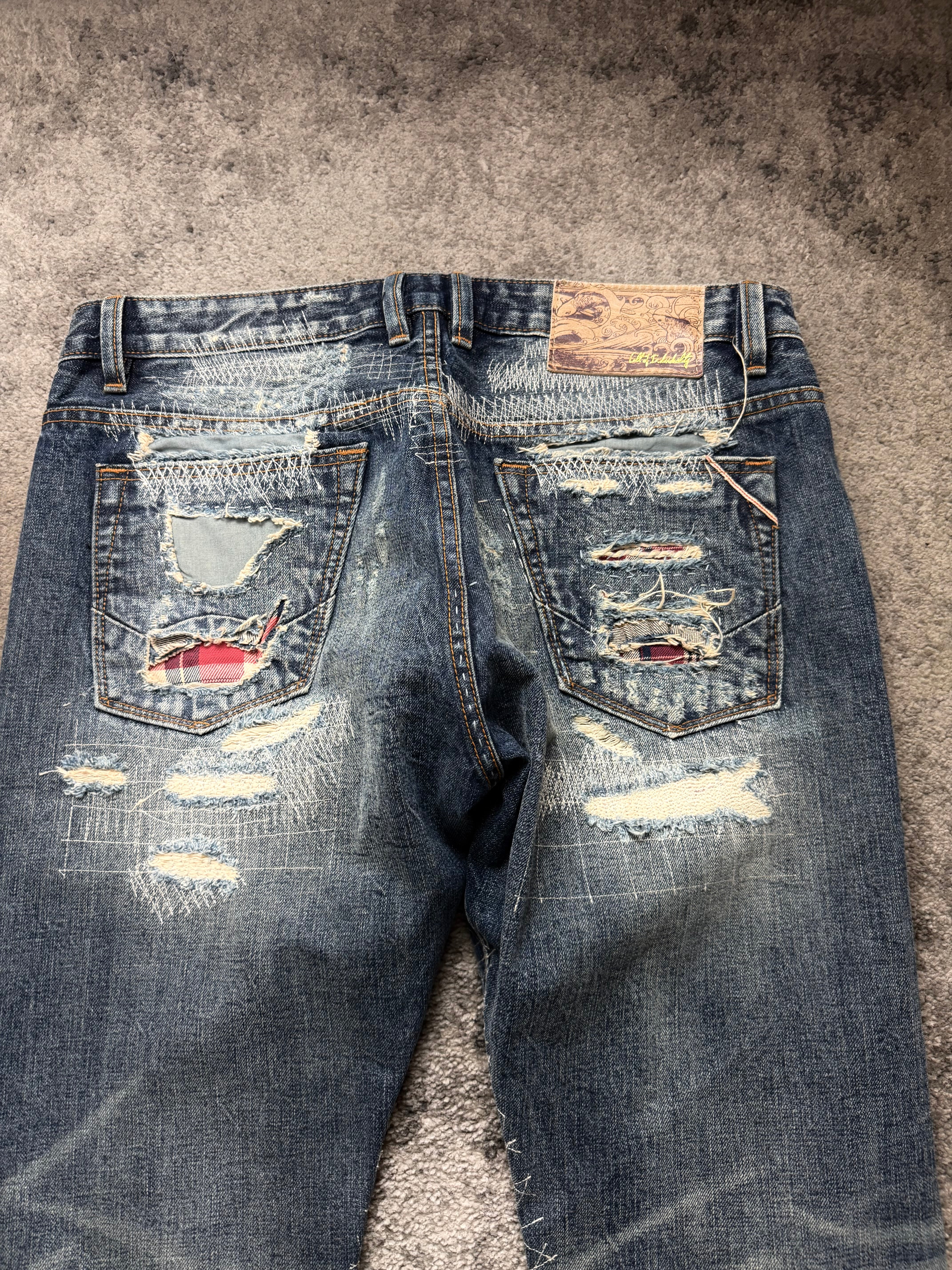 The exaggerated fade pattern and colored stitching give this piece movement and personality. It’s not just denim — it’s statement denim. Confident, expressive, and rooted in Japanese archive culture without trying too hard.