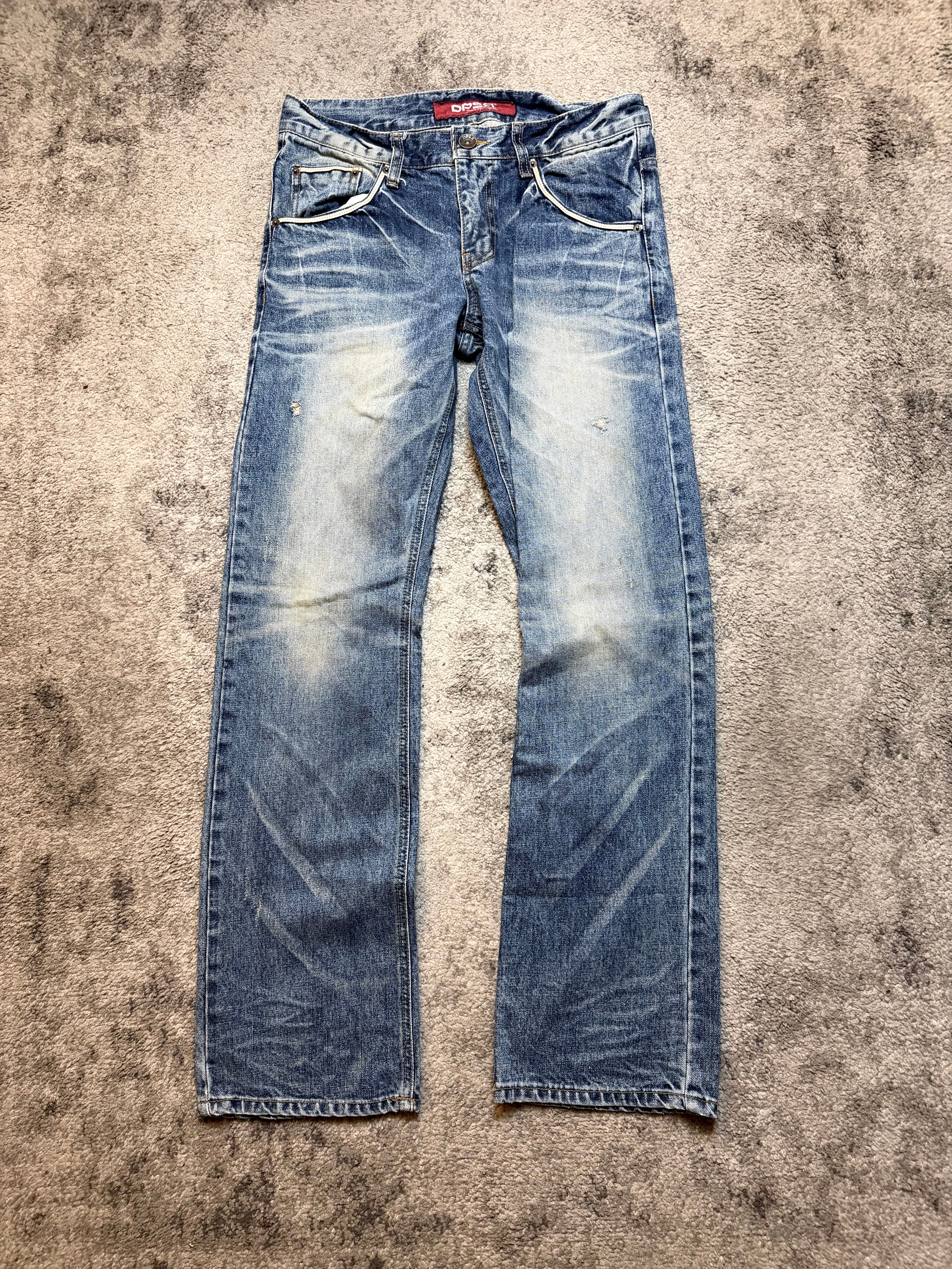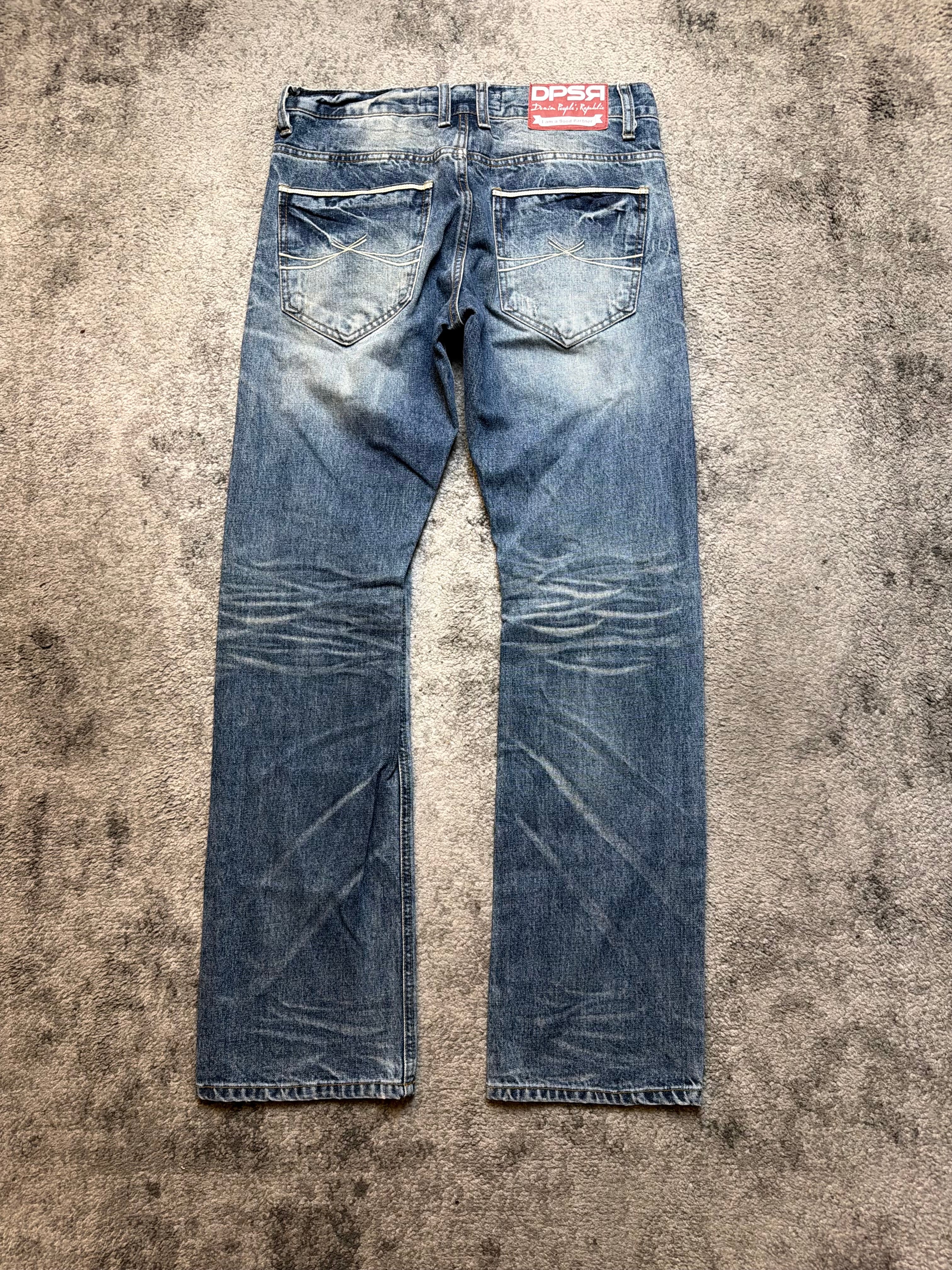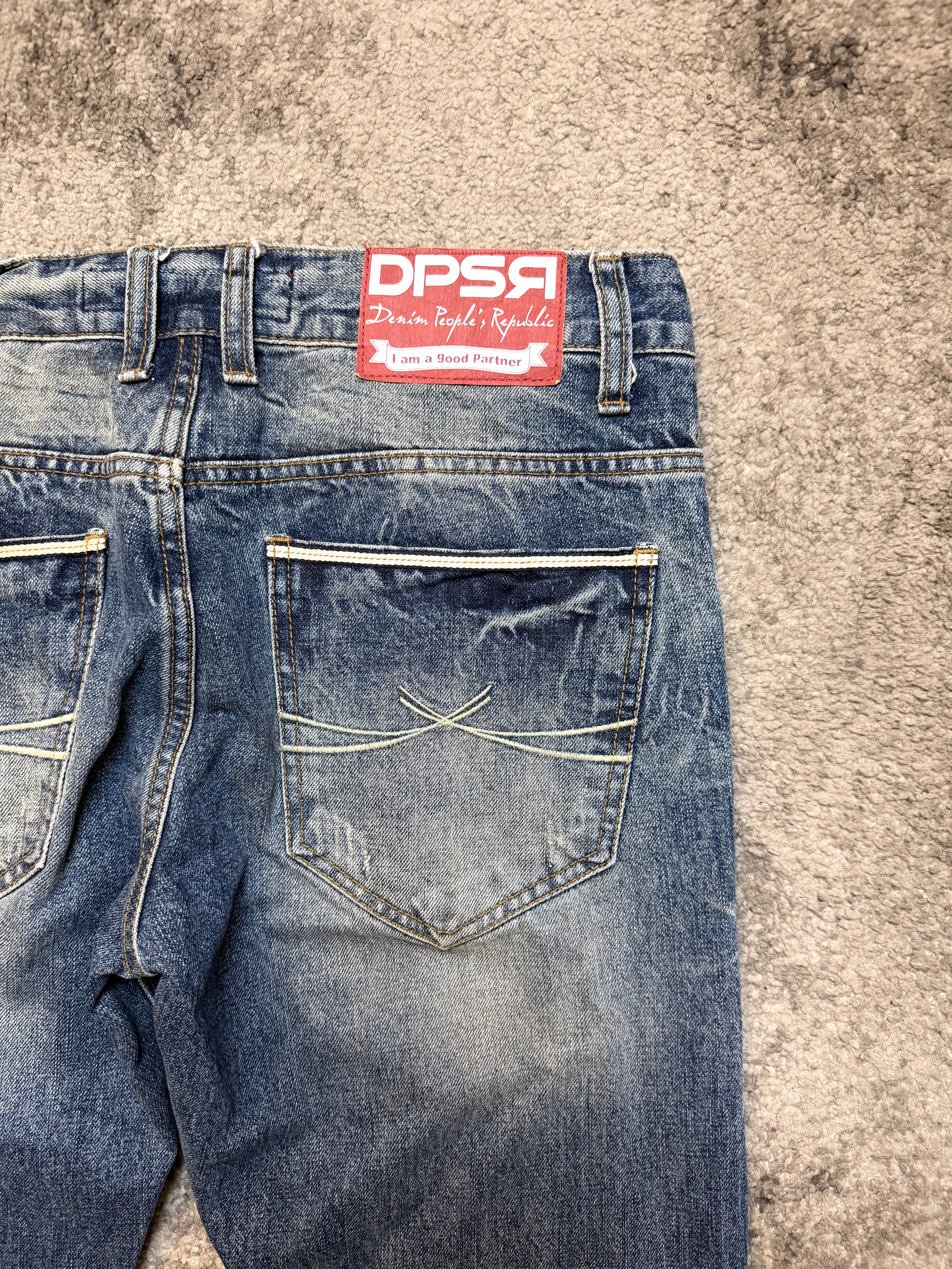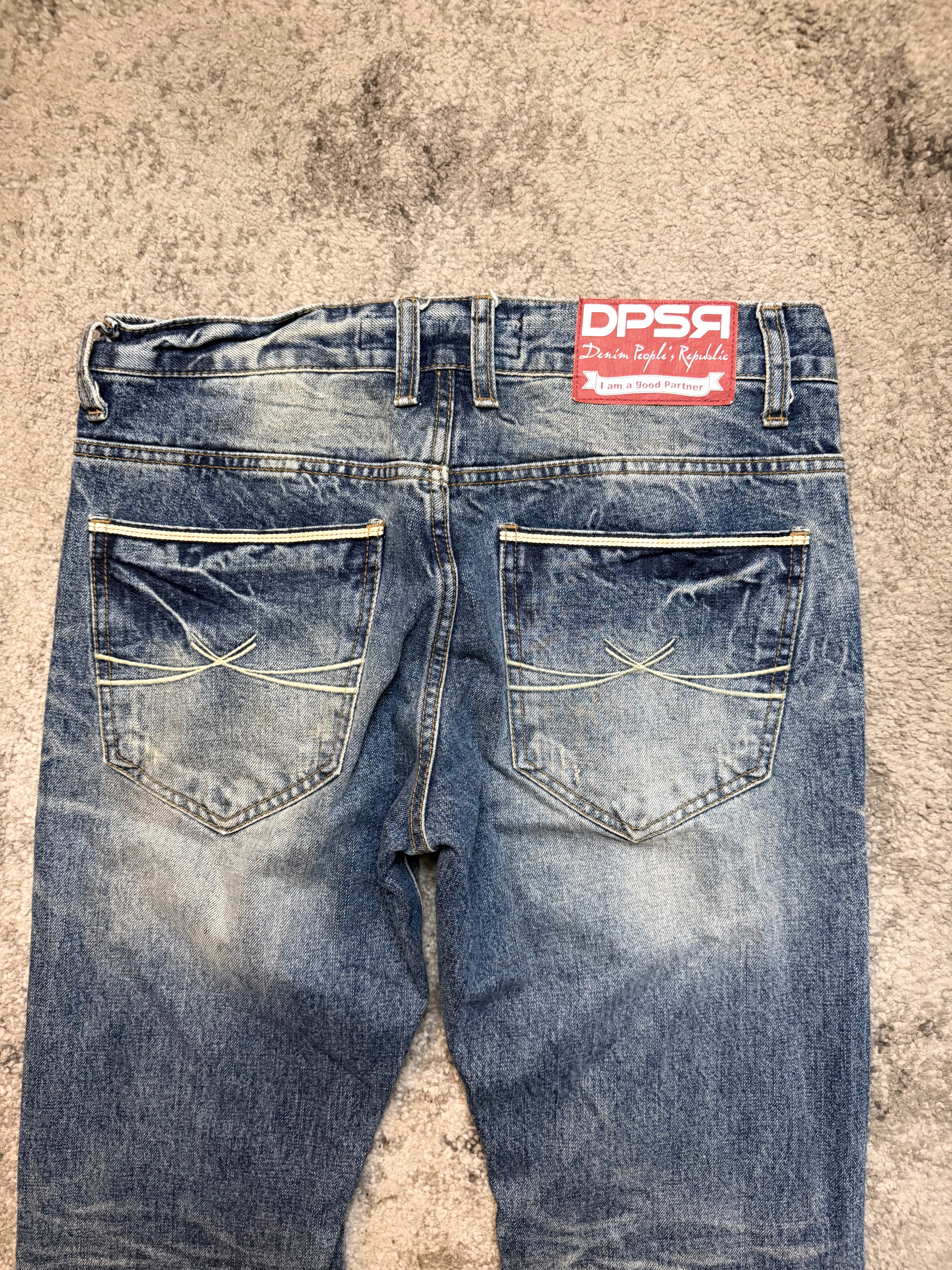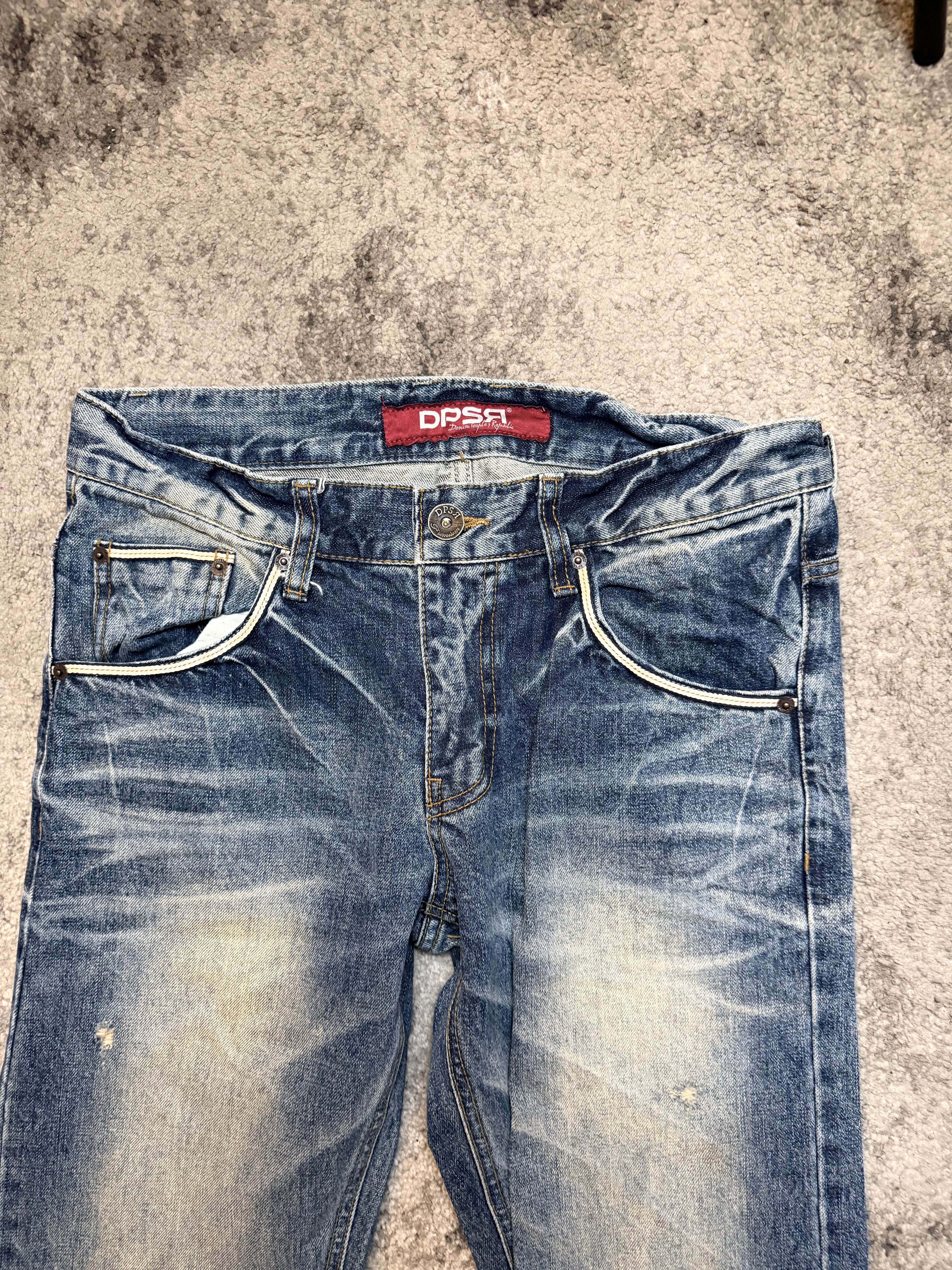 A beautifully worn-in pair from DPSR, size M, carrying that unmistakable Japanese archive soul — the quiet cool seen in early Shibuya street snaps and Number (N)ine–era denim silhouettes.