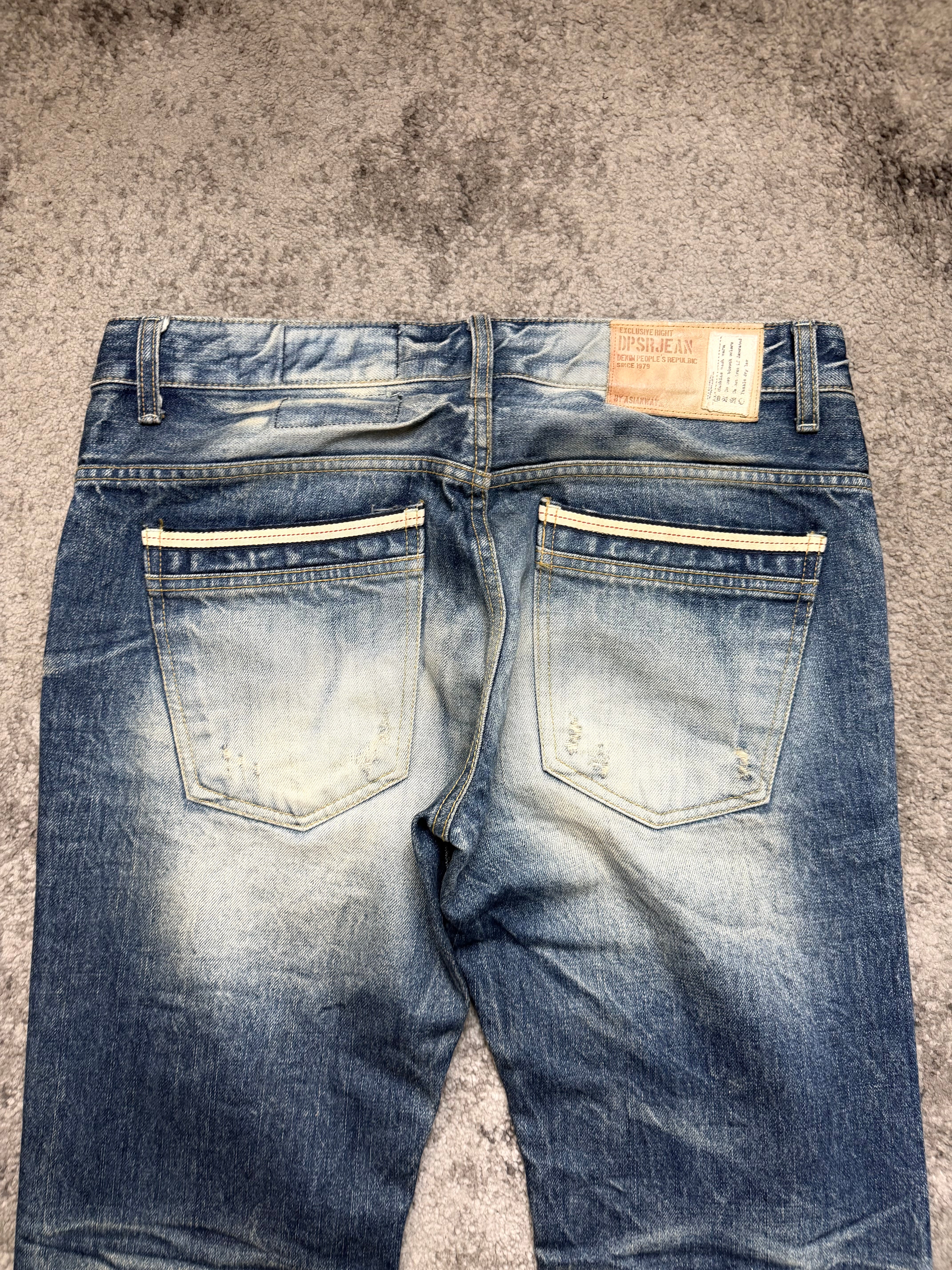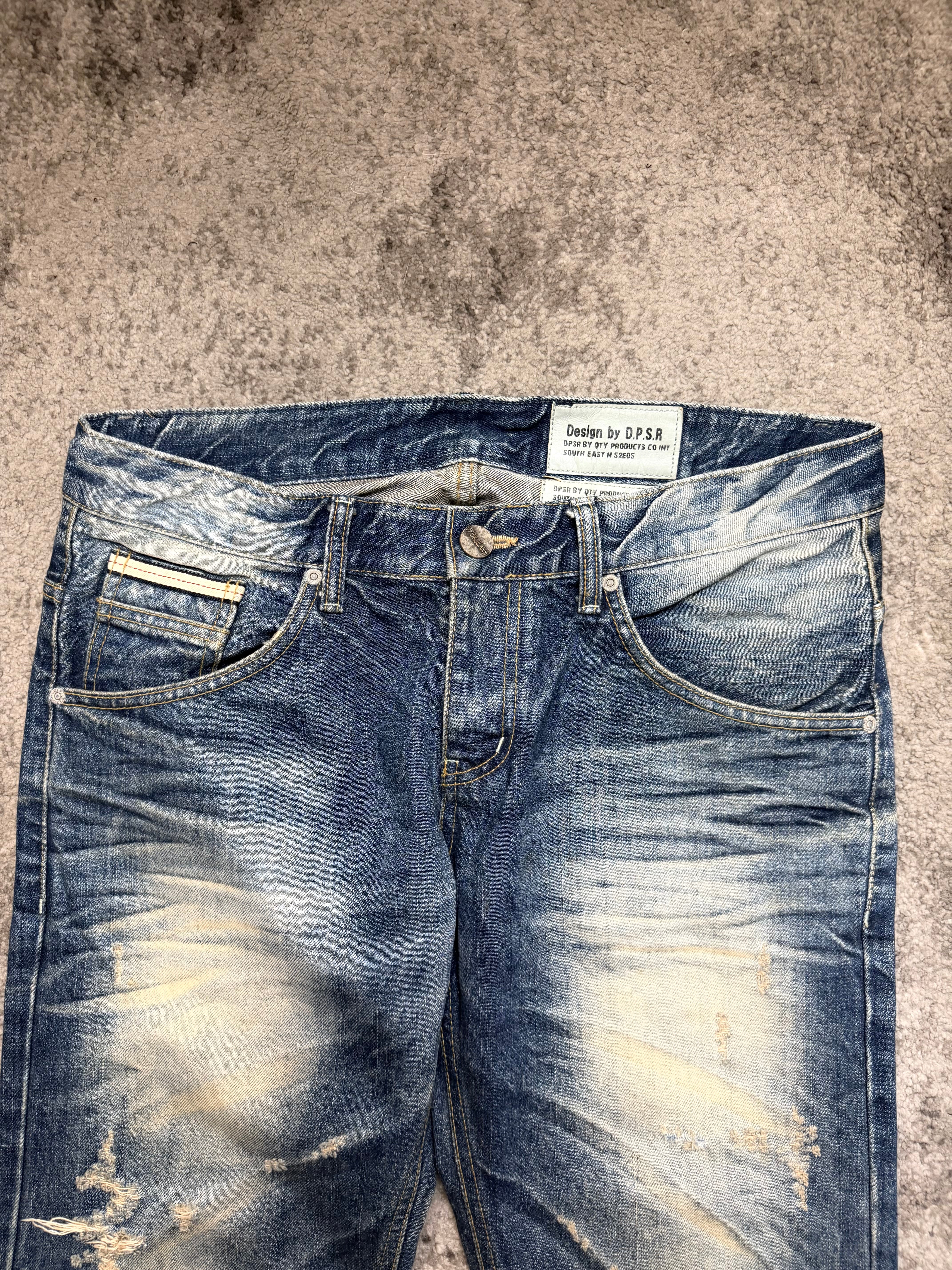 DPSR “Sunburn Static” Japanese Archive Denim – light scars, deep indigo.