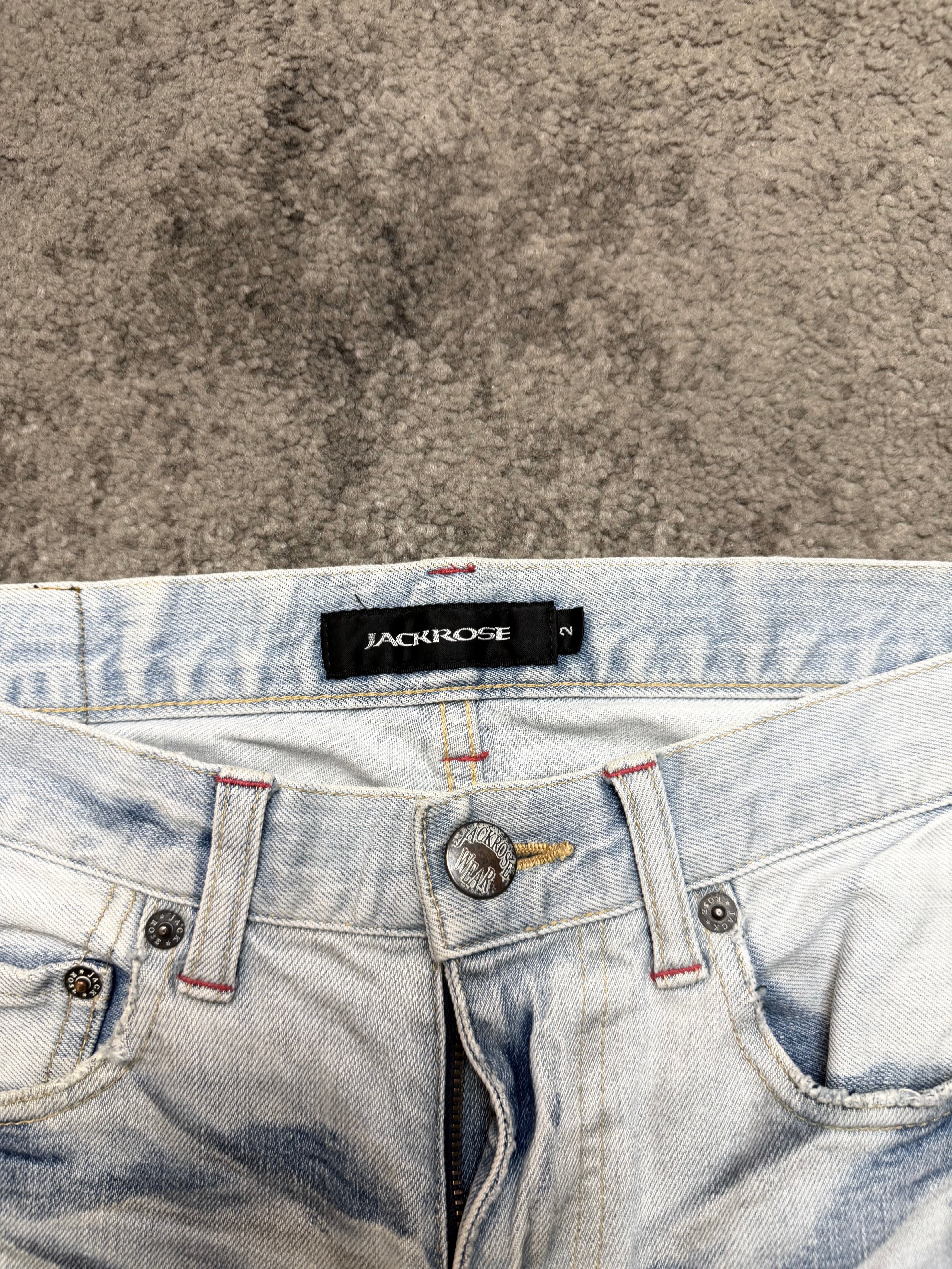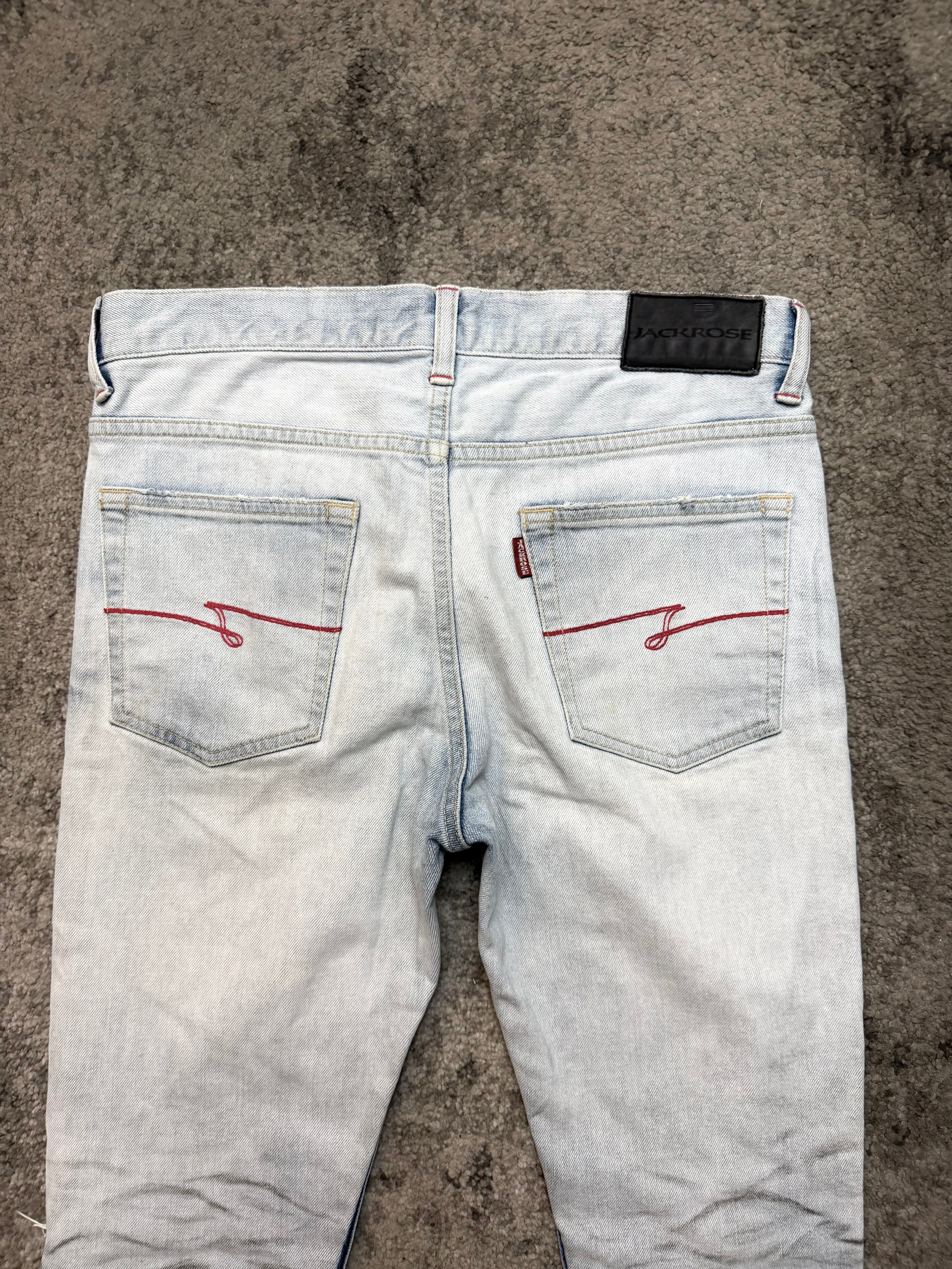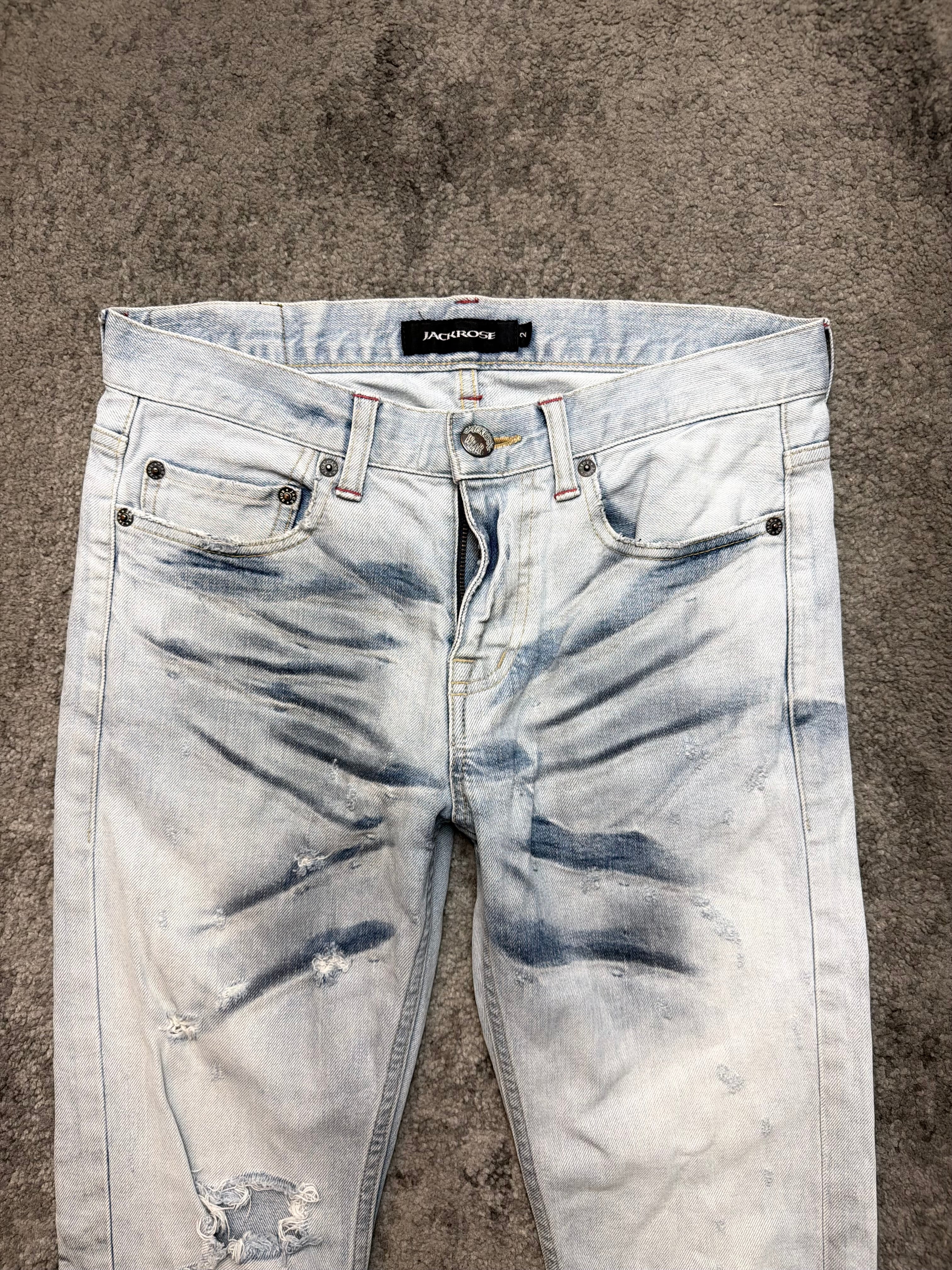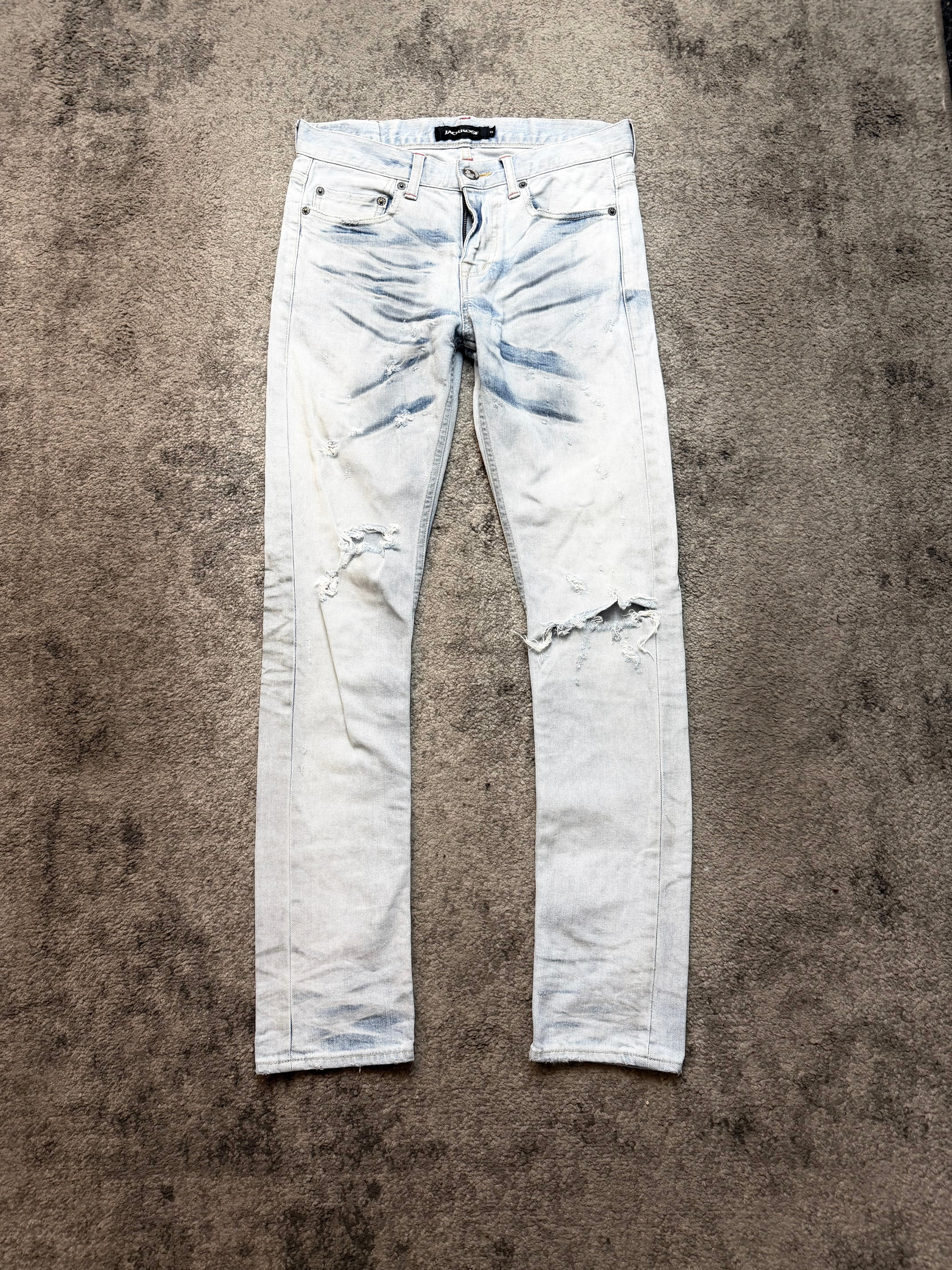 A rare piece from JACKROSE, carrying that unmistakable Japanese archive aura—light-washed, ghost-like, and beautifully destroyed in all the right places.