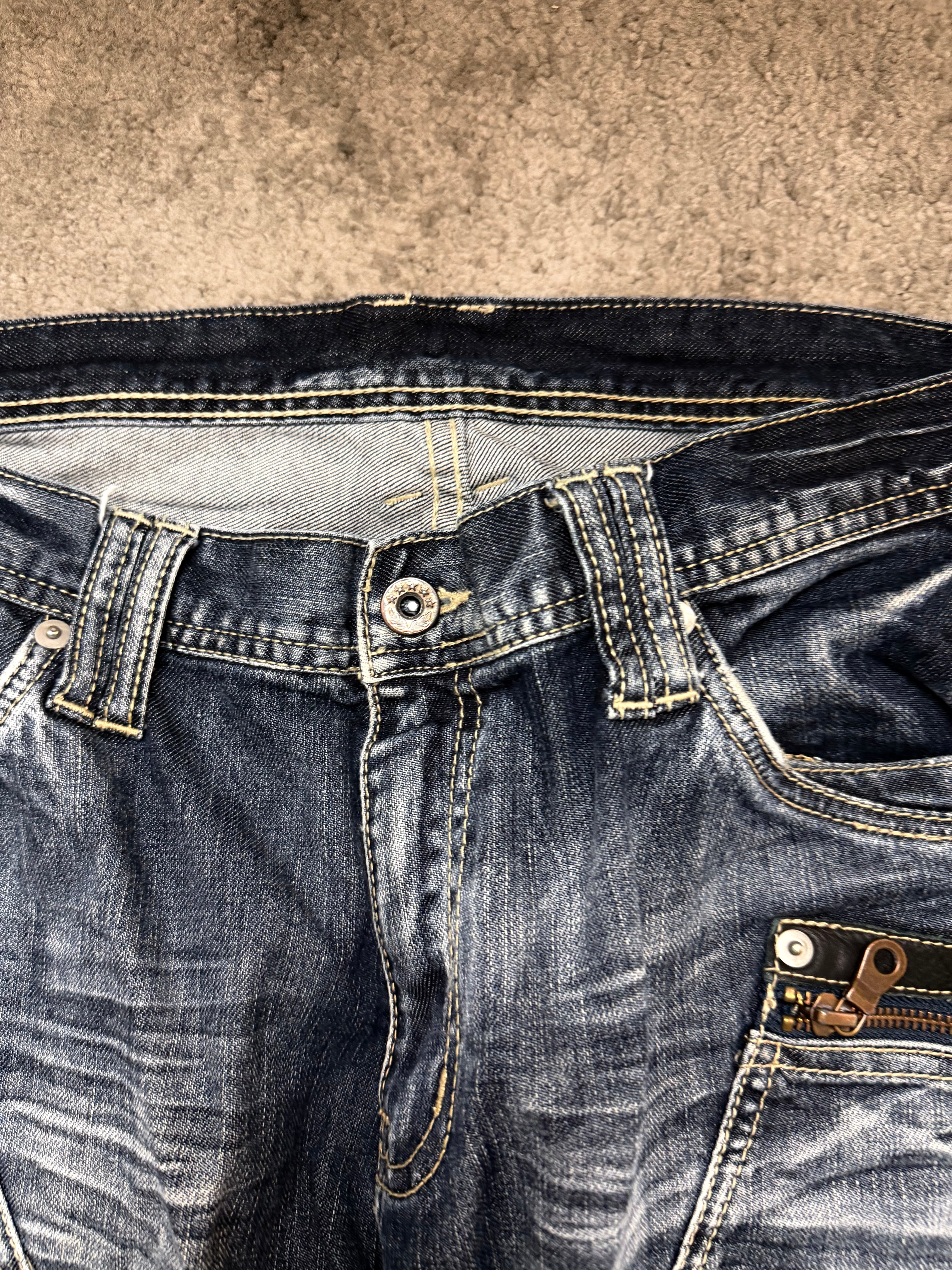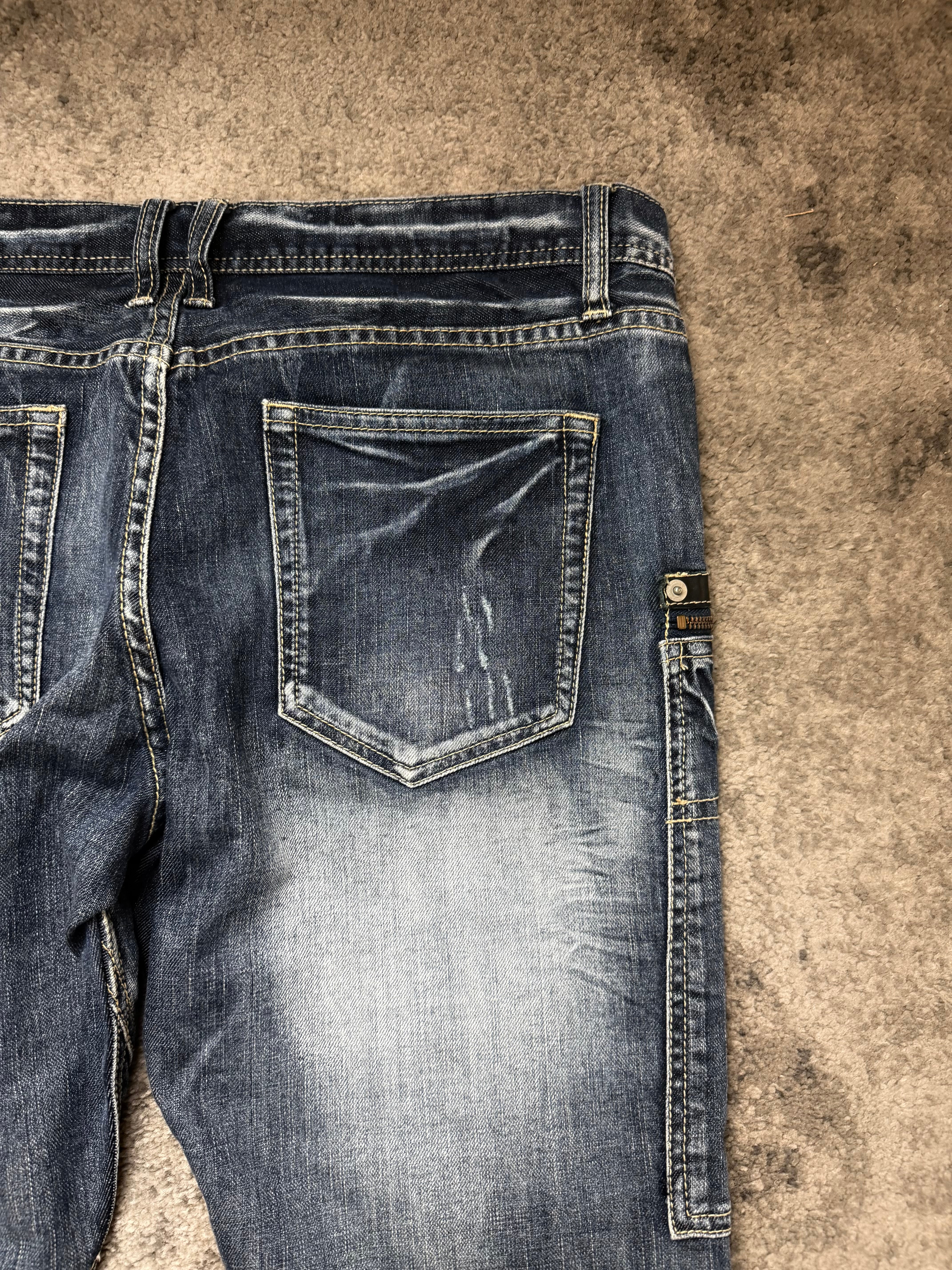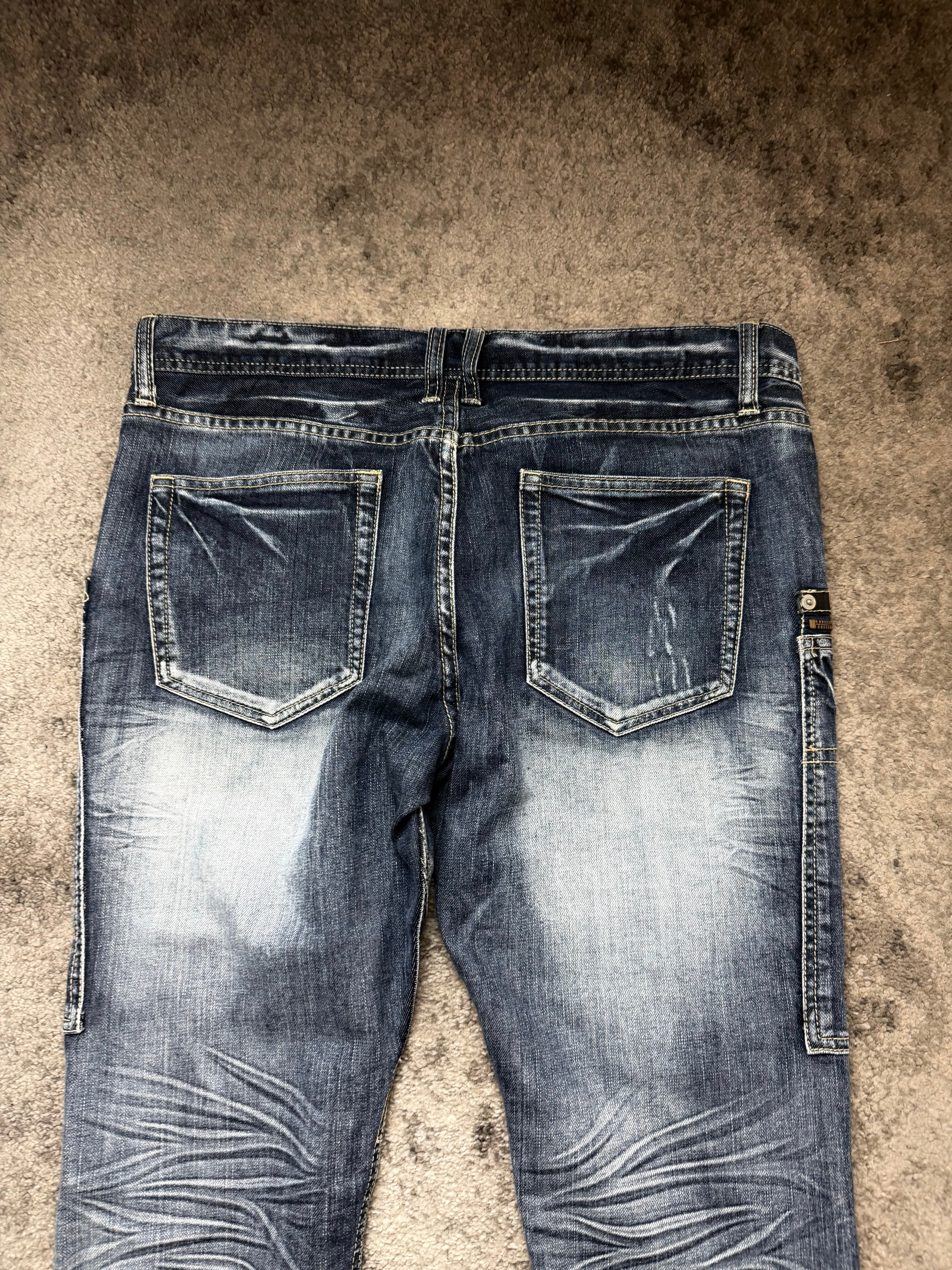 A striking archive-era piece from MICHEL KLEIN, blending sharp construction with emotional wear. Sculpted paneling, aggressive whiskering, and icy fades give these jeans that unmistakable early-2000s Japanese edge—technical, expressive, and quietly intense.