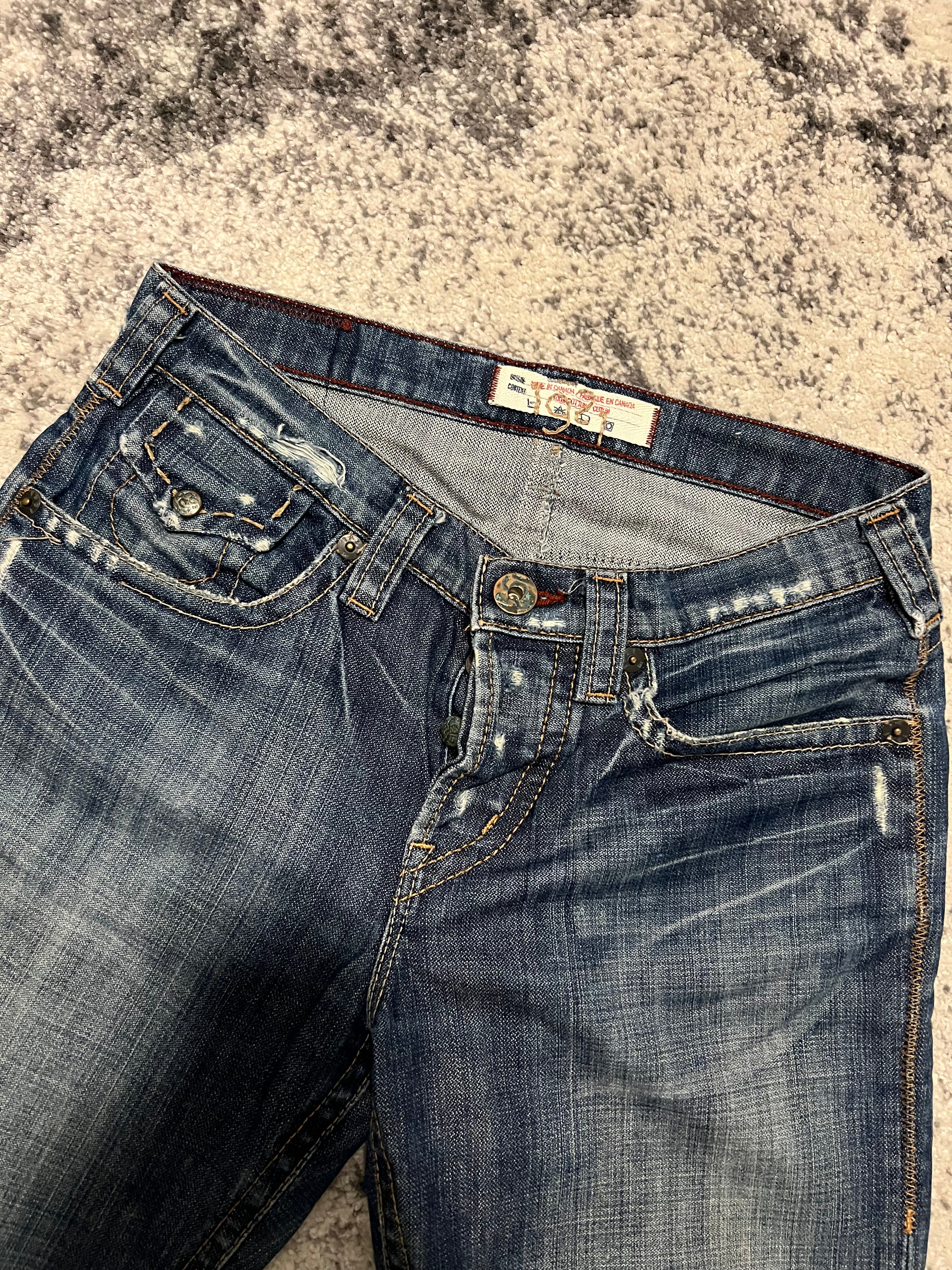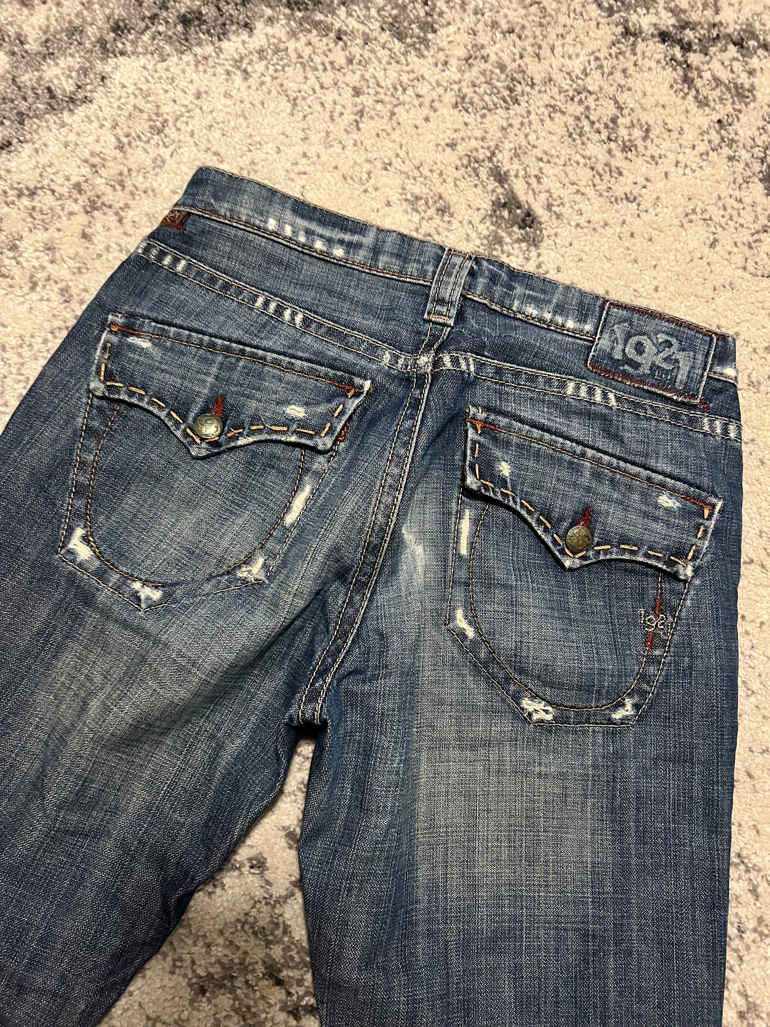 1921 Japanese Flared Denim Size : S/M Condition : 9/10 Measurements : Length 102cm, Waist 39cm, Leg Opening 22cm Read more