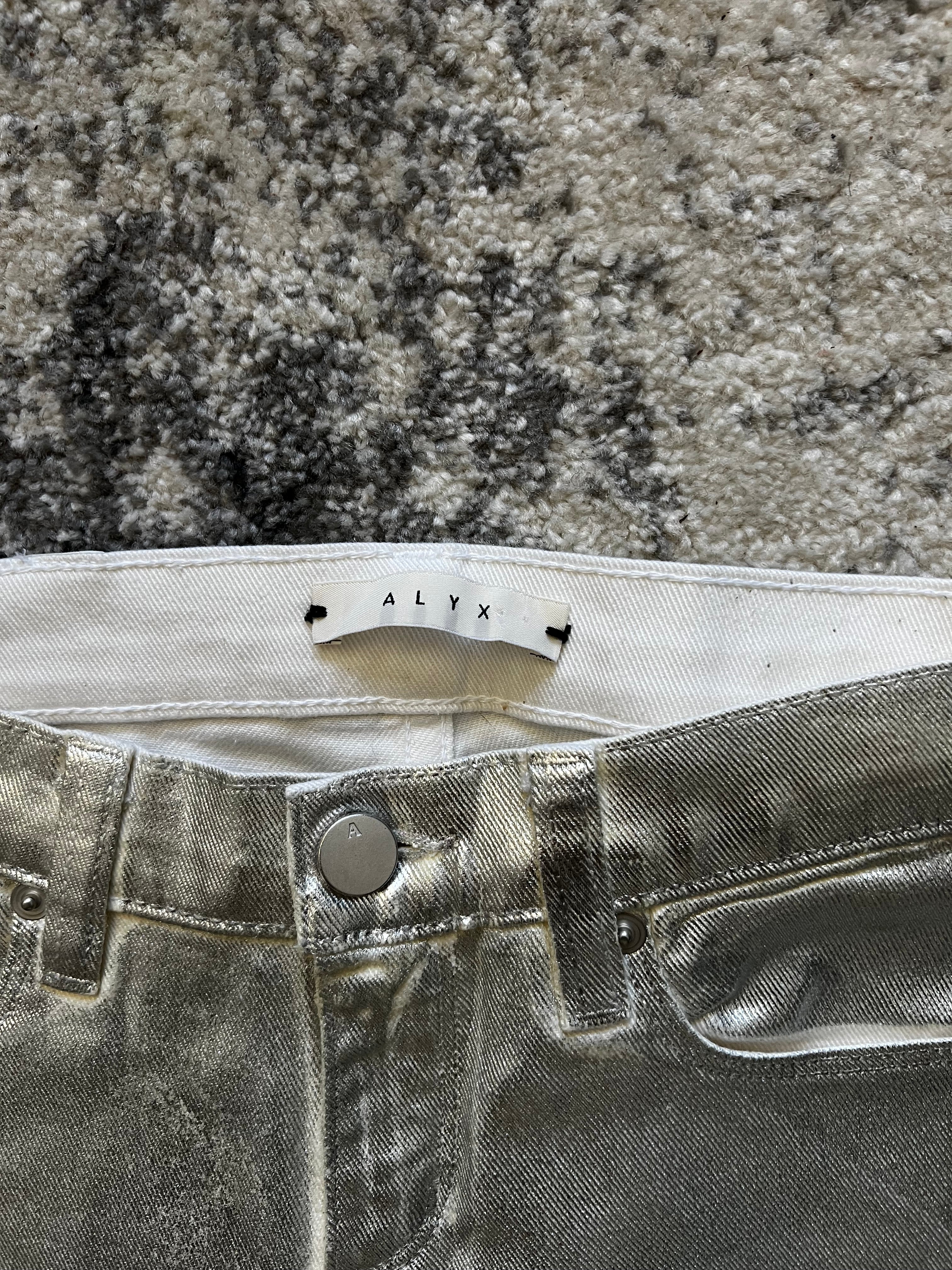 ALYX SILVER WHITE SKINNY DENIM Size : XS Condition : 9/10 Measurements : Length 104cm, Waist 35cm, Leg Opening 14cm... Read more