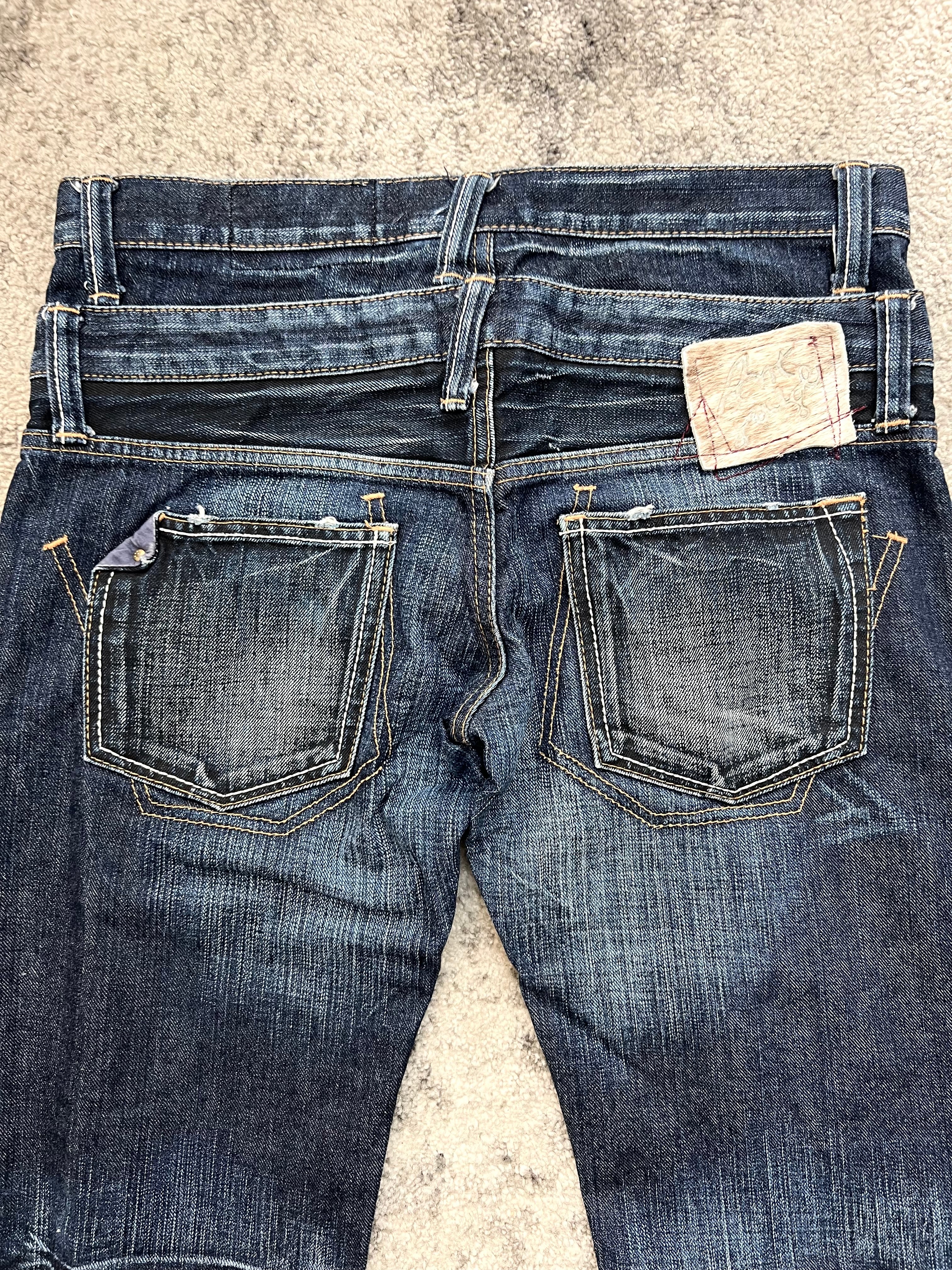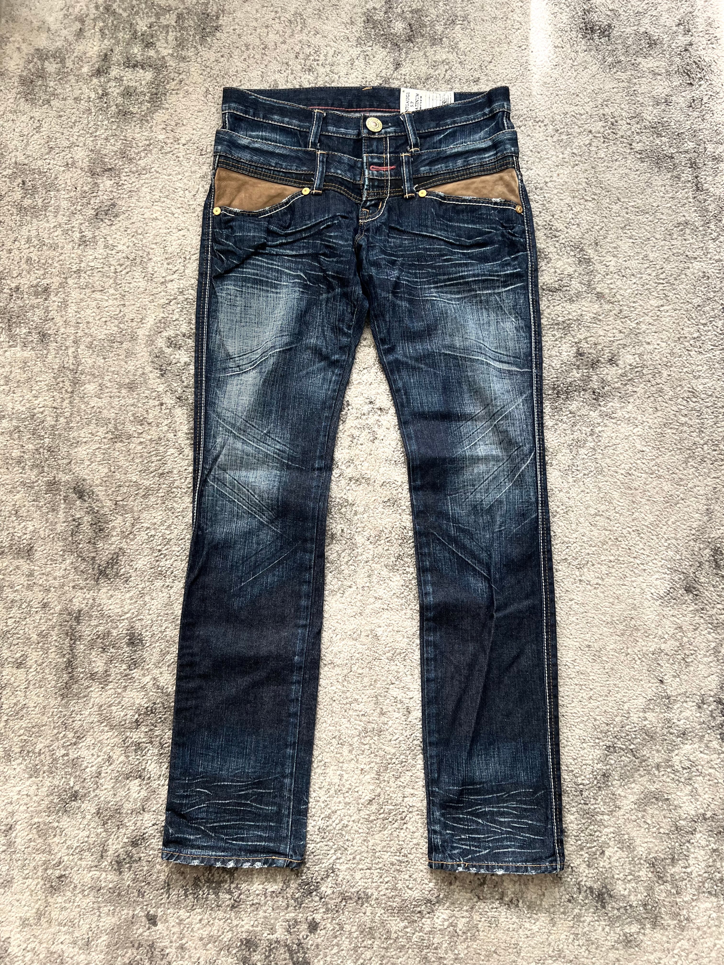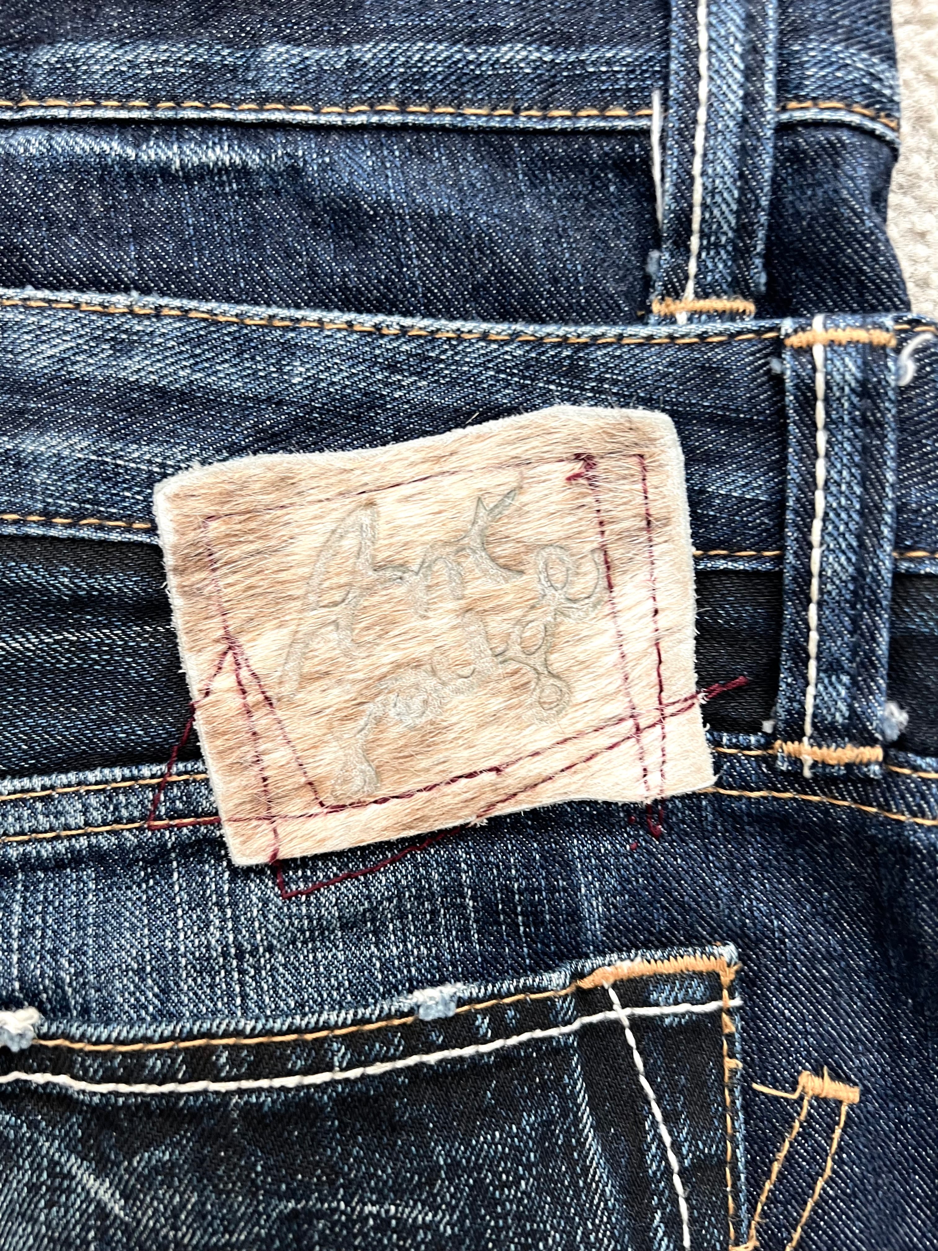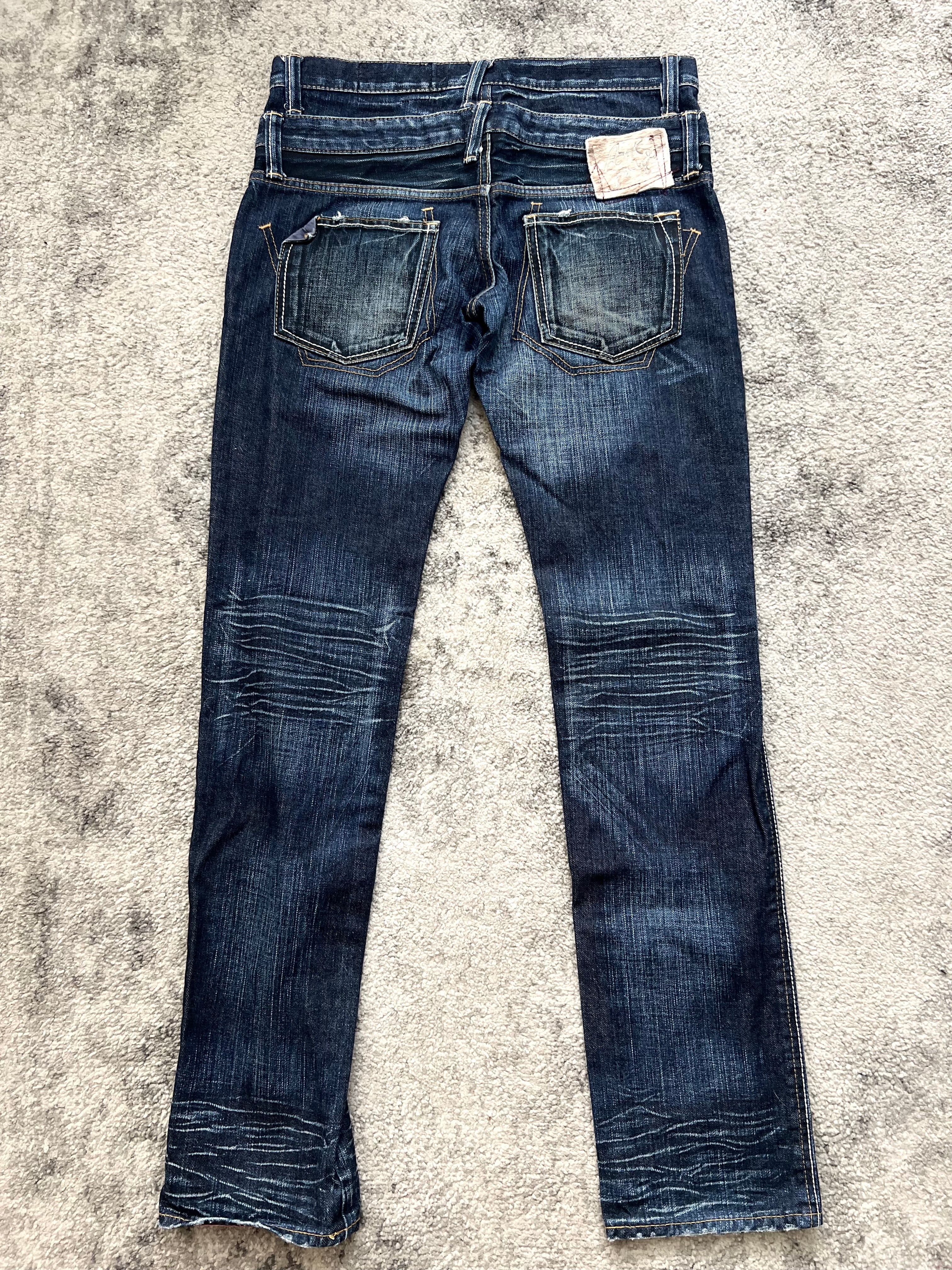 Brutalist denim storytelling. These Avantgauge jeans aren’t worn – they’re embedded. Japanese precision meets primal energy, cut into mid-rise armor. Industrial nostalgia woven into every crease.