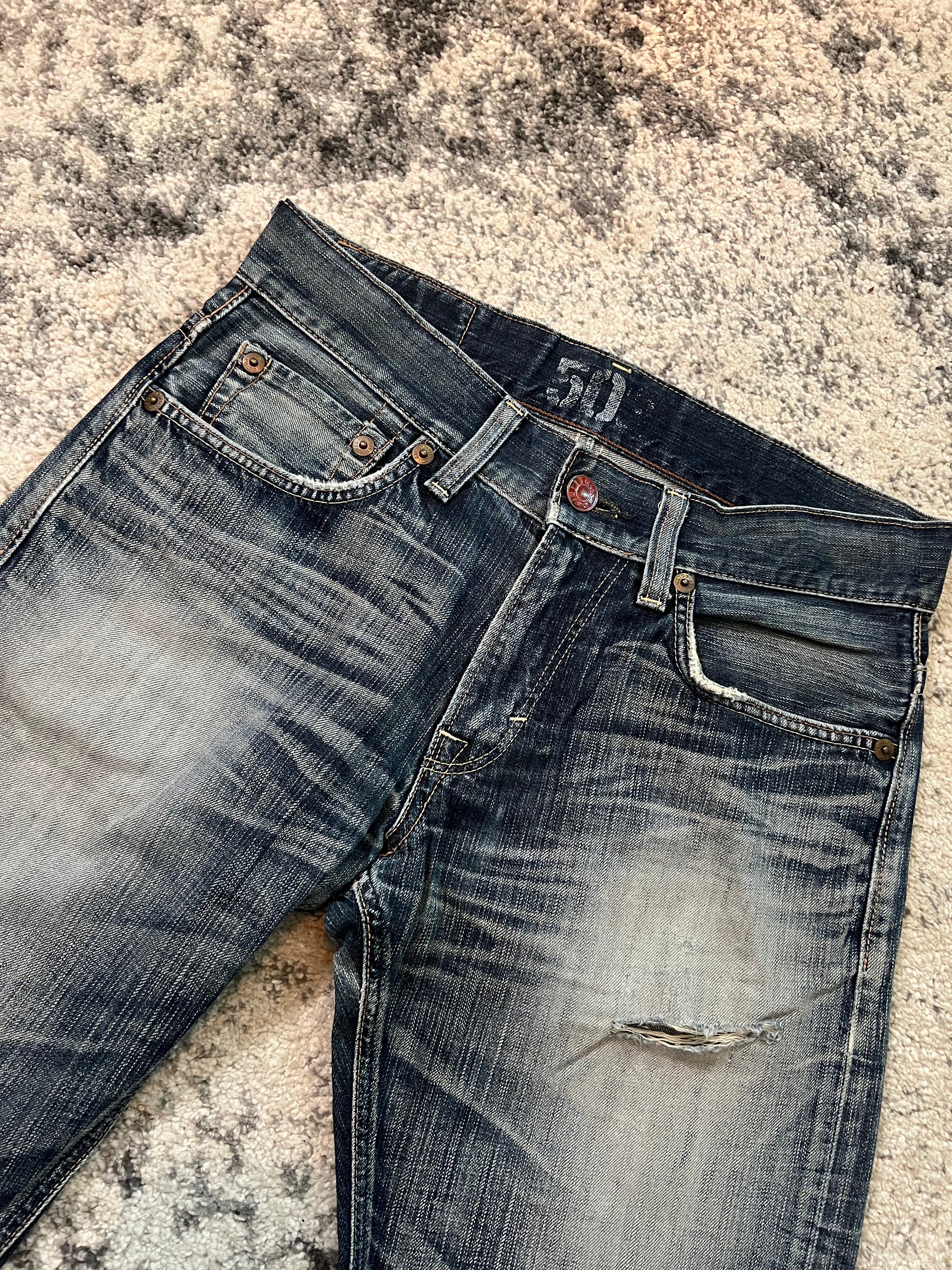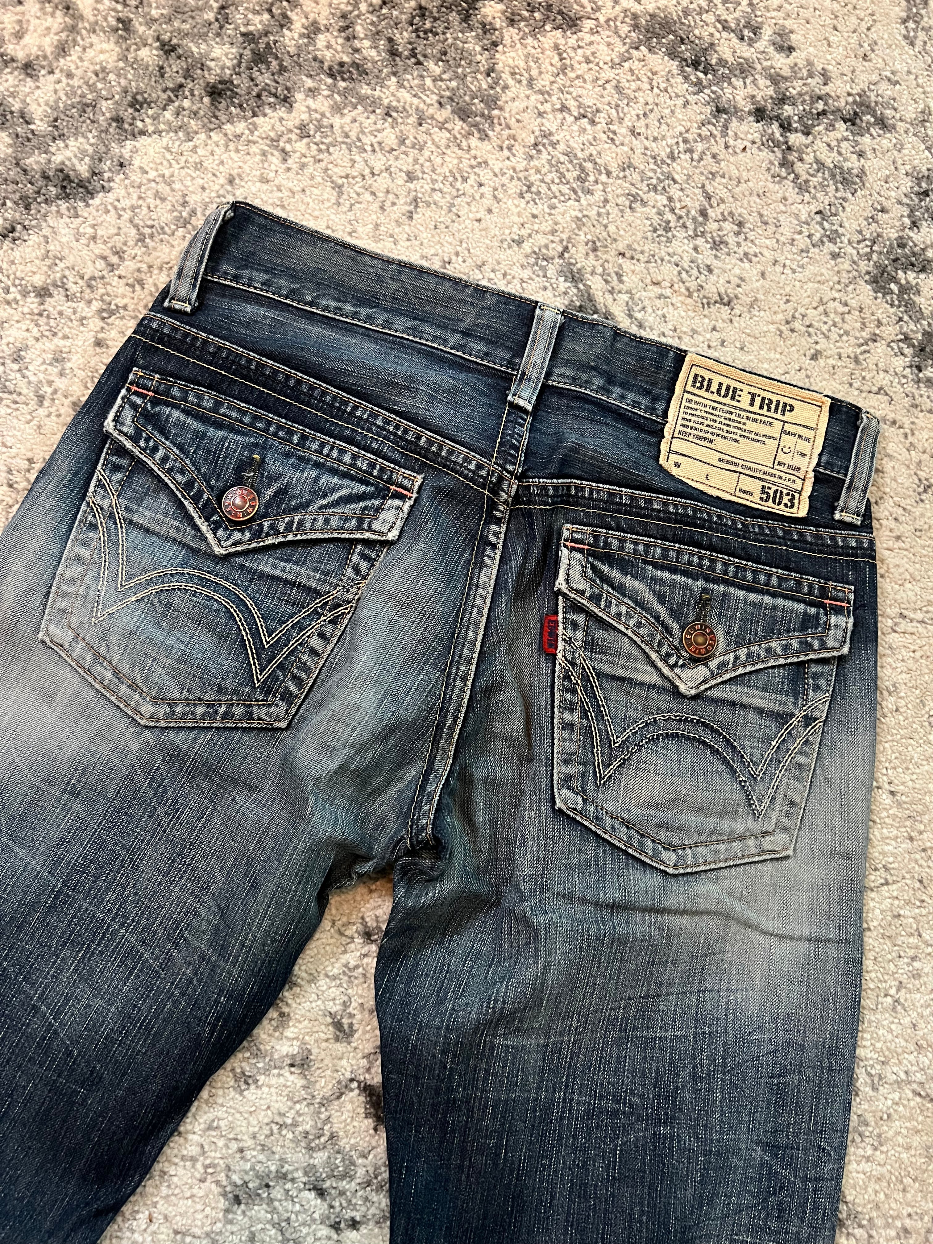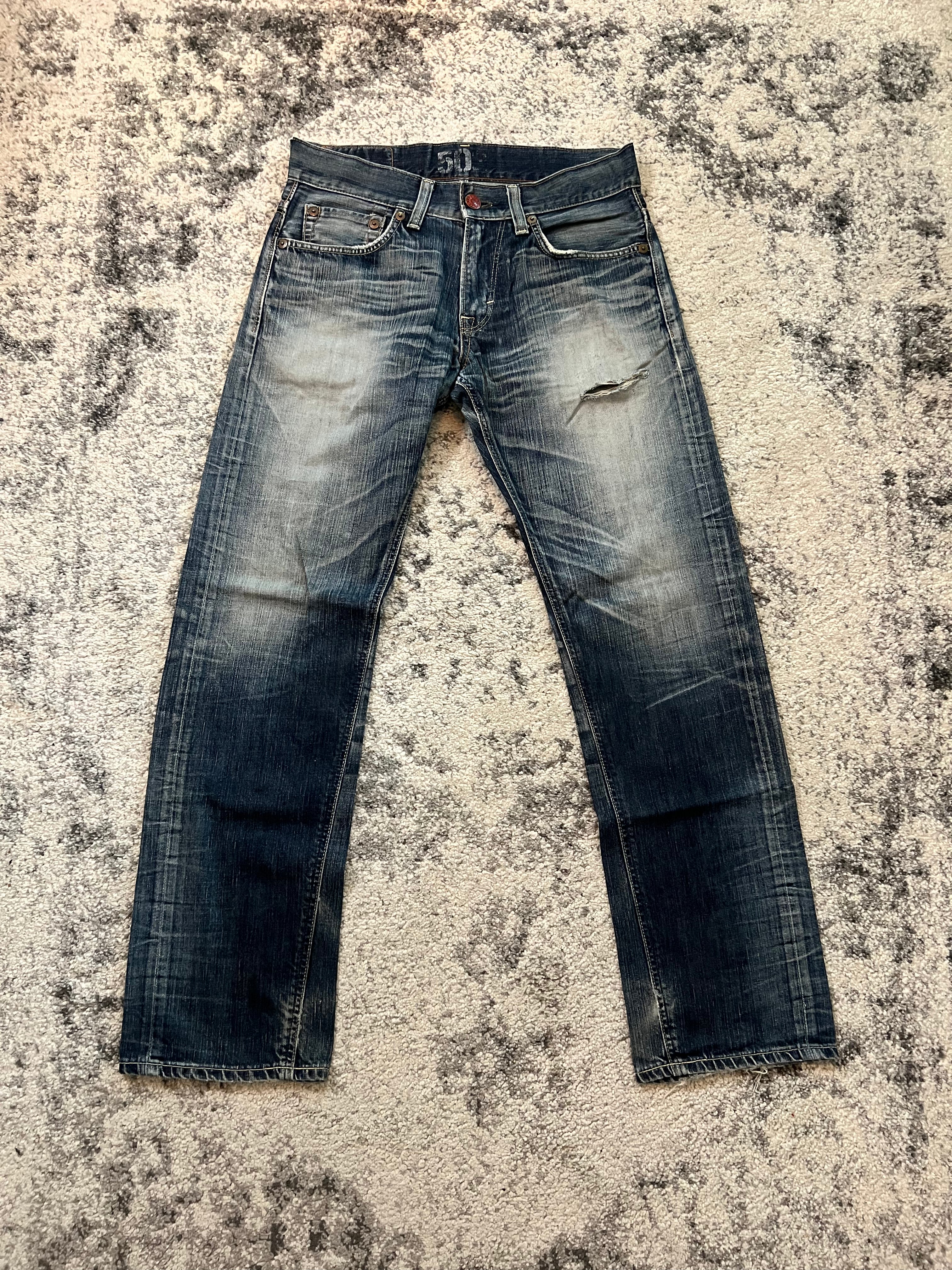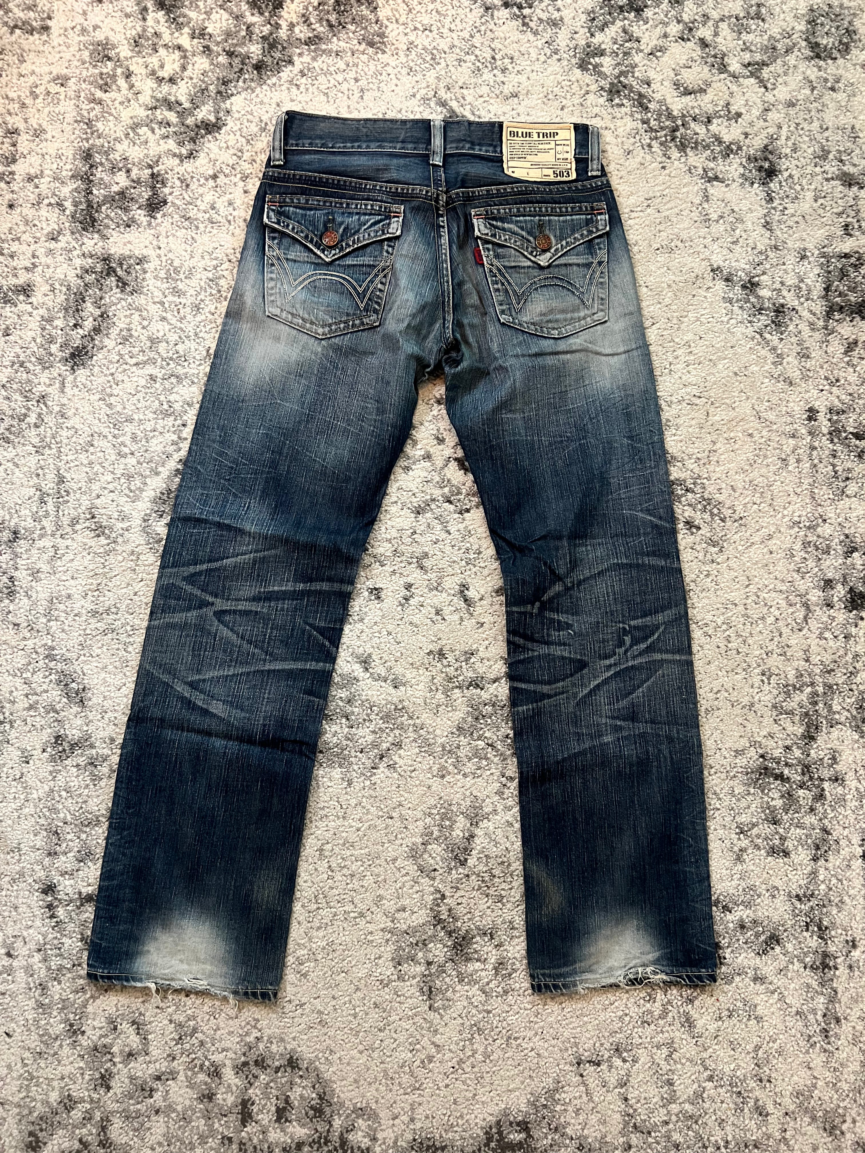Bluetrip 503 Japanese Denim Size : M Condition : 9/10 Measurements : Length 107cm, Waist 42cm, Leg Opening 22cm Read more