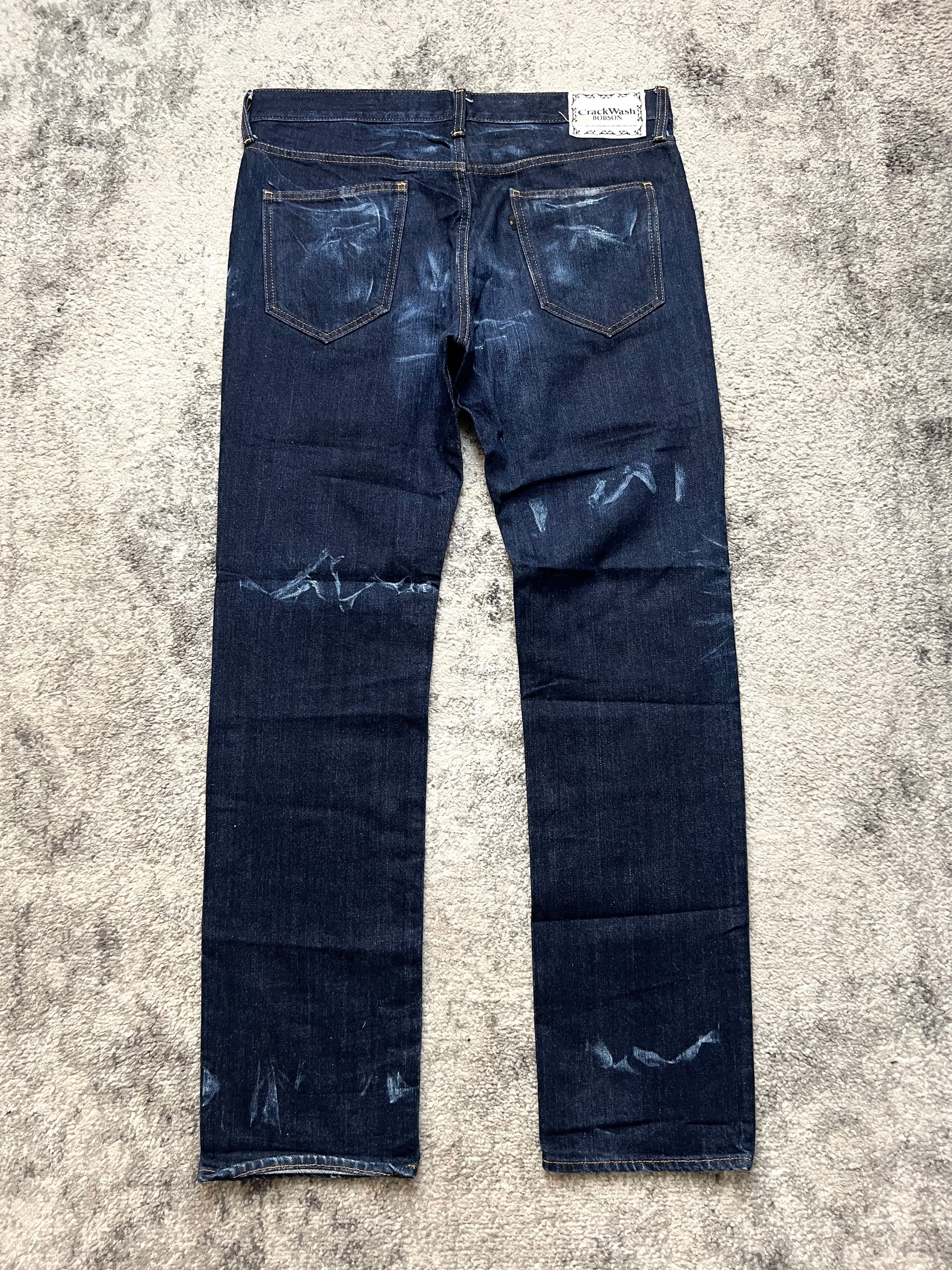 Dense Japanese denim with a rich, inky base. Minimal stretch. CrackWash patina unique to each pair.