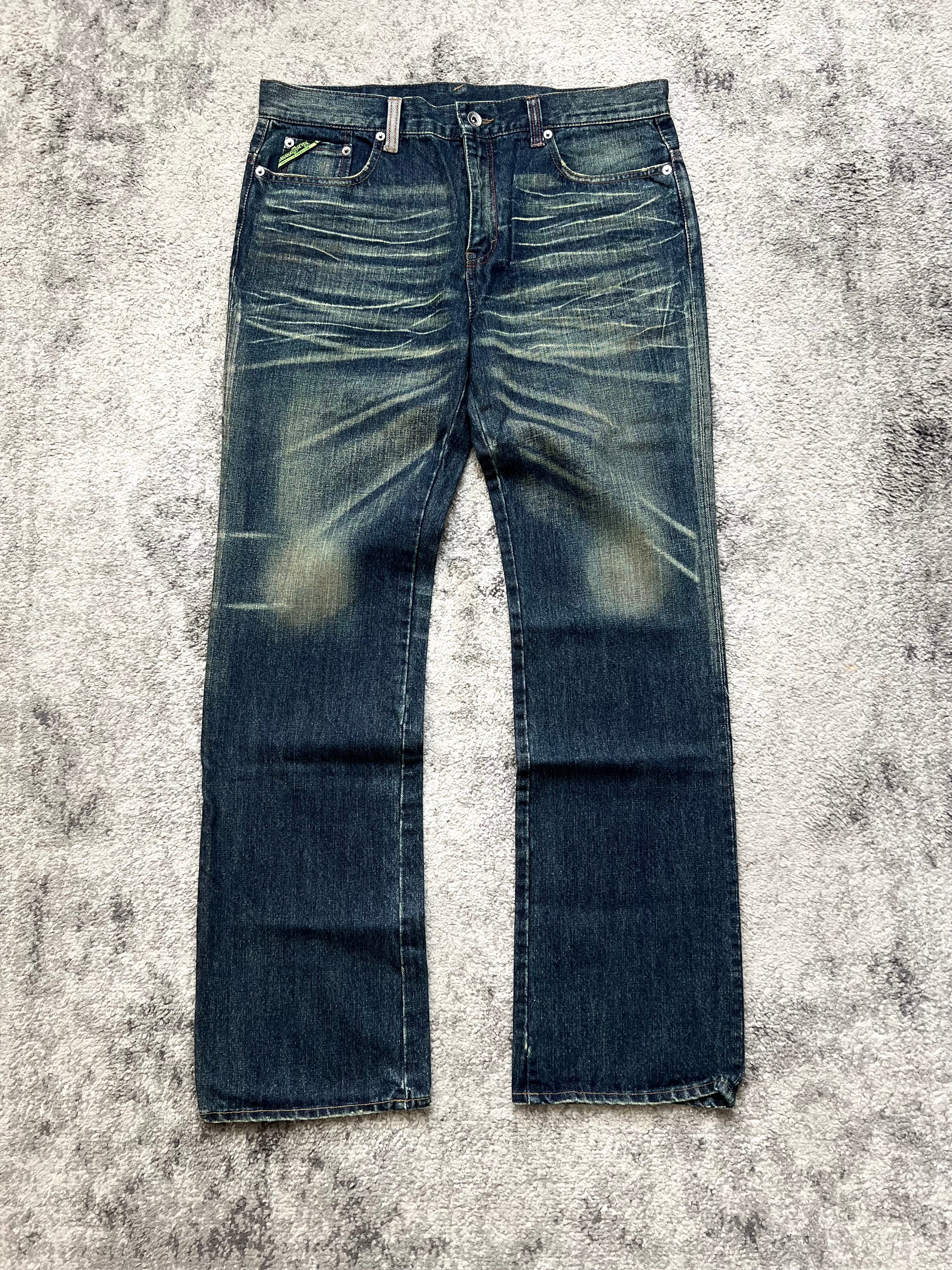 Condition: Pre-owned with soft fading, whiskers at the knees, and natural wear at the hems. A pair that carries its own rhythm.