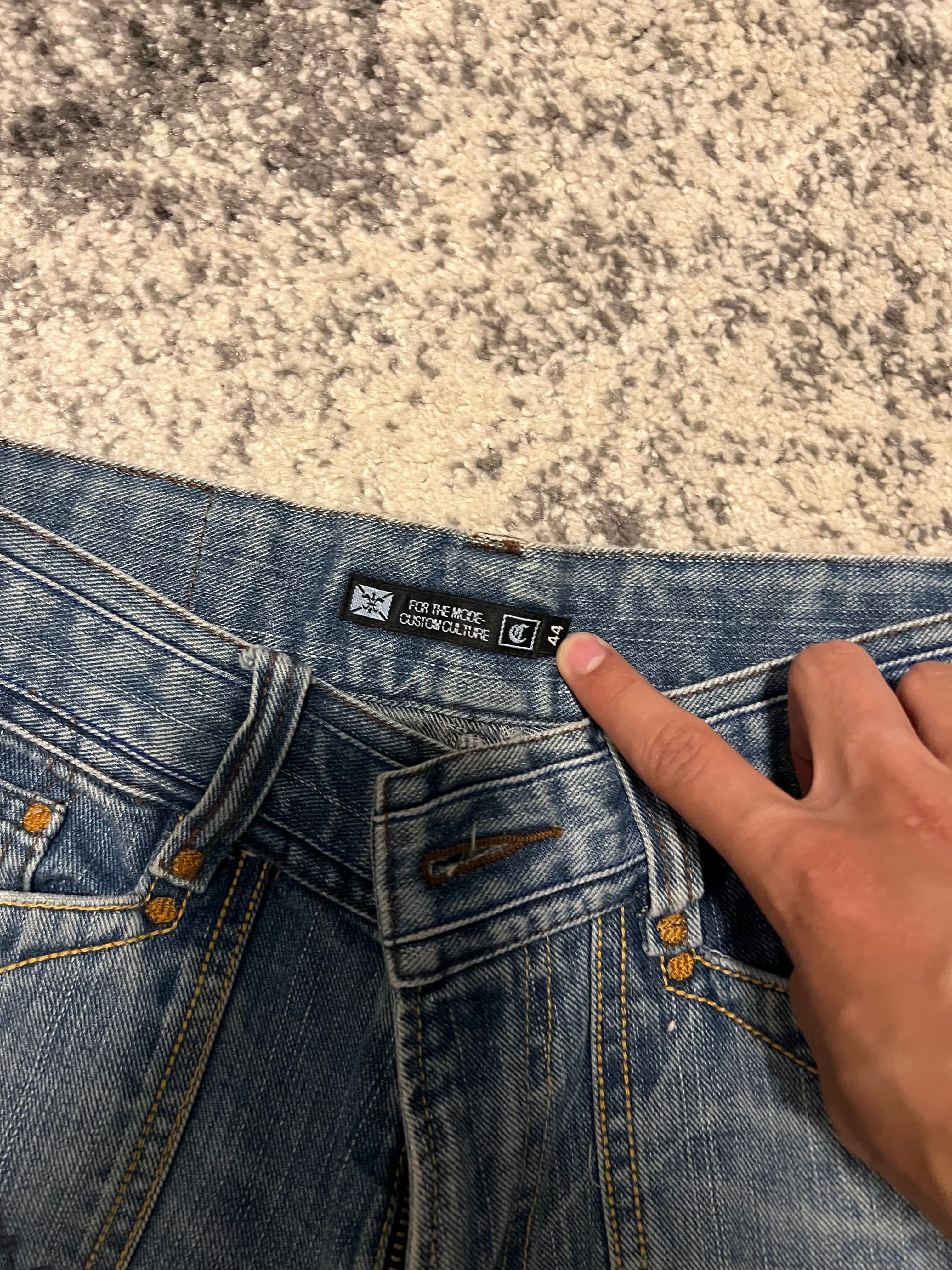 Custom Culture Japanese Flared Denim Size: S Condition: 9/10 Measurements: Length 96cm, Waist 38cm, Leg Opening 23cm Read more