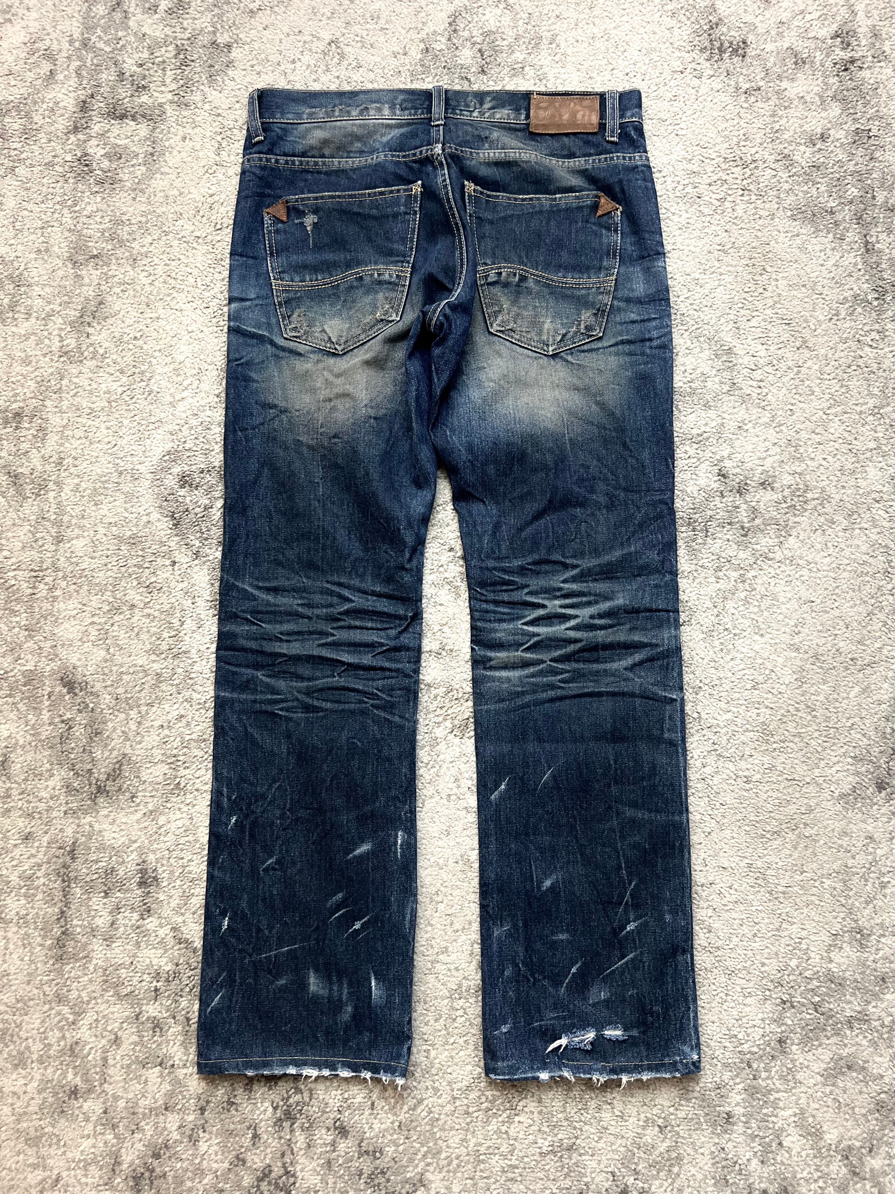 Material: Heavyweight Japanese selvedge denim, washed down to a rich indigo with natural contrast fades. Built tough, softened by time.