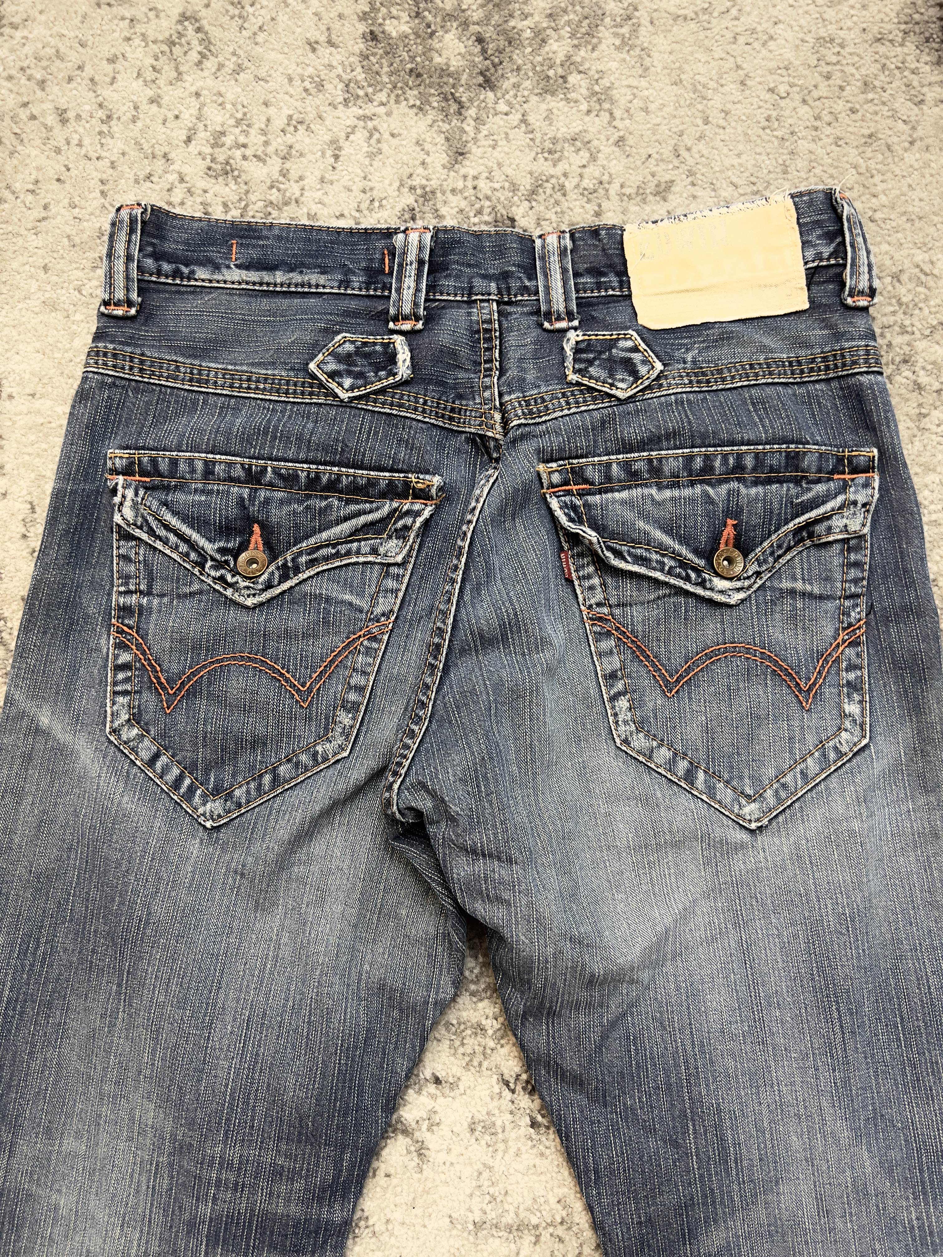 Naturally faded, with deep-set whiskering and creases that speak of countless journeys. Light signs of wear, no structural flaws – just the perfect dose of character.