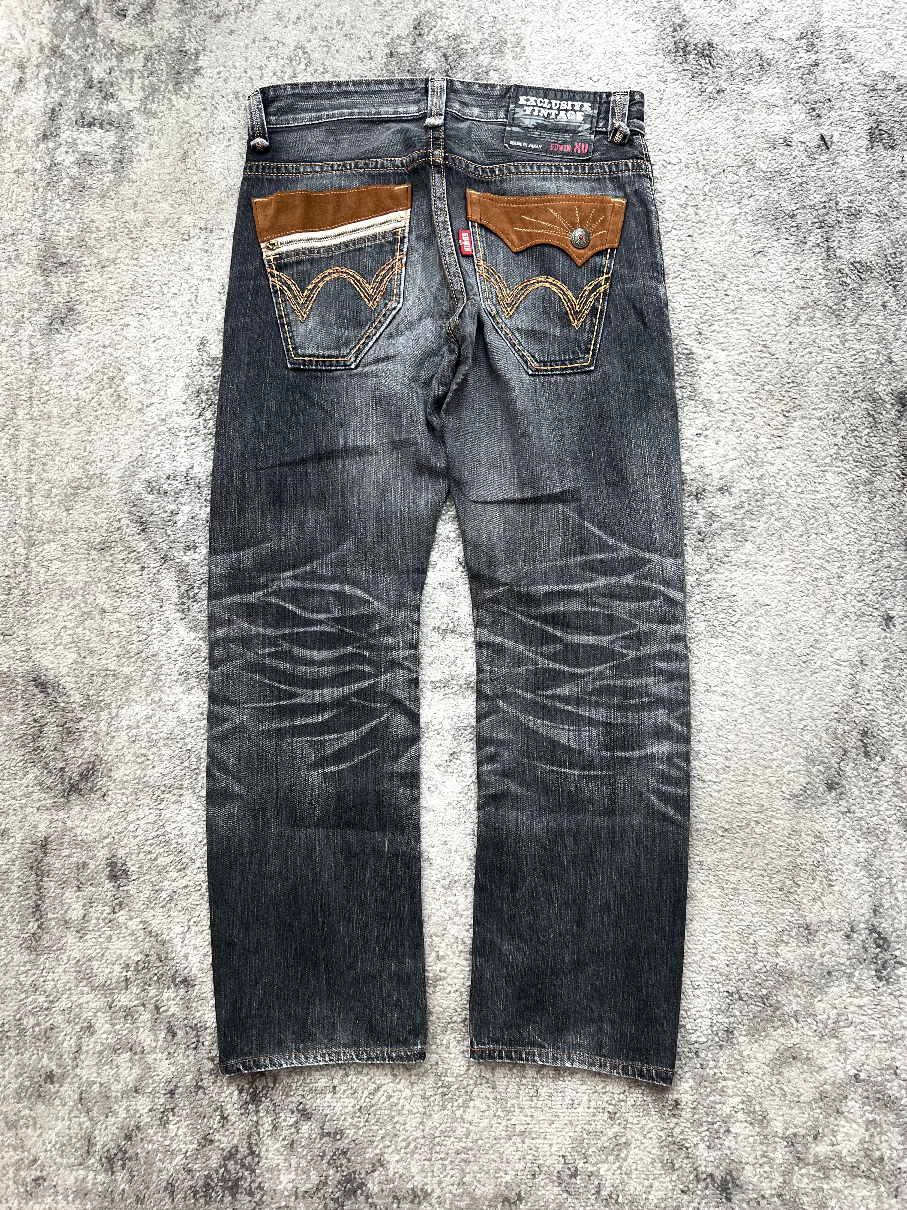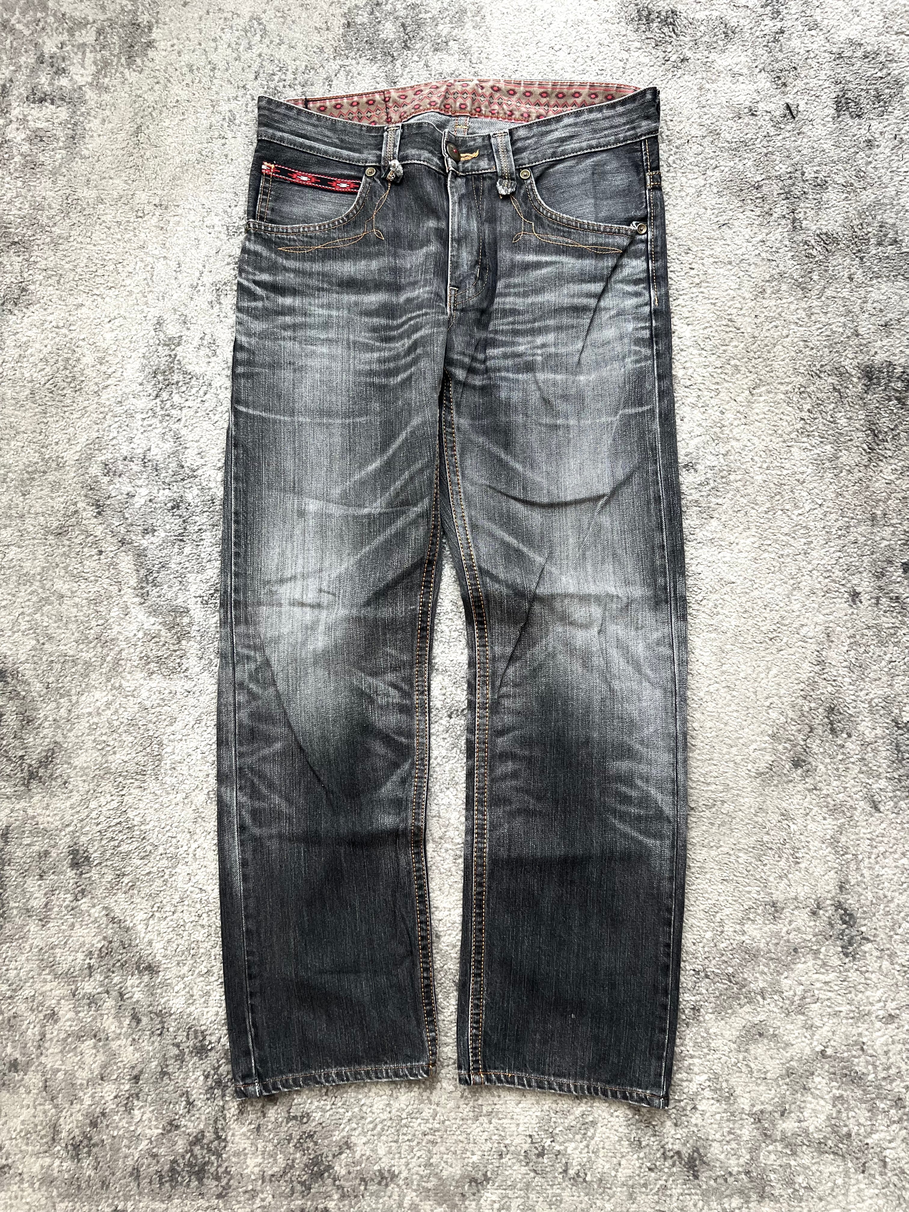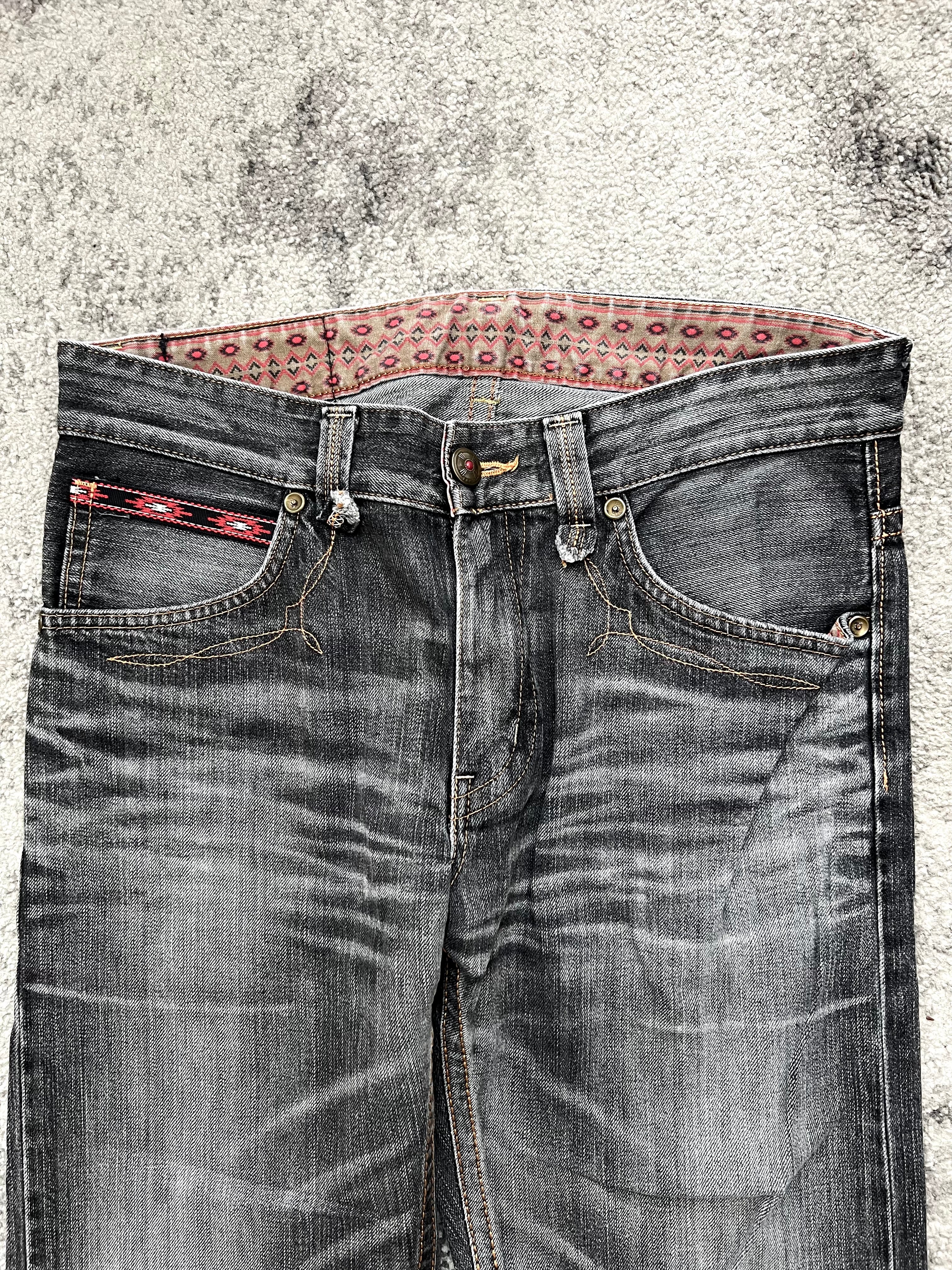 Not just a pair of jeans — more like a dusty echo from Tokyo's backstreets. The fade isn’t artificial; it looks earned. Heavily whiskered with sun-baked shadows, while the mismatched back pockets feel like a punk patchwork stitched mid-tour. It’s a blend of discipline and defiance — like if Americana and Harajuku shared a cigarette.