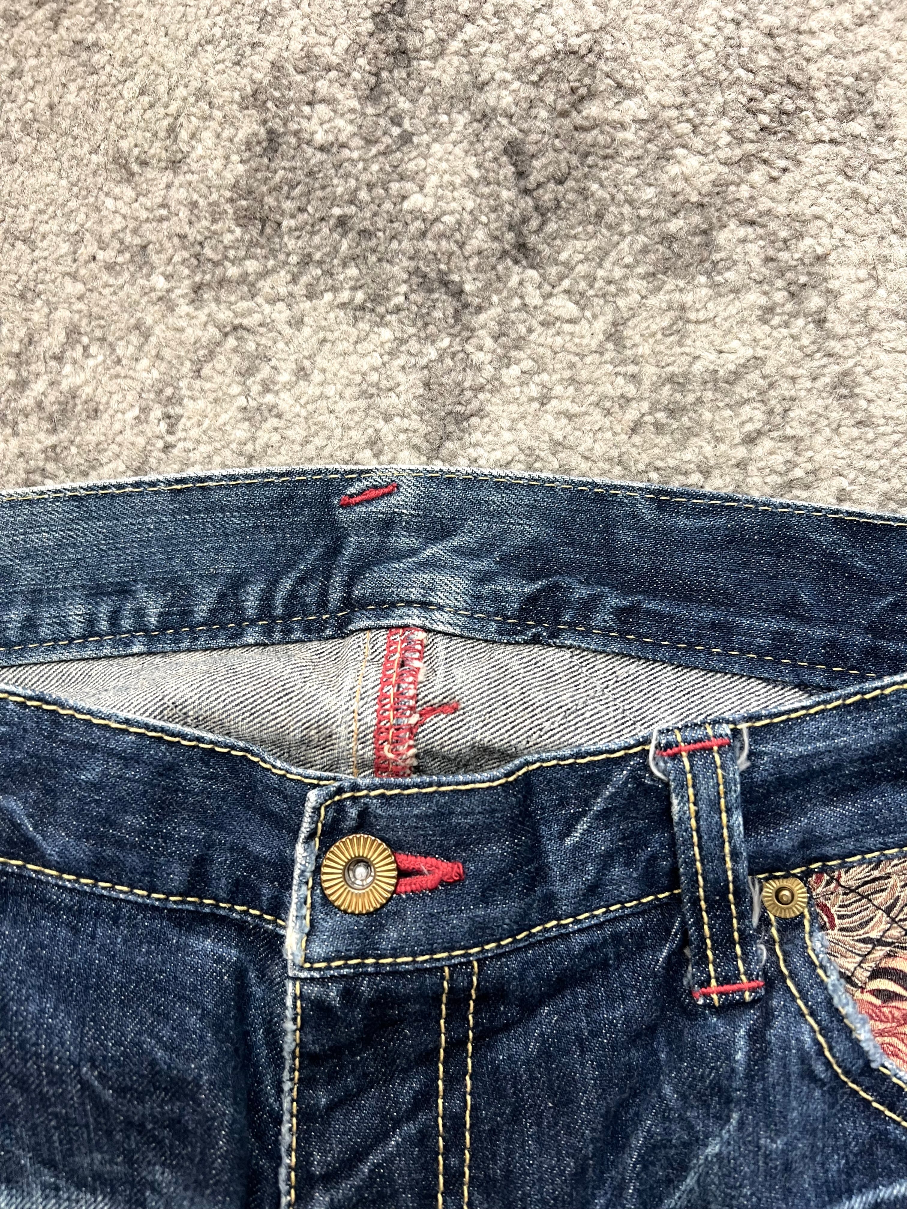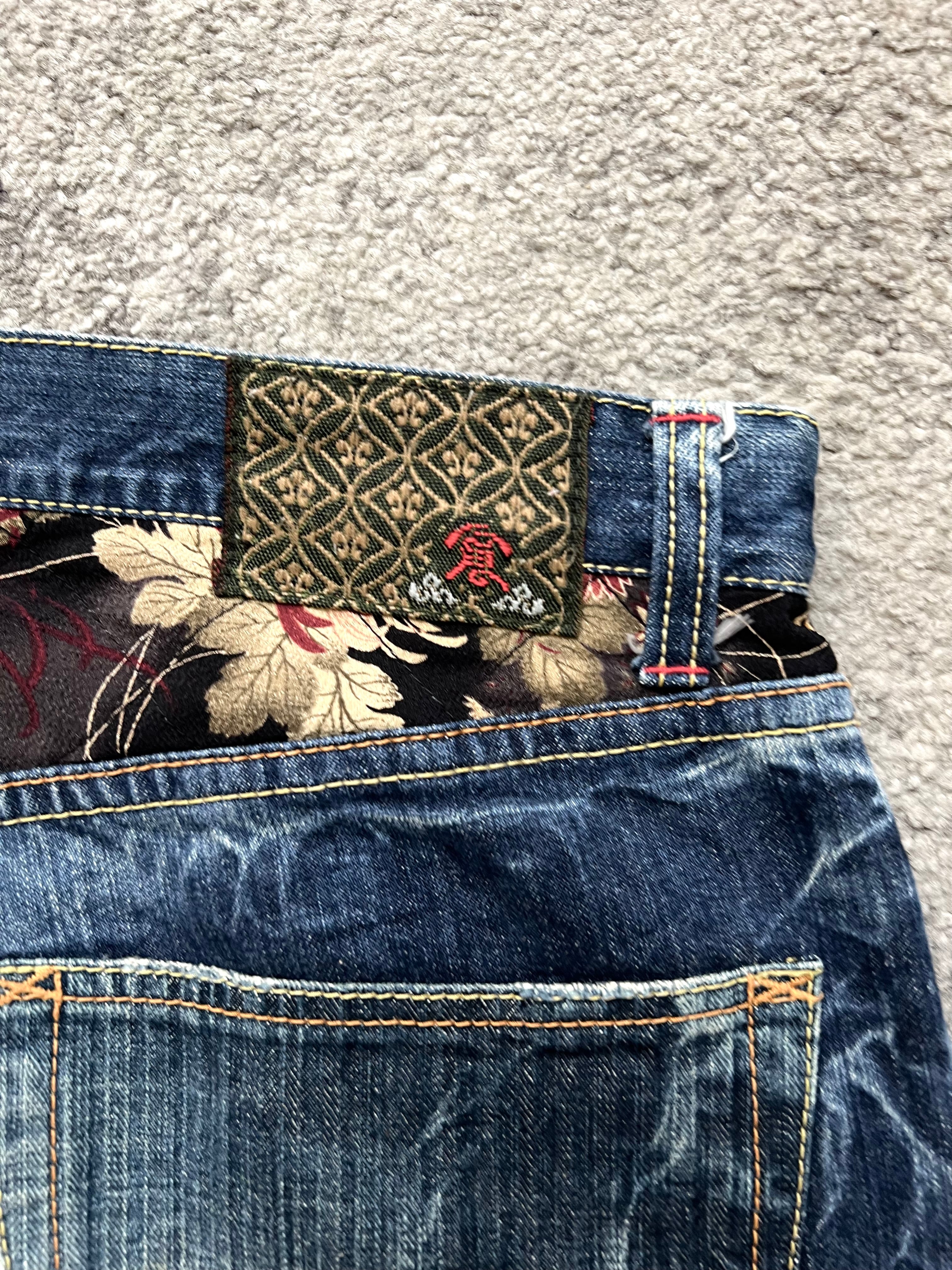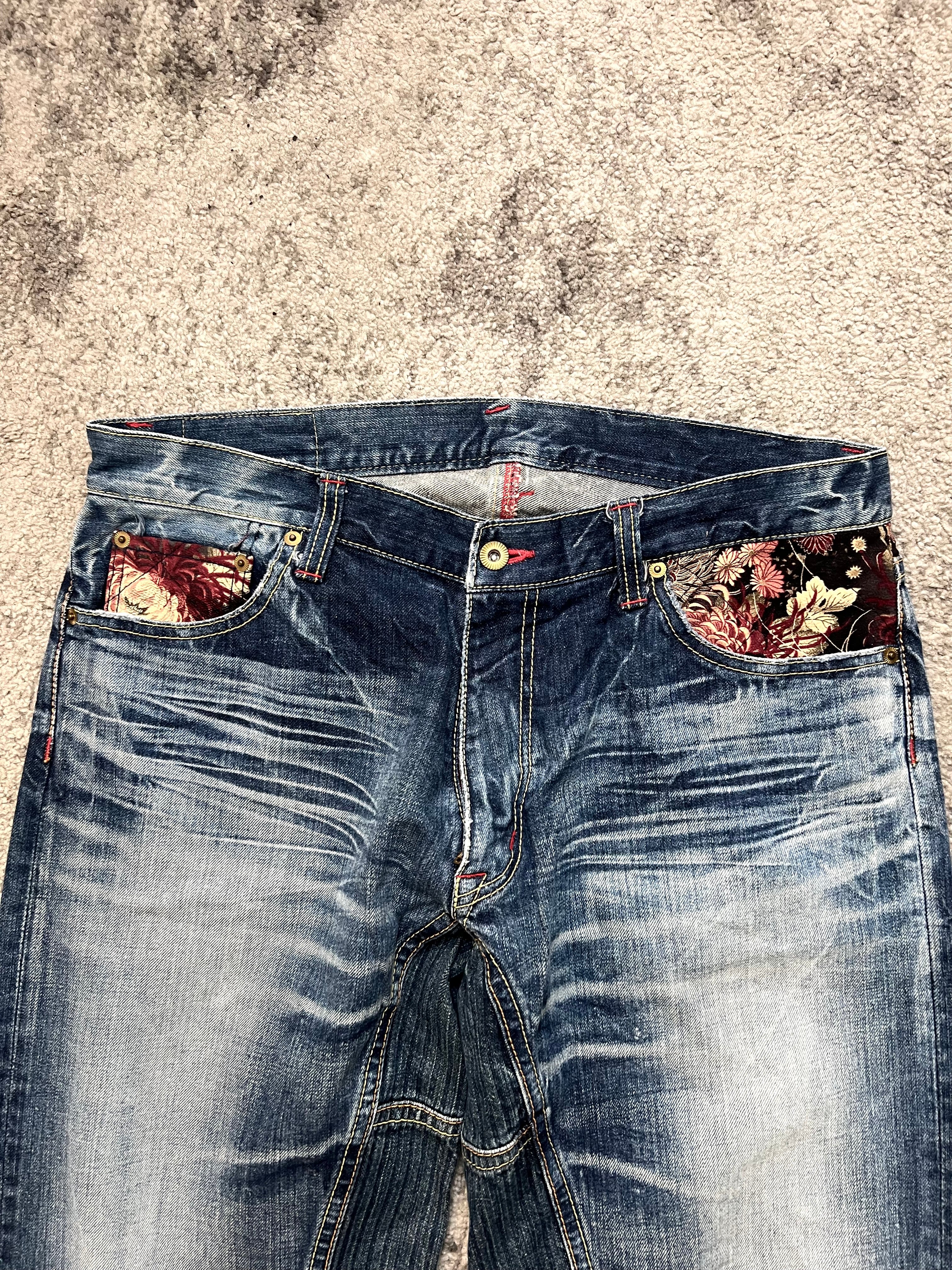 This isn’t standard denim – it’s Japan’s underground heritage stitched into fabric. Eternal crafts a wide, cropped silhouette with heavy fading, then clashes it against bold floral panels – kimono poetry meeting raw street energy.