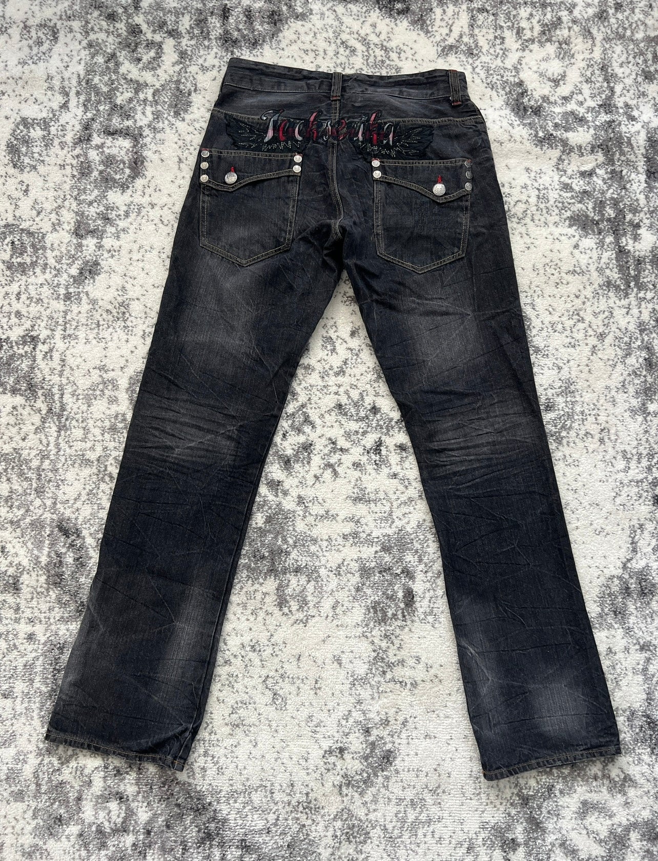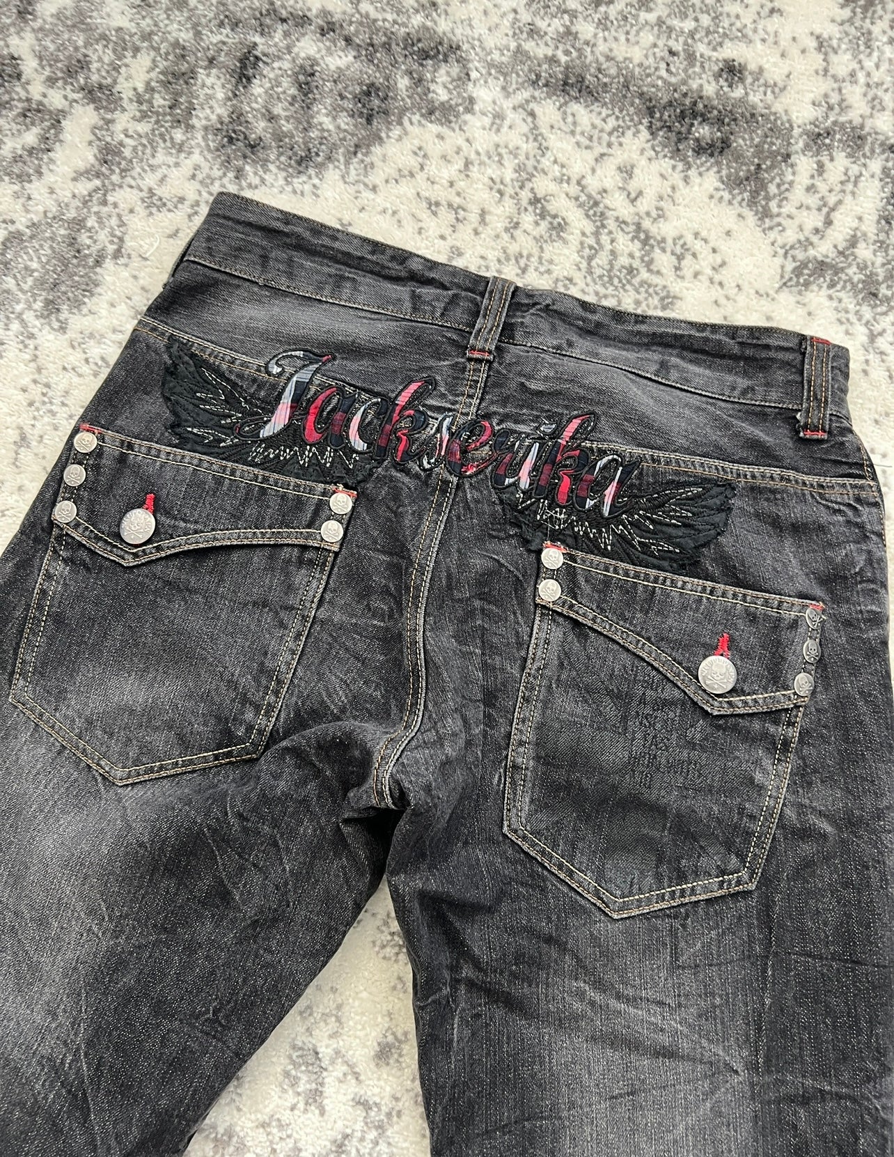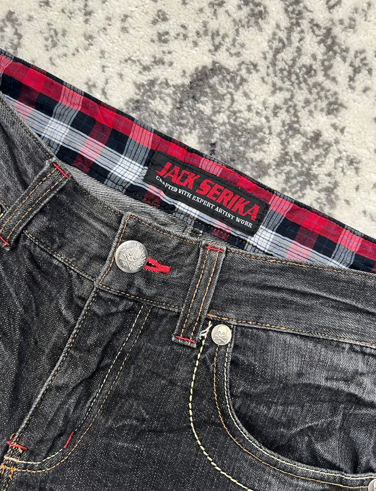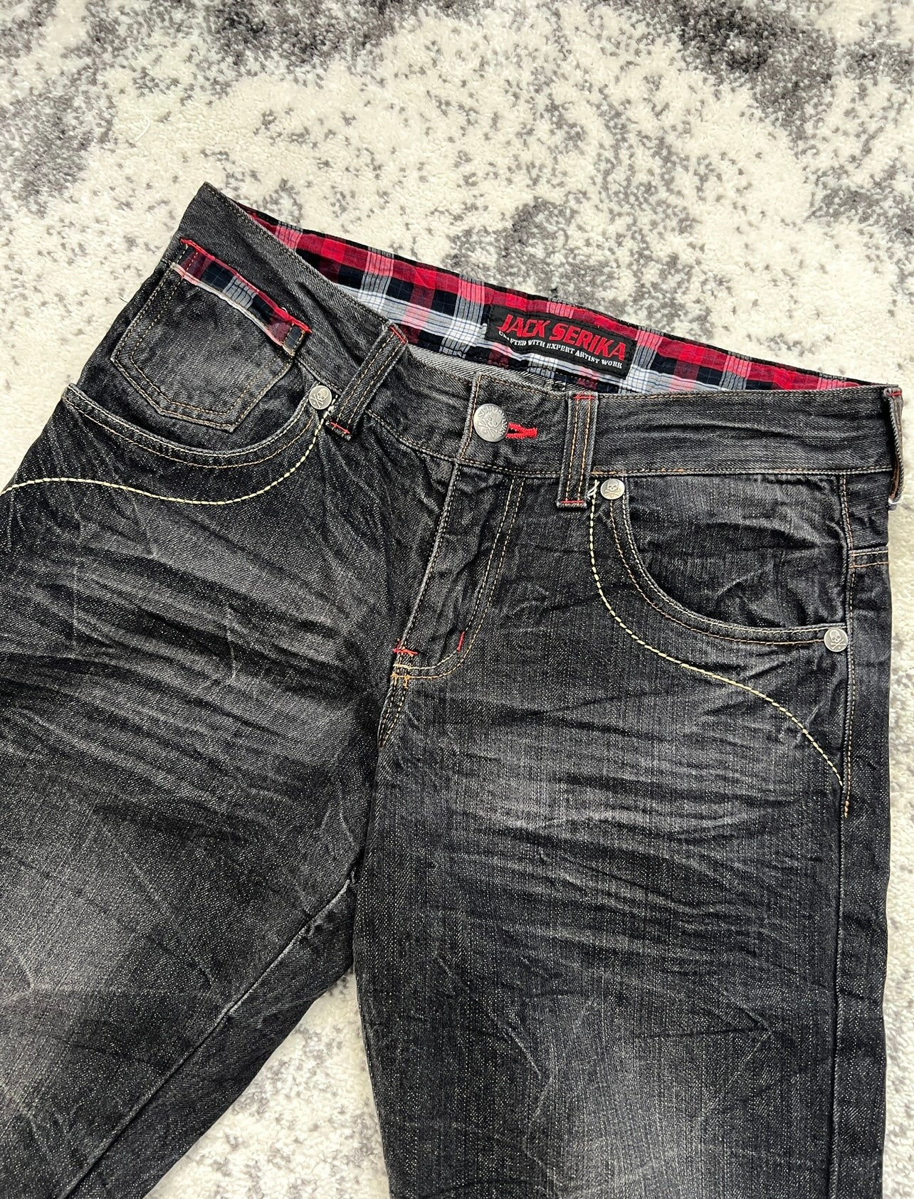 Jack Serika Japanese Denim Black Size : M Condition : 9/10 Measurements : Length 108cm, Waist 41cm, Leg Opening 22.5cm Read more