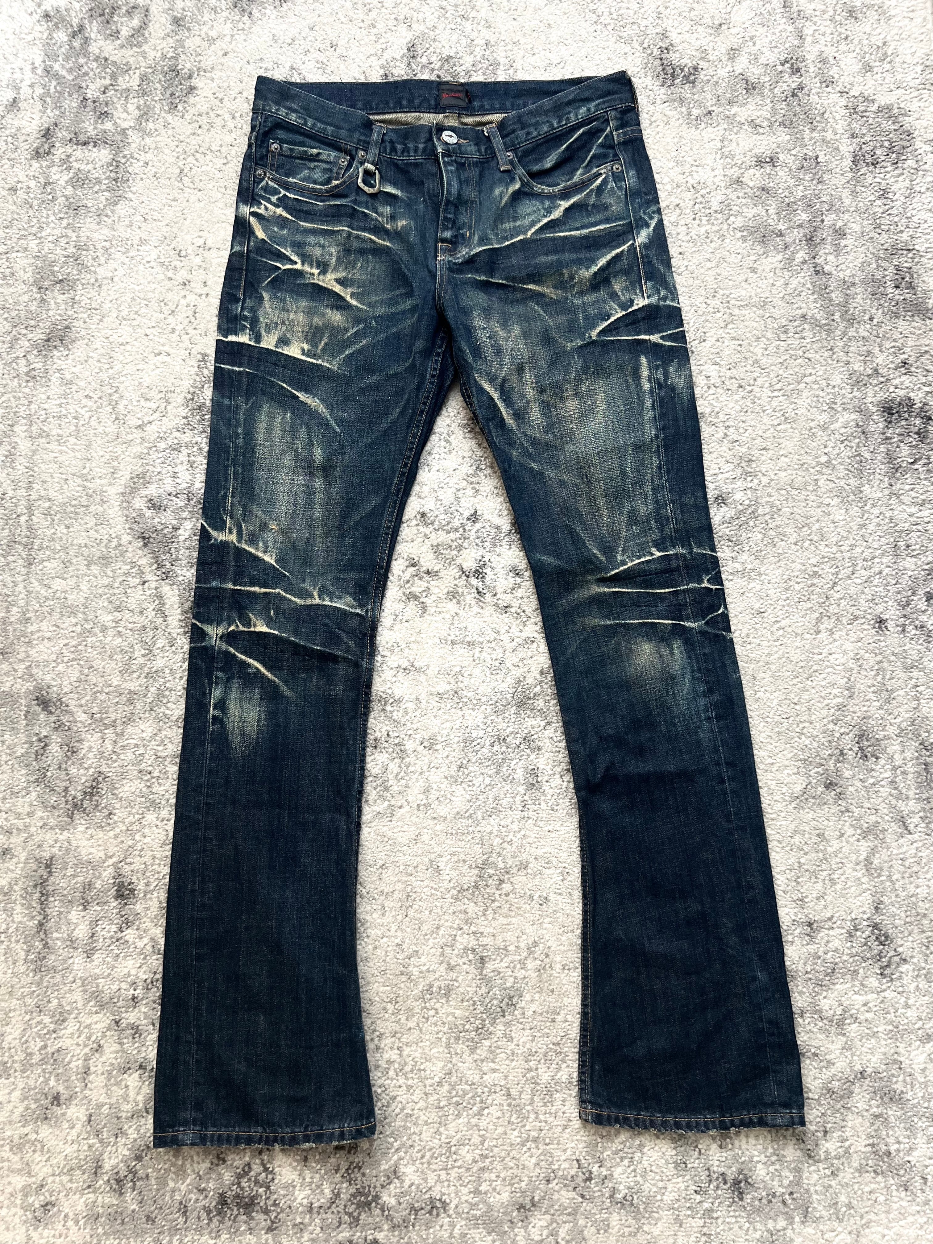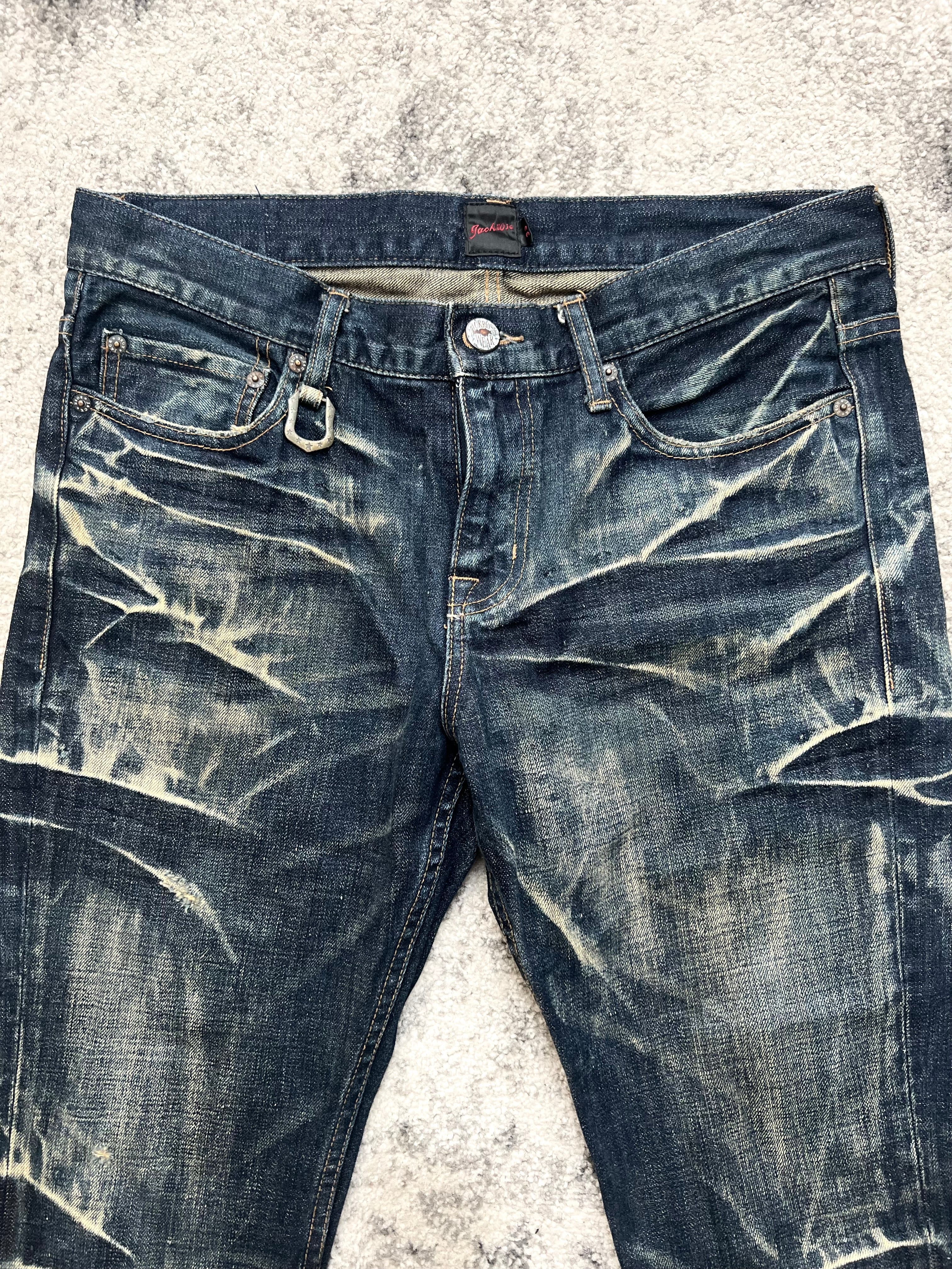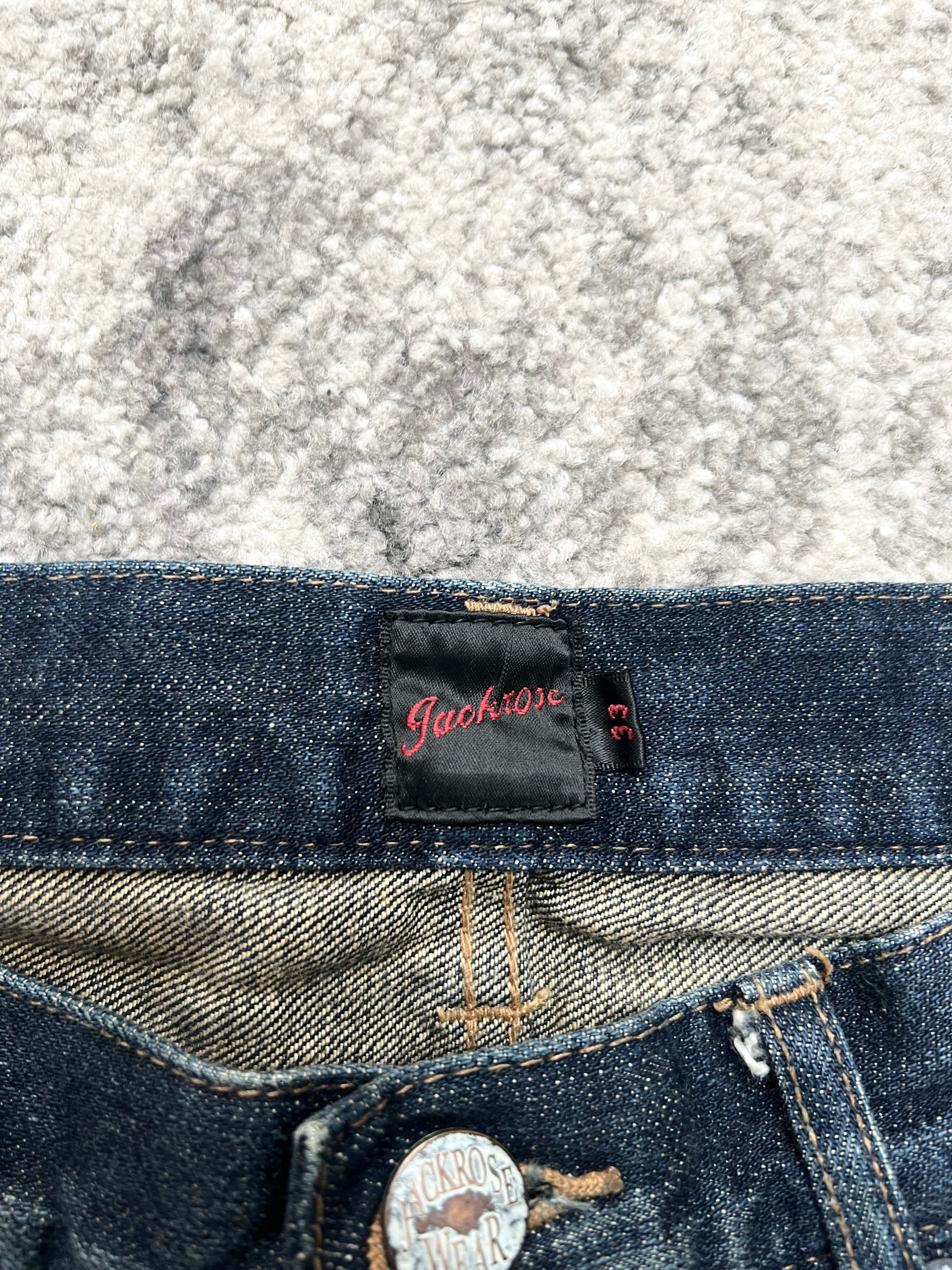 Straight from the archives of cult Japanese label JACKROSE, this pair delivers early 2000s rebel energy with modern edge. Built in Japan and finished with that signature heavy wash, these denim embodies the perfect clash of punk, biker, and street.
