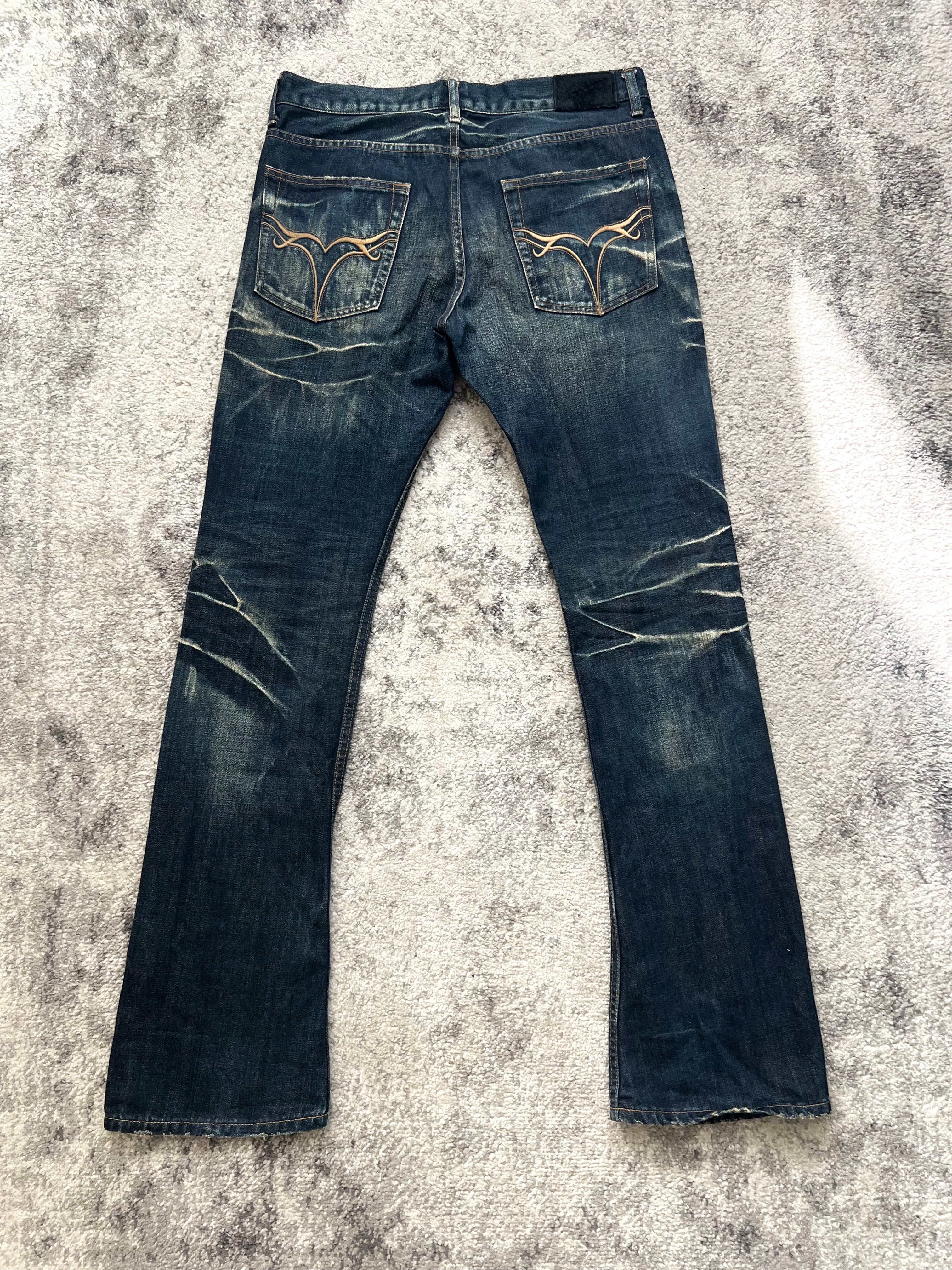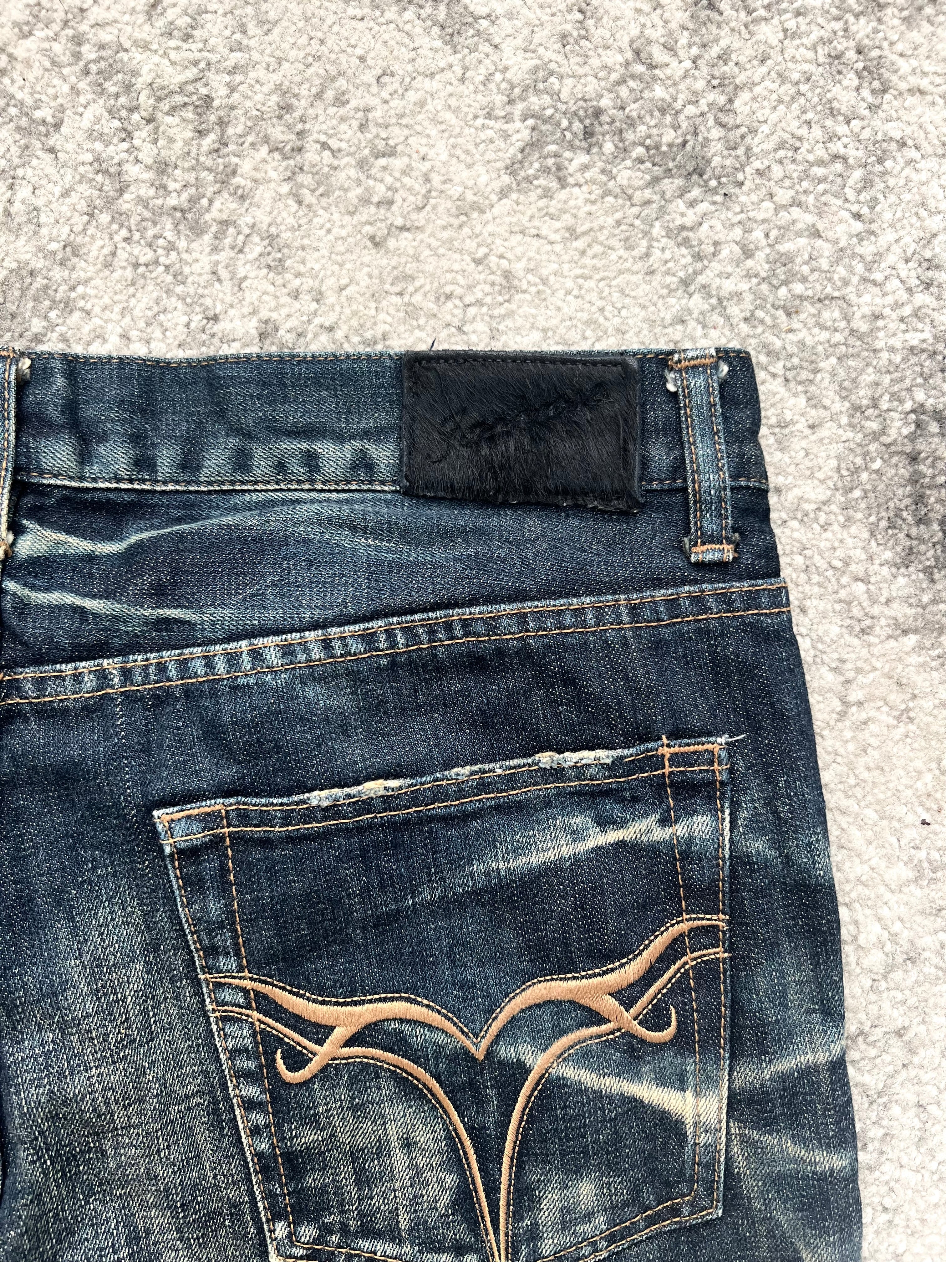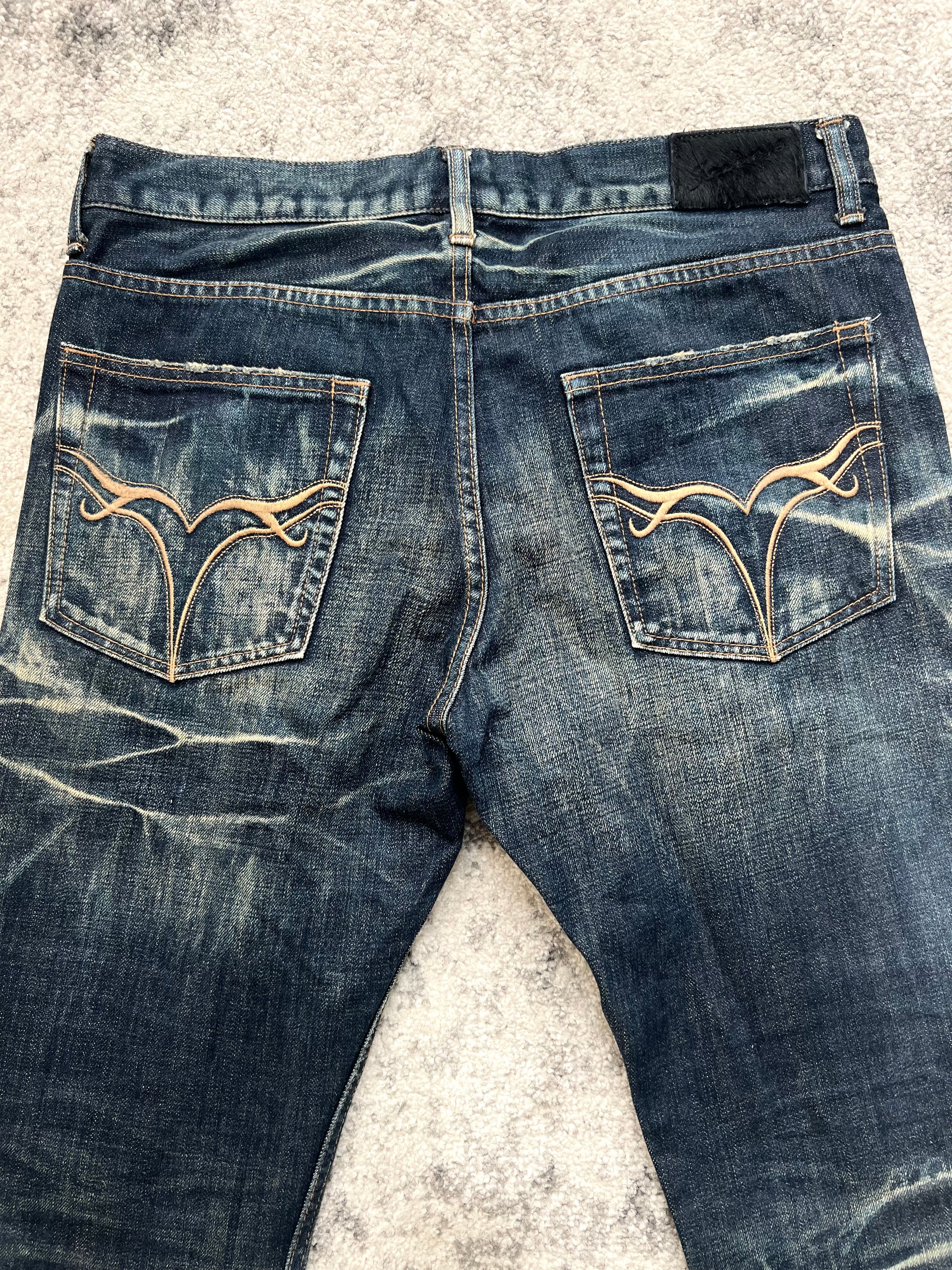 Straight from the archives of cult Japanese label JACKROSE, this pair delivers early 2000s rebel energy with modern edge. Built in Japan and finished with that signature heavy wash, these denim embodies the perfect clash of punk, biker, and street.