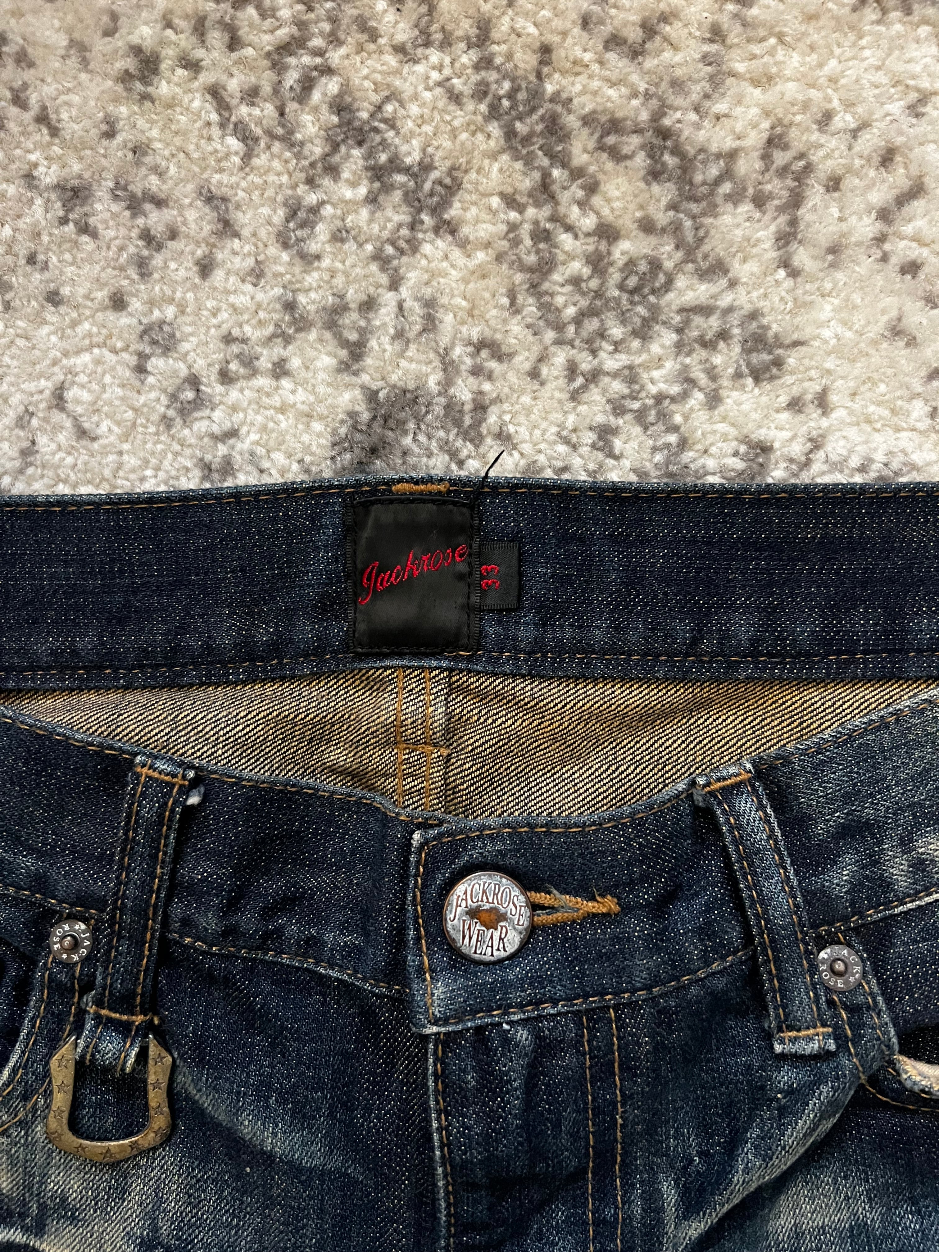 JACKROSE DARKBLUE 33 Size : M/L Condition : 9/10 Measurements : Length 115cm, Waist 42cm, Leg Opening 24cm Read more