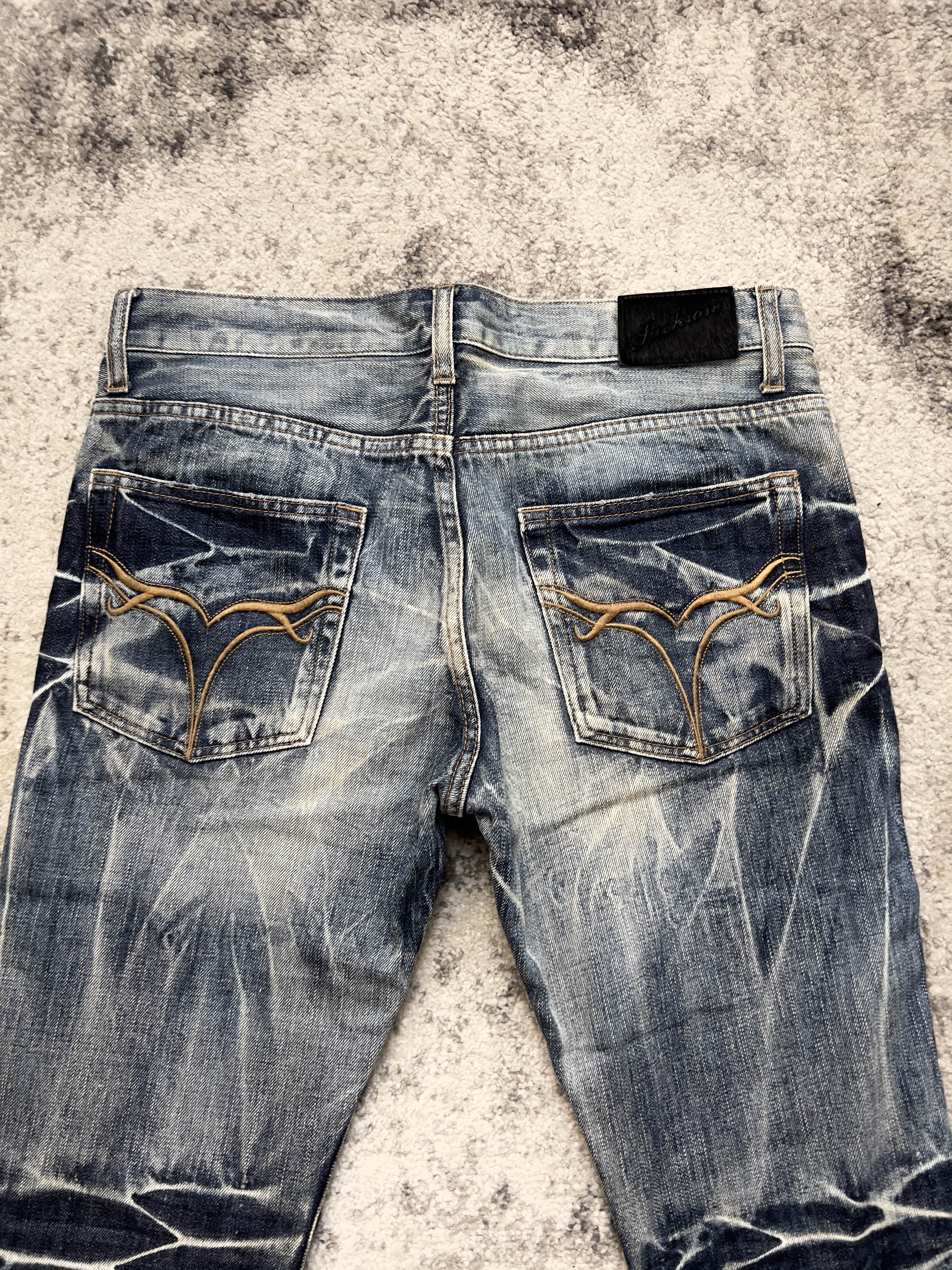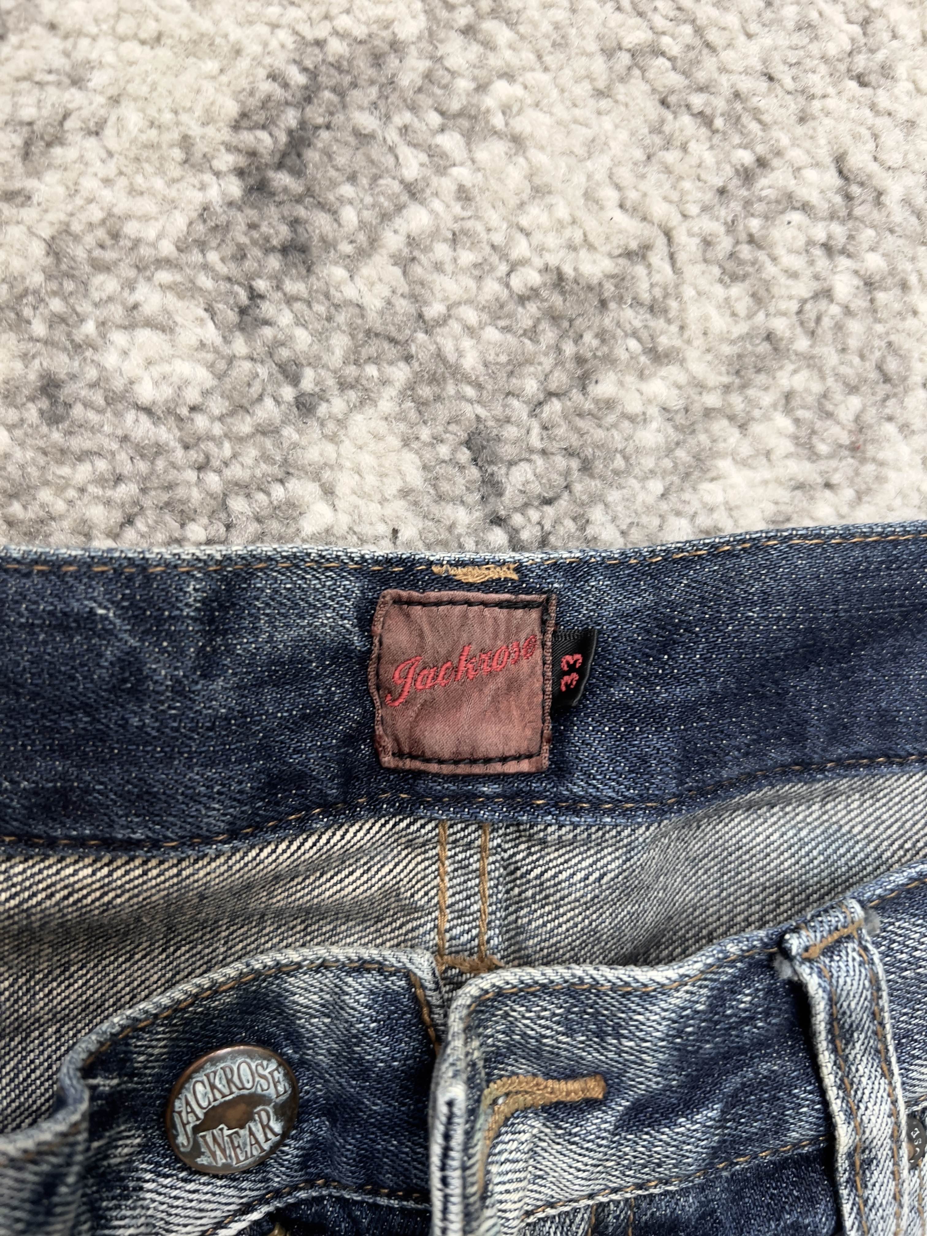 Mid rise with a straight-to-flared leg. Stacks hard over boots. Detailed back pocket embroidery adds that ‘only in Japan’ touch – classic Jackrose flair. Best worn with confidence, not caution.