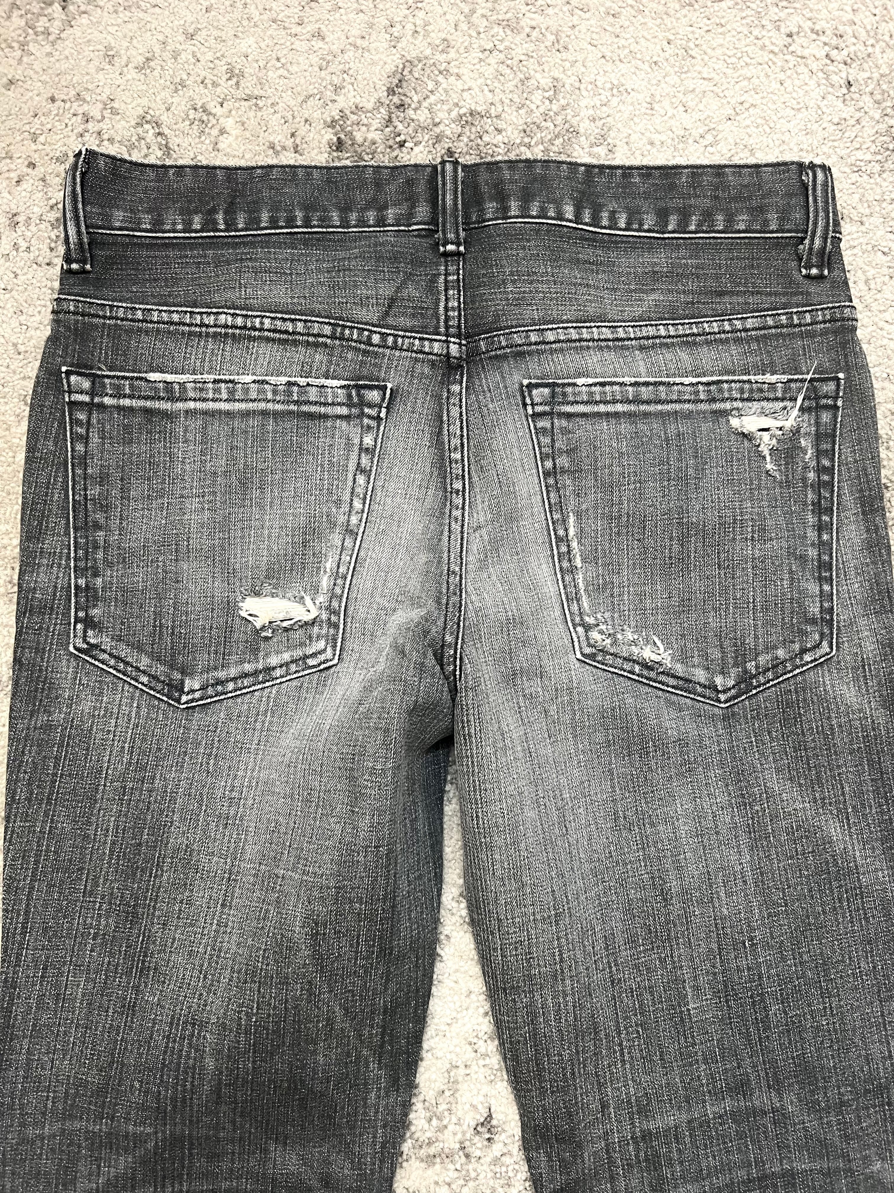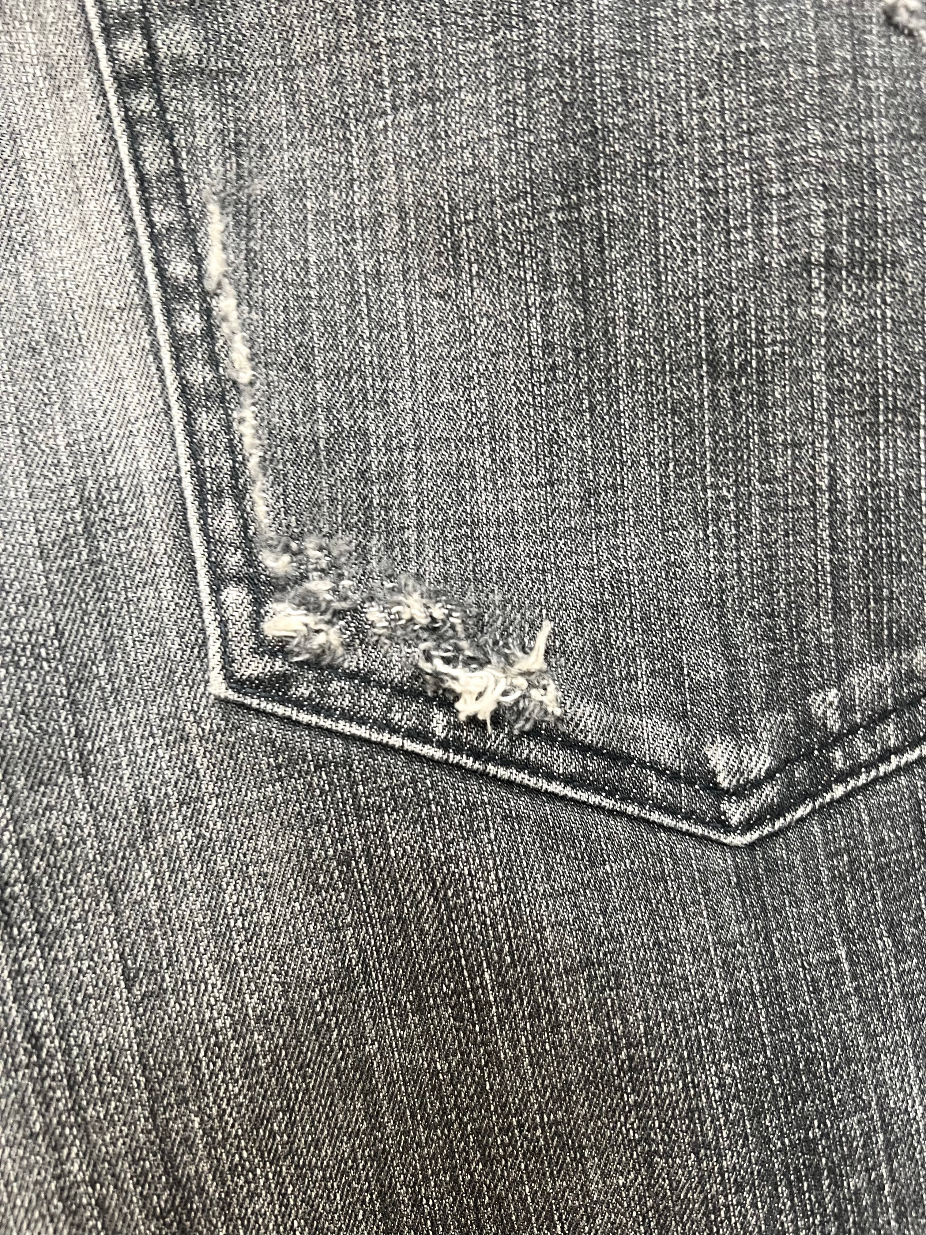 Pre-owned, artfully worn. Holes at the knees, slight abrasions—nothing overdone. Fades natural and beautifully aged. No flaws that weren’t meant to be.