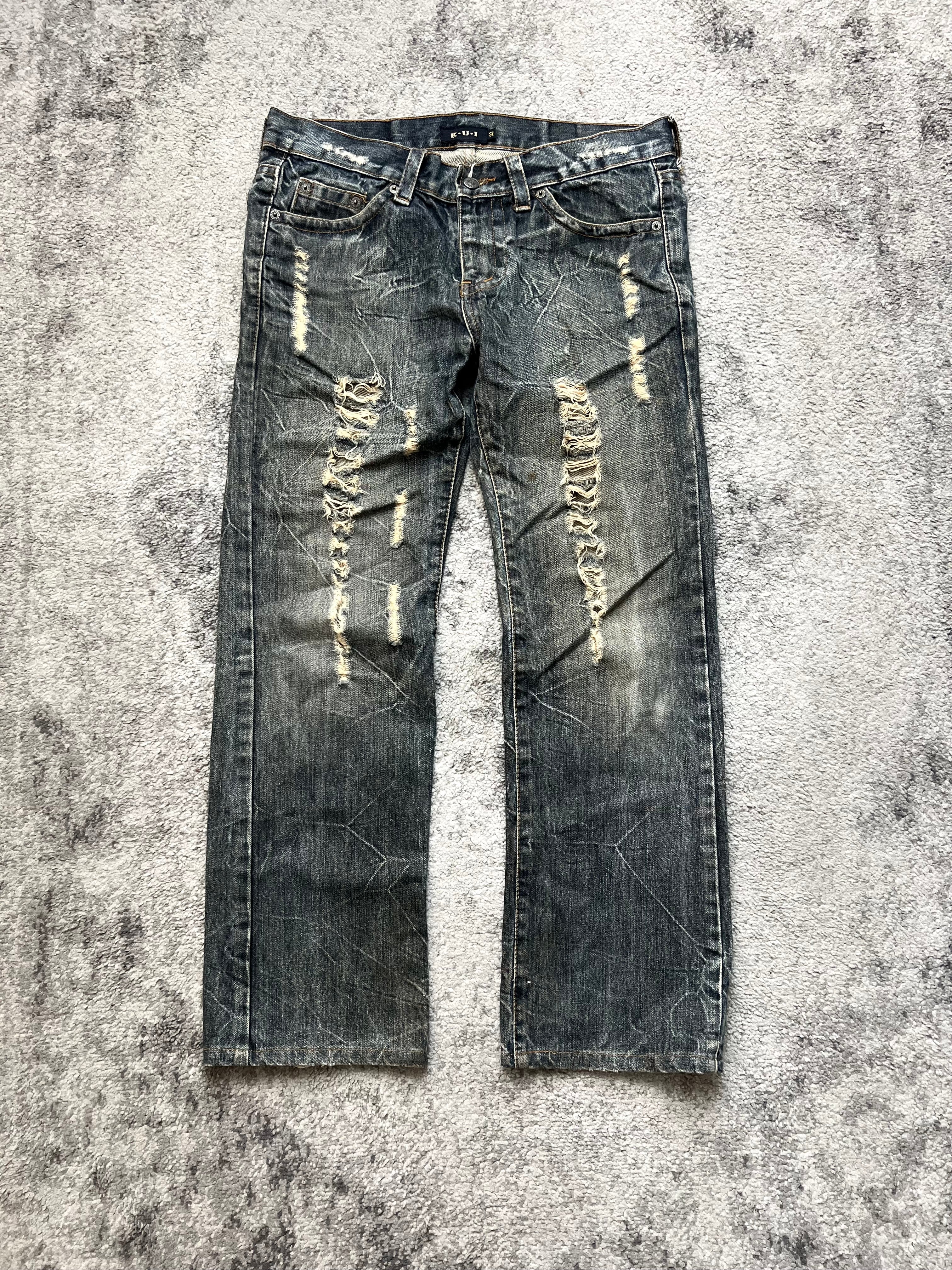 K.U.I “Ashes & Fragments” Denim – torn into existence, a relic of defiance straight out of Japan’s underground. Denim that doesn’t whisper— it shouts.
