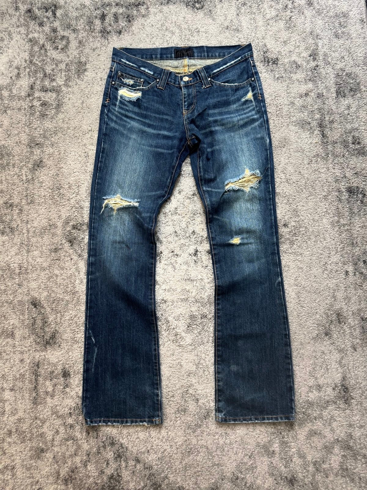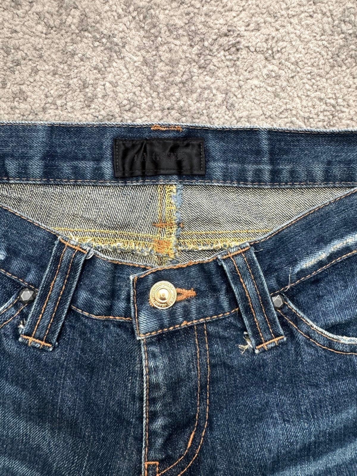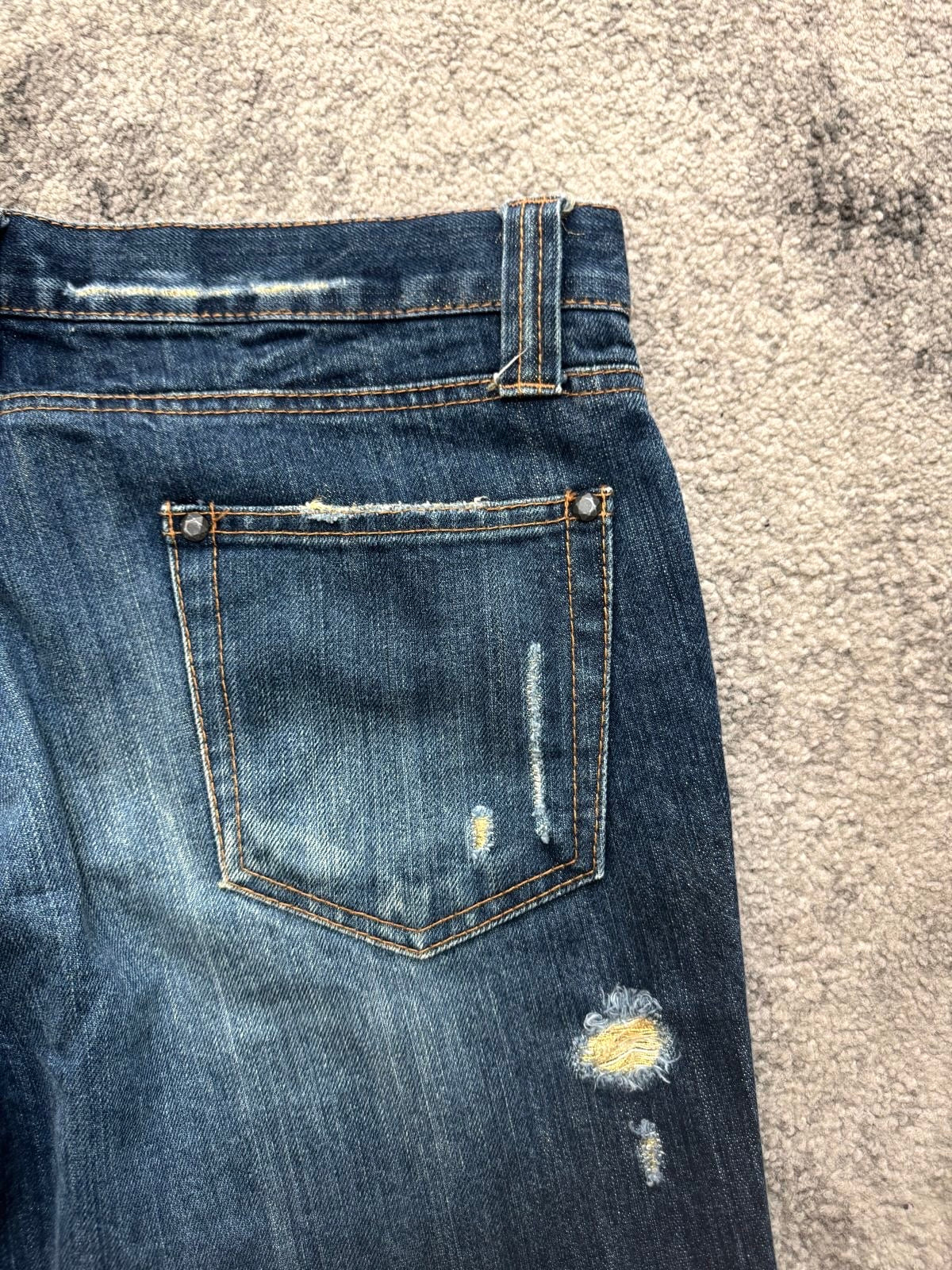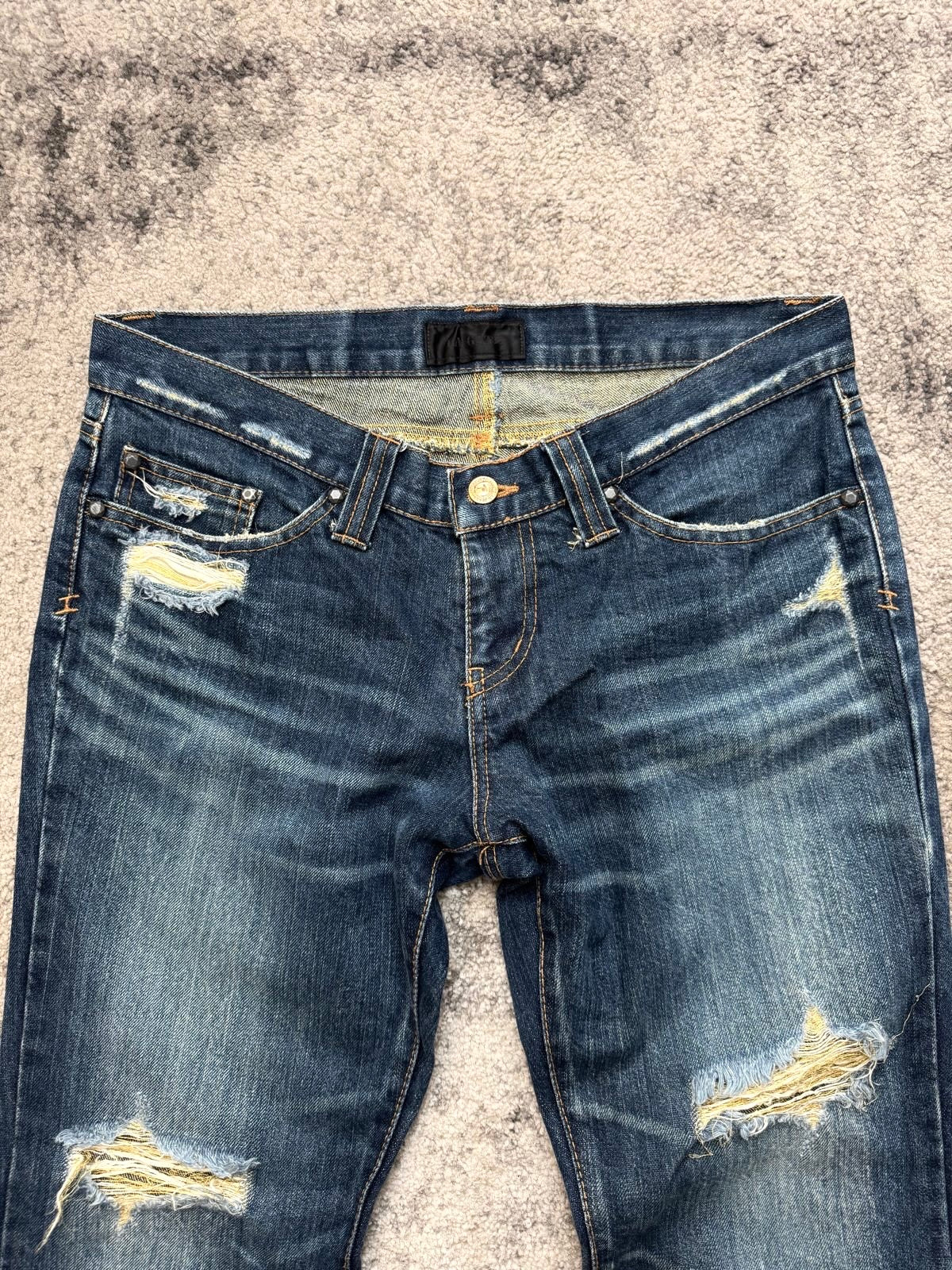 Pre-owned with heavy distressing and frayed edges. Shredded knee hits and thigh abrasions. Fully intact and ready to take more damage.