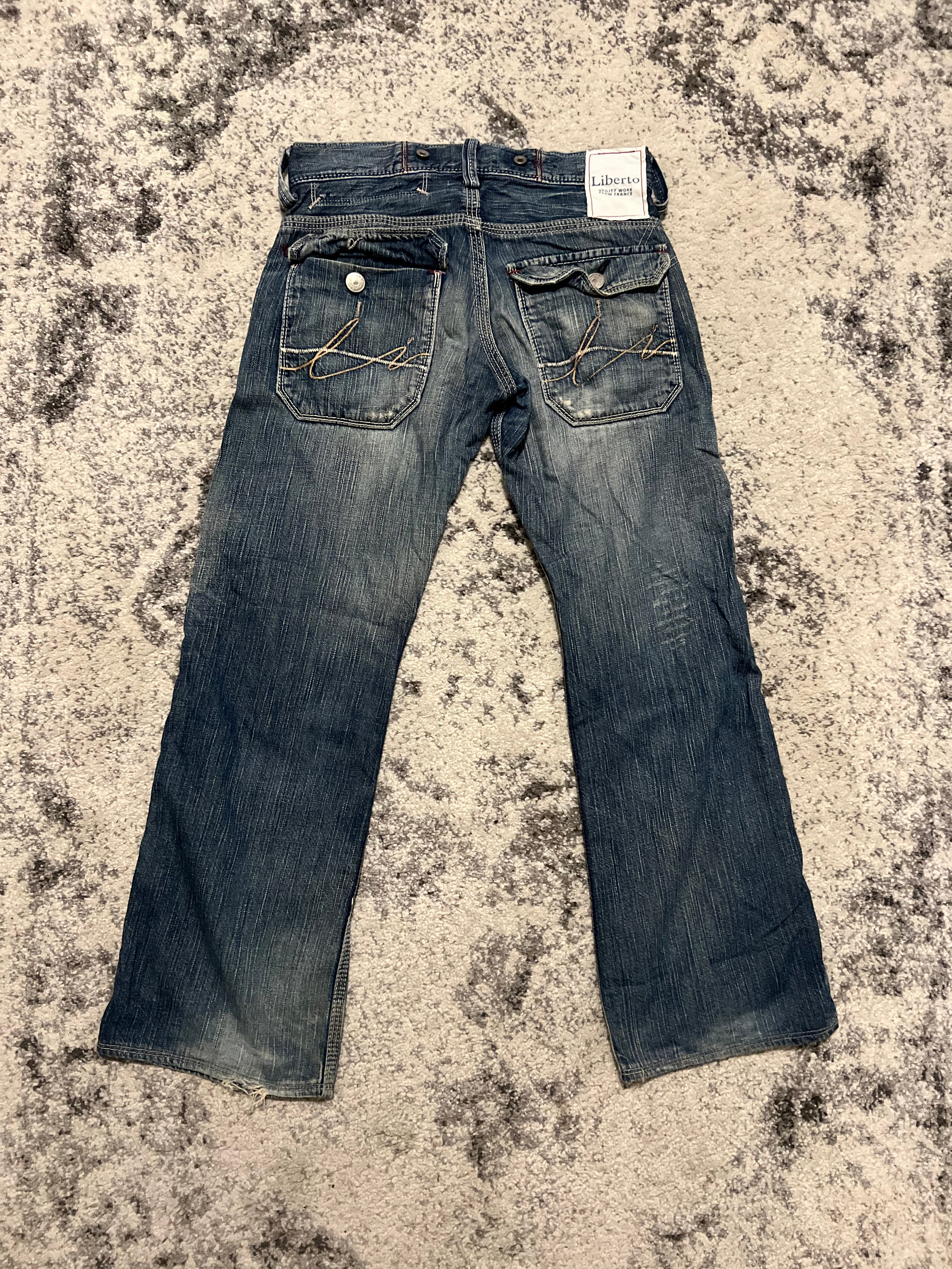 Liberto Japanese Flared Denim Size : S Condition : 9/10 Measurements : Length 96cm, Waist 39cm, Leg Opening 23cm Read more