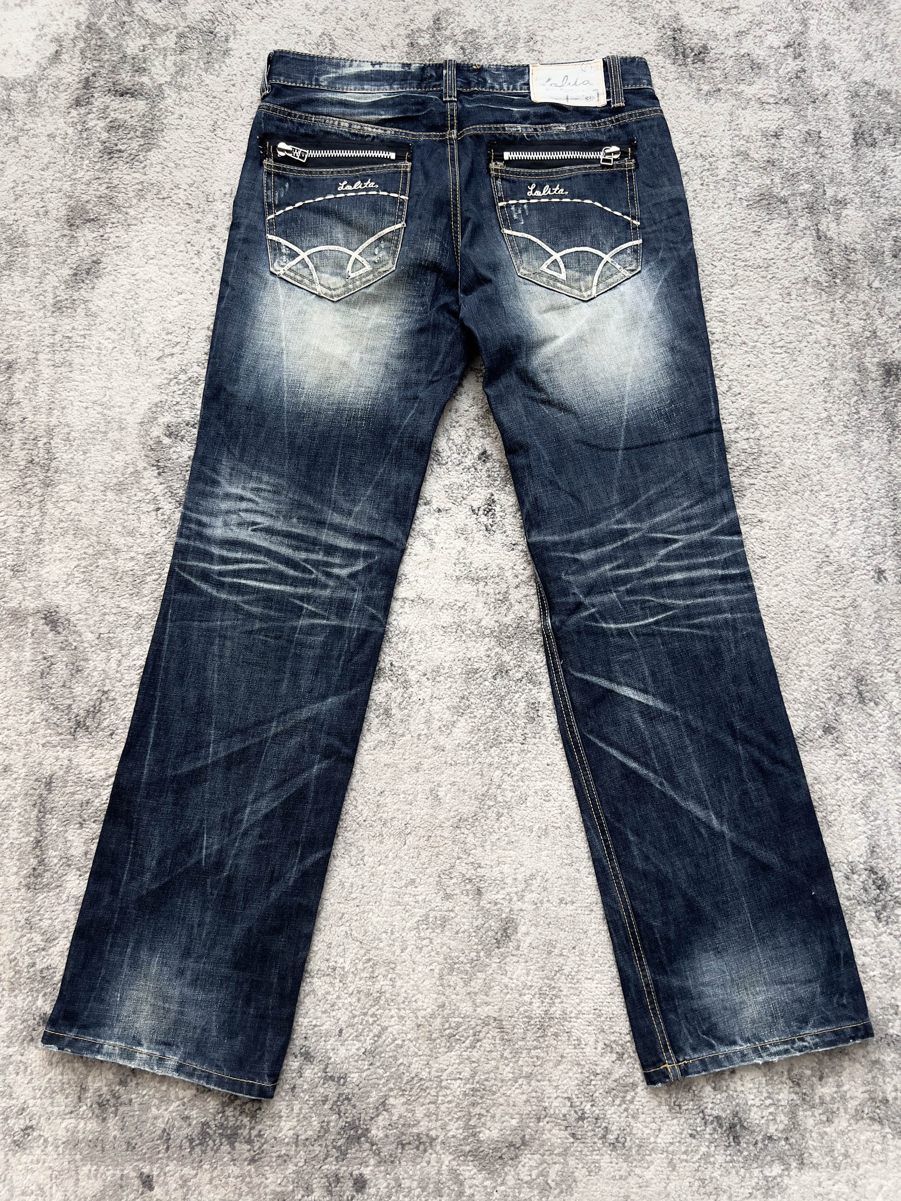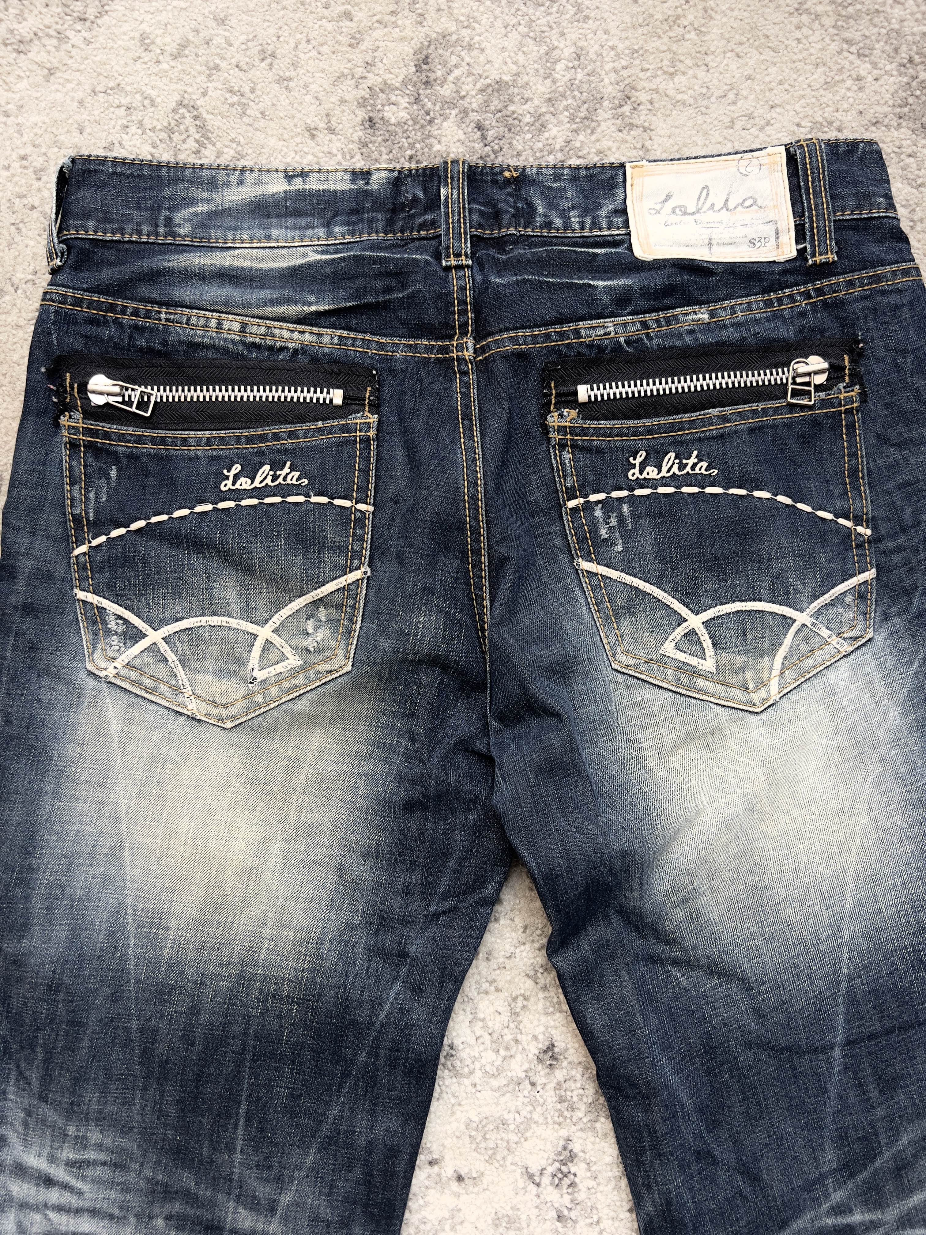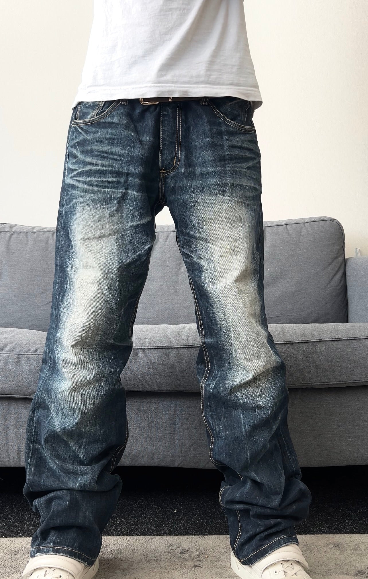 Classic straight fit with a touch of rebellion. Zippered back pockets and bold, contrasting stitching – a nod to those who live a little louder. Pairs perfectly with oversized hoodies or vintage leather for that Tokyo street edge.