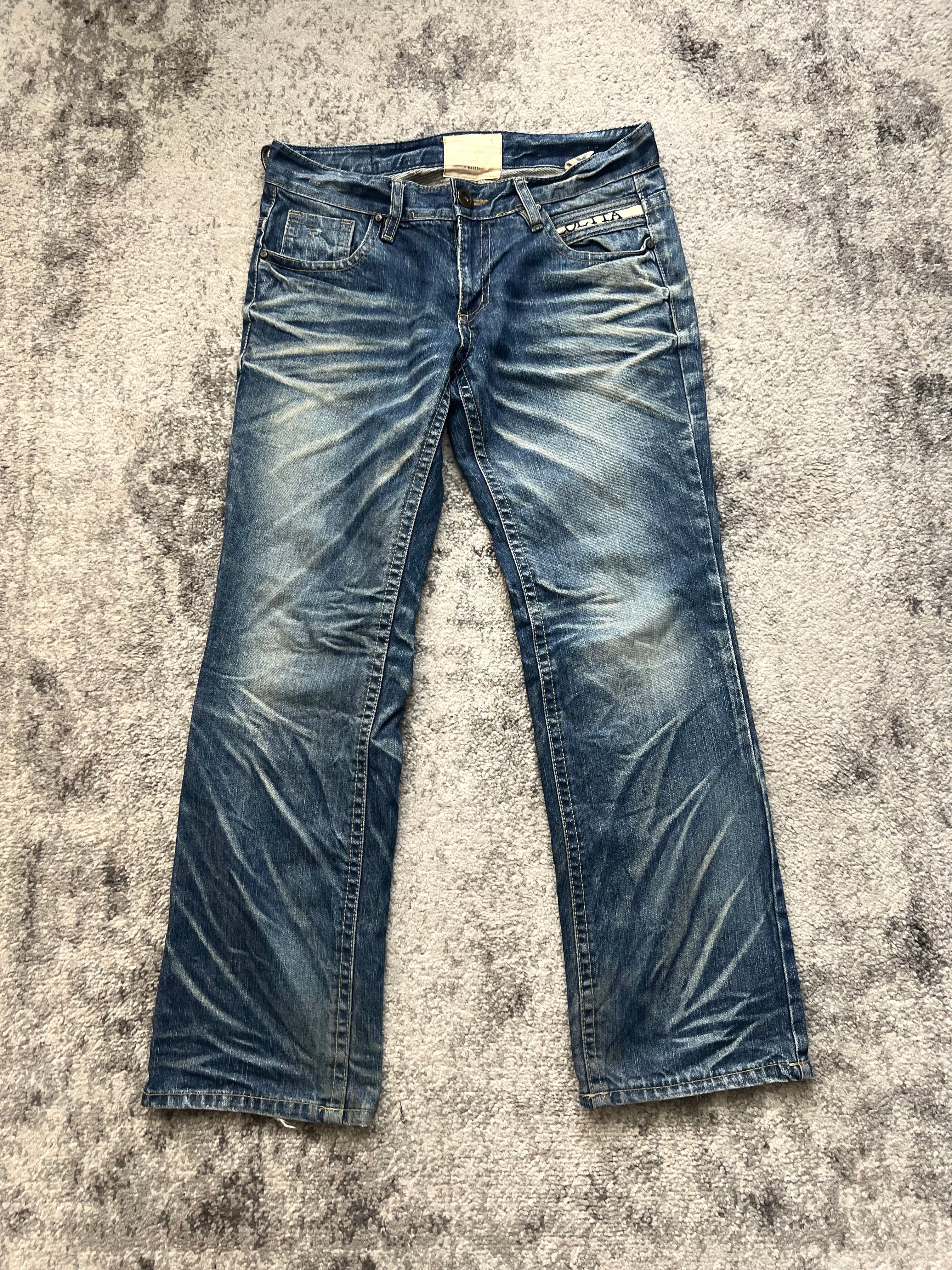Worn but clean. Beautiful natural fading, soft creasing, raw hems. Signs of wear that feel lived-in, not worn-out.
