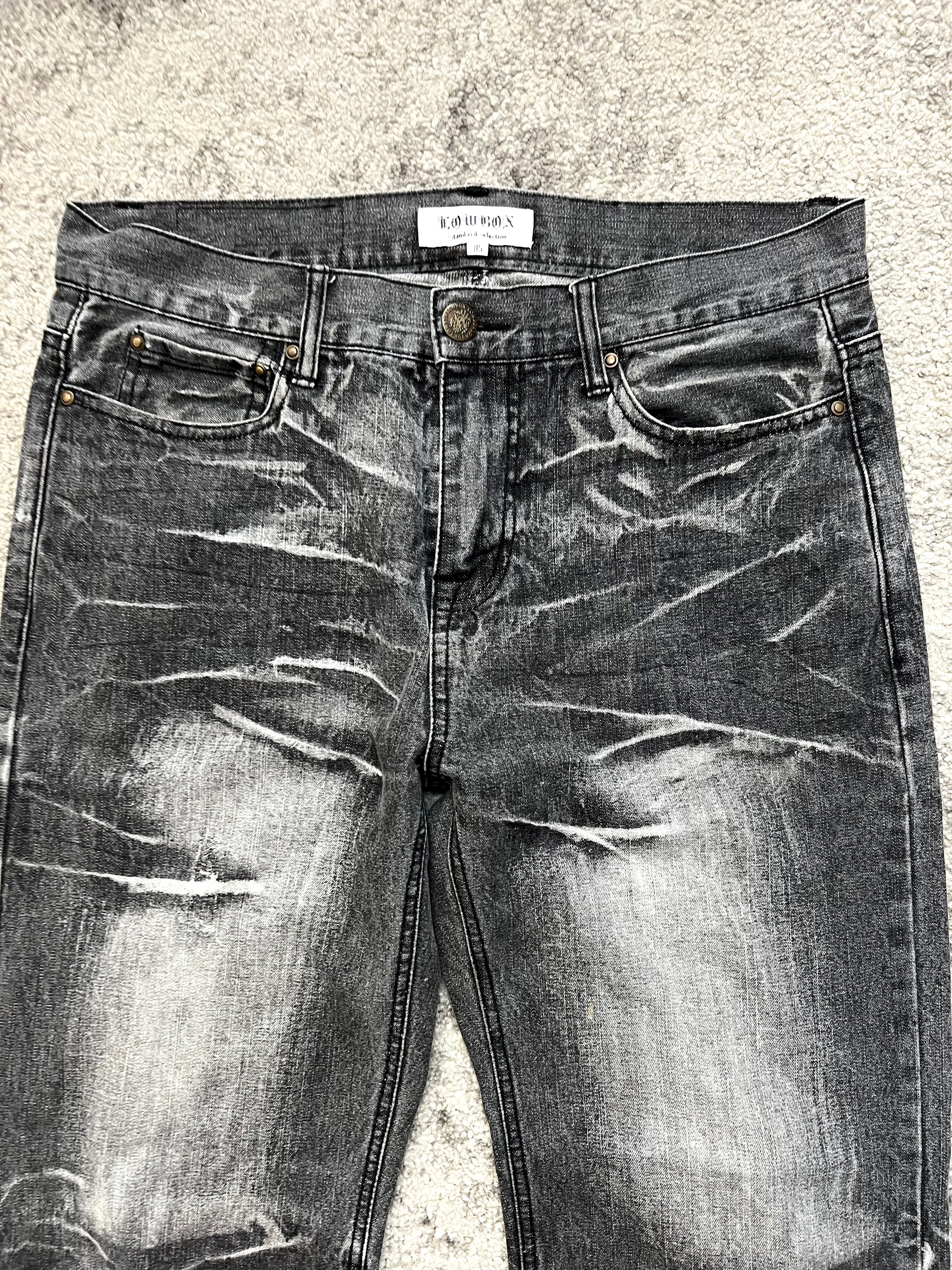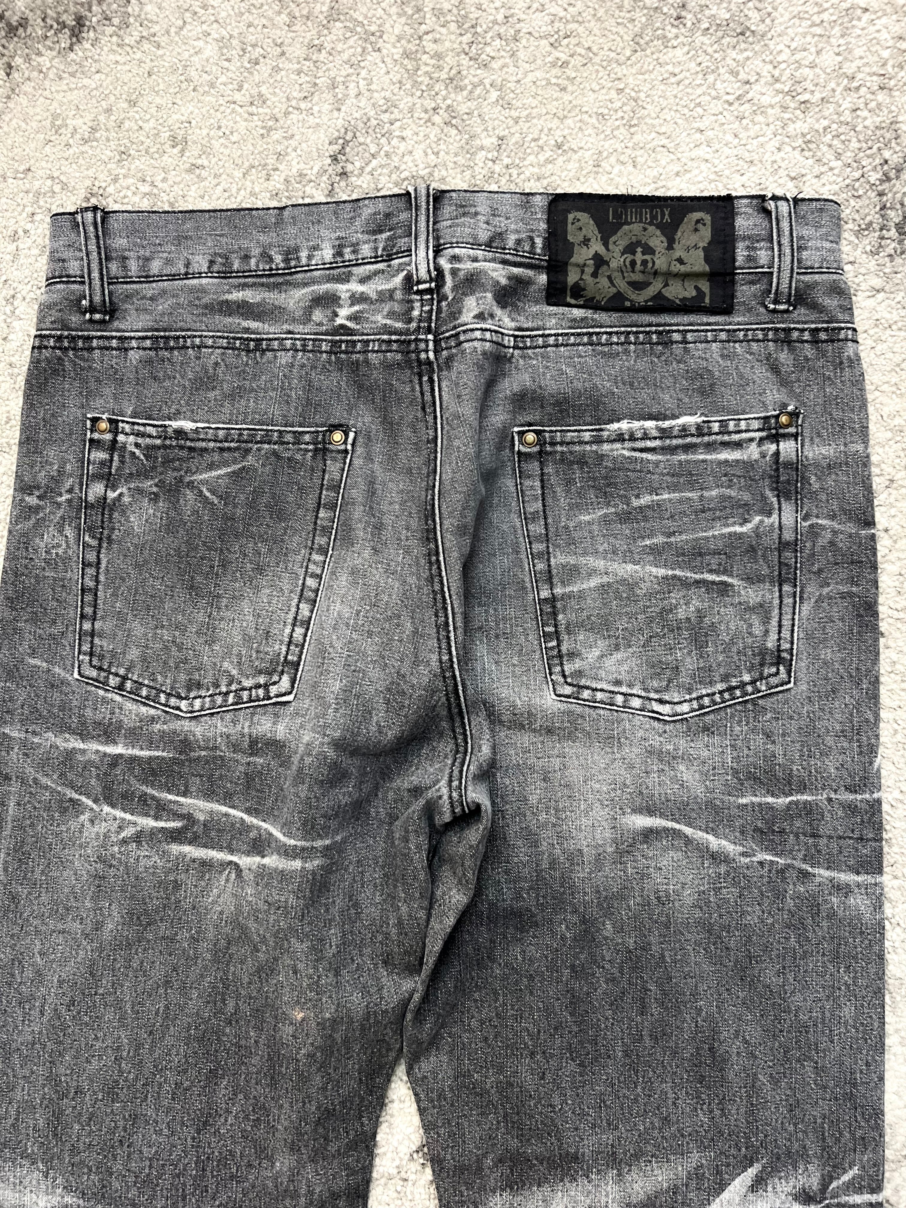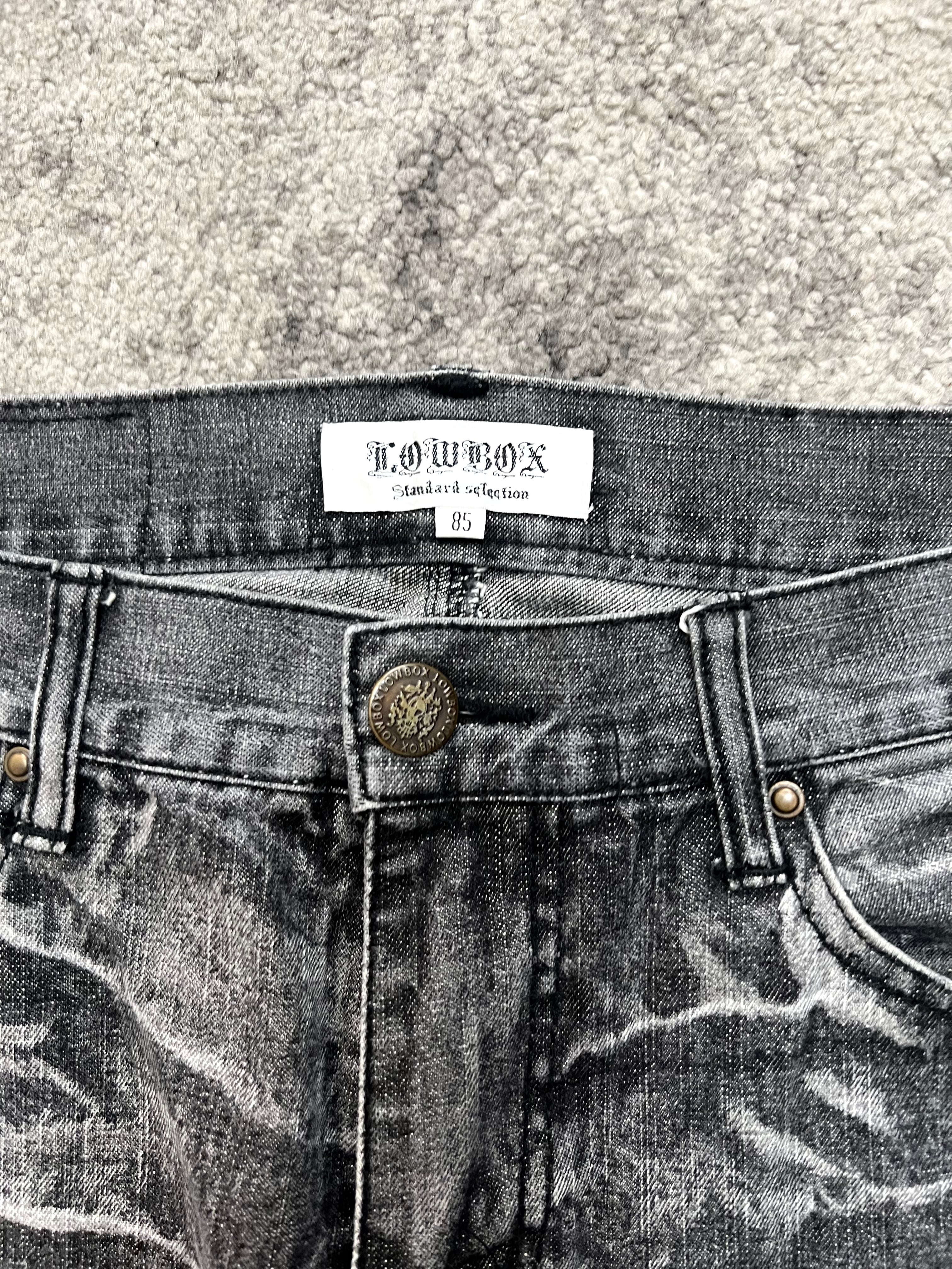 LOWBOX “Ash Phantom” Denim – washed in grey shadows, built with scars that echo the undercurrent of Tokyo’s streets. A true Japanese archive piece that balances raw destruction with timeless cool.