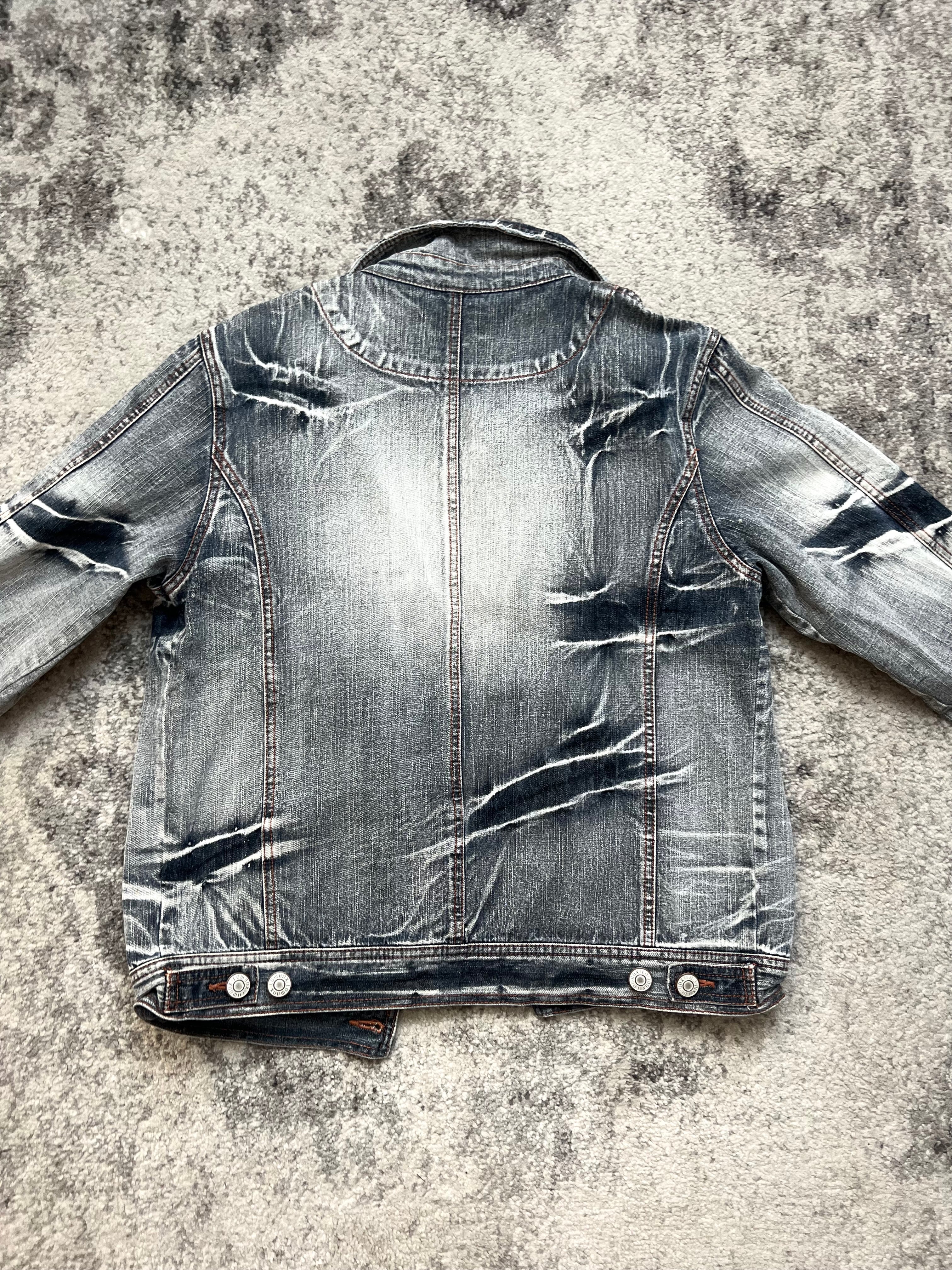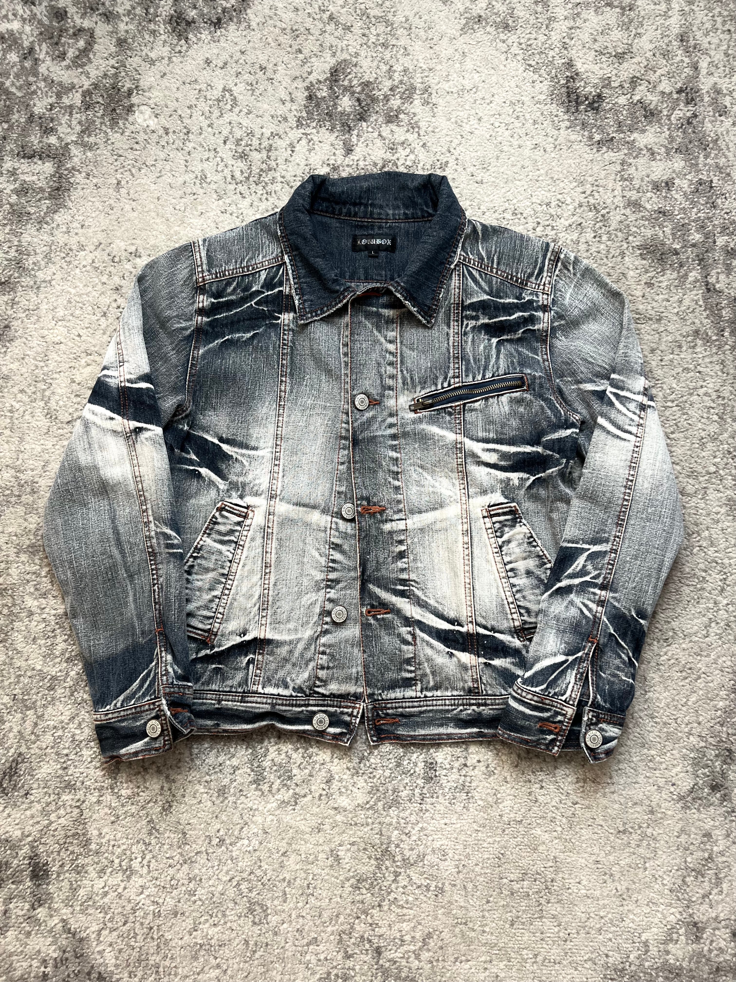 Rare Japanese denim jacket from LOWBOX – a wild artifact straight out of Tokyo's underground archive. Heavy 00s energy, full of attitude and raw edge, crafted with an obsessive attention to fading and texture.