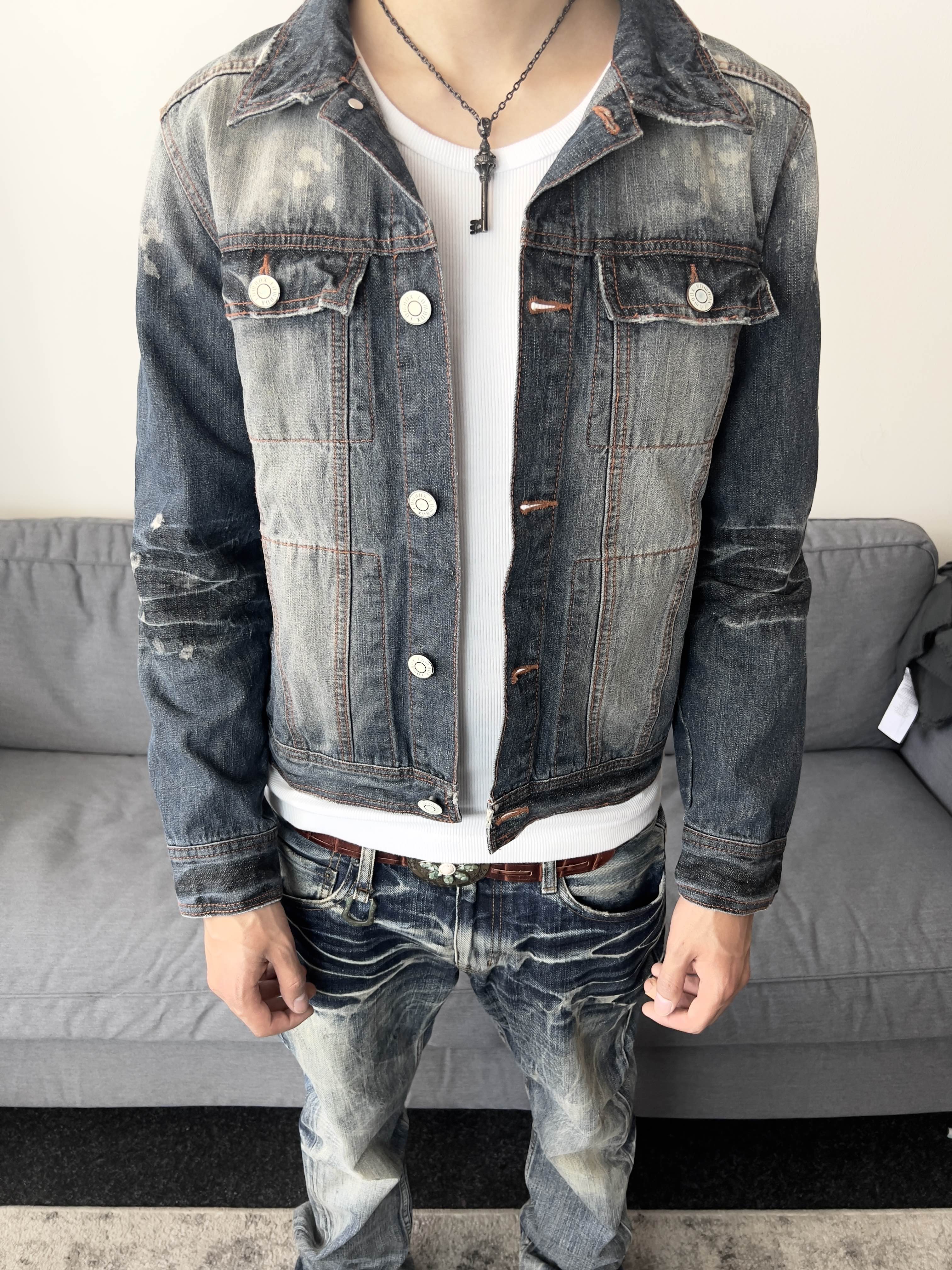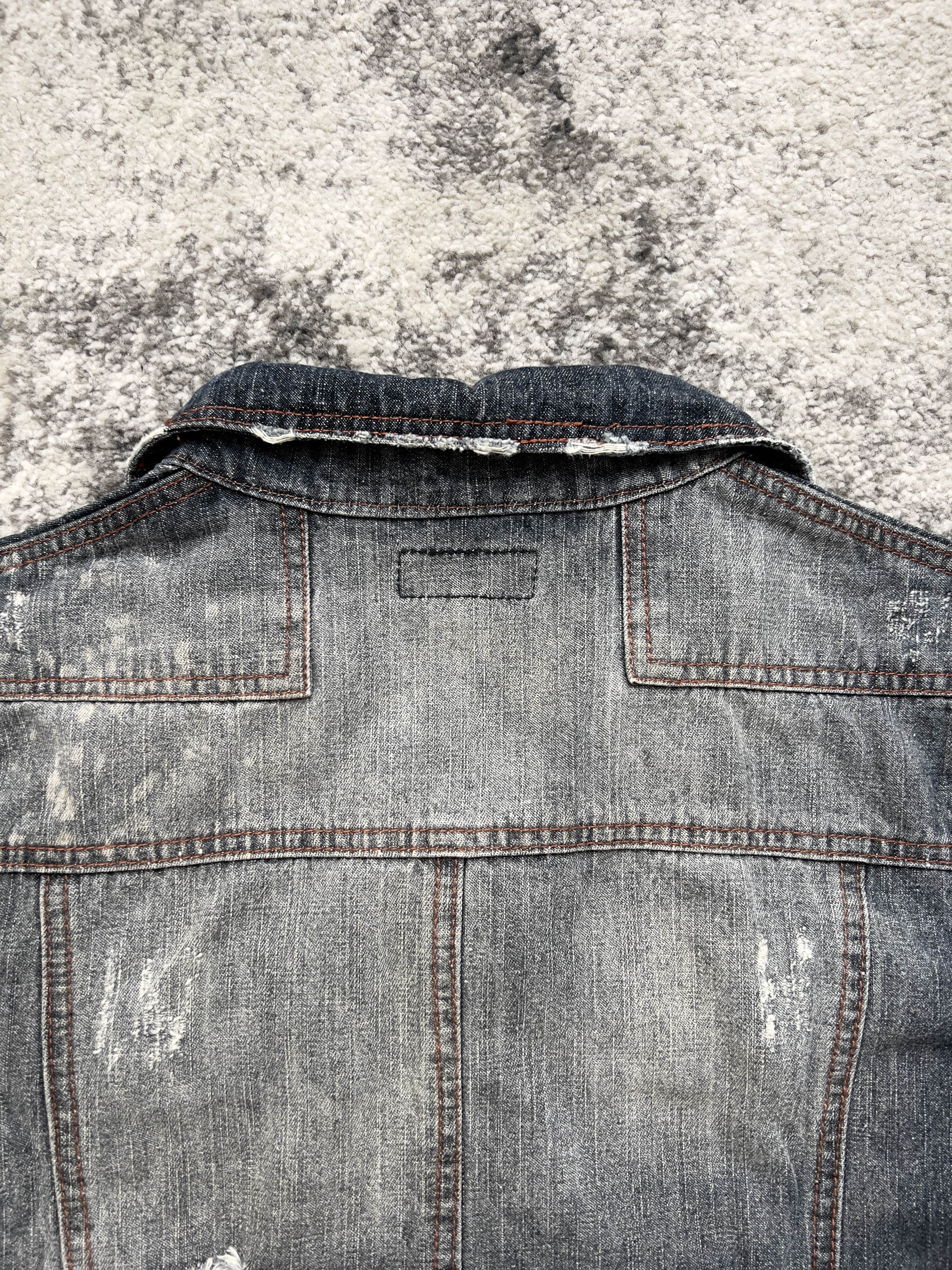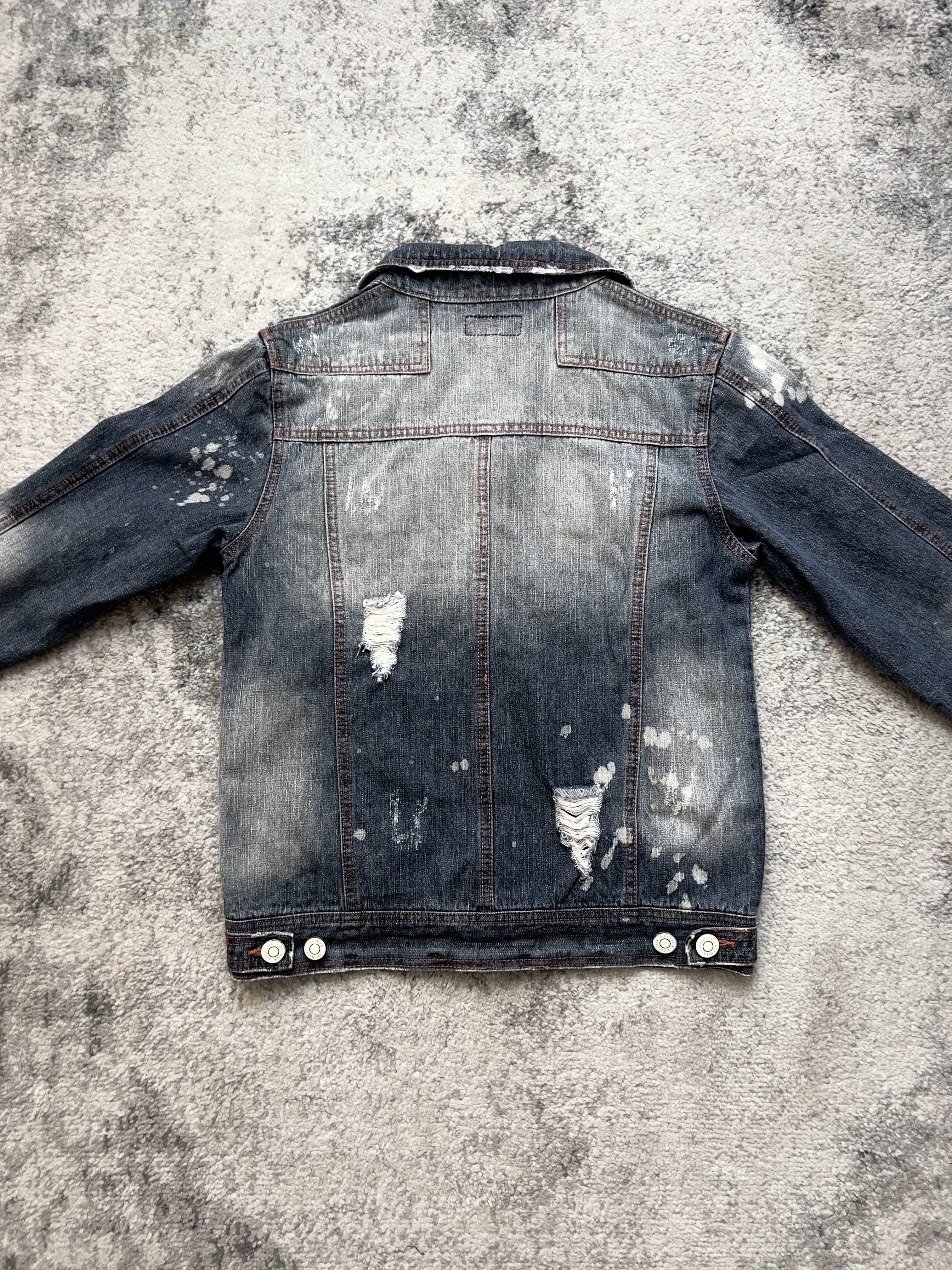 Lowbox Distressed Denim Jacket – raw edge rebellion in faded indigo.