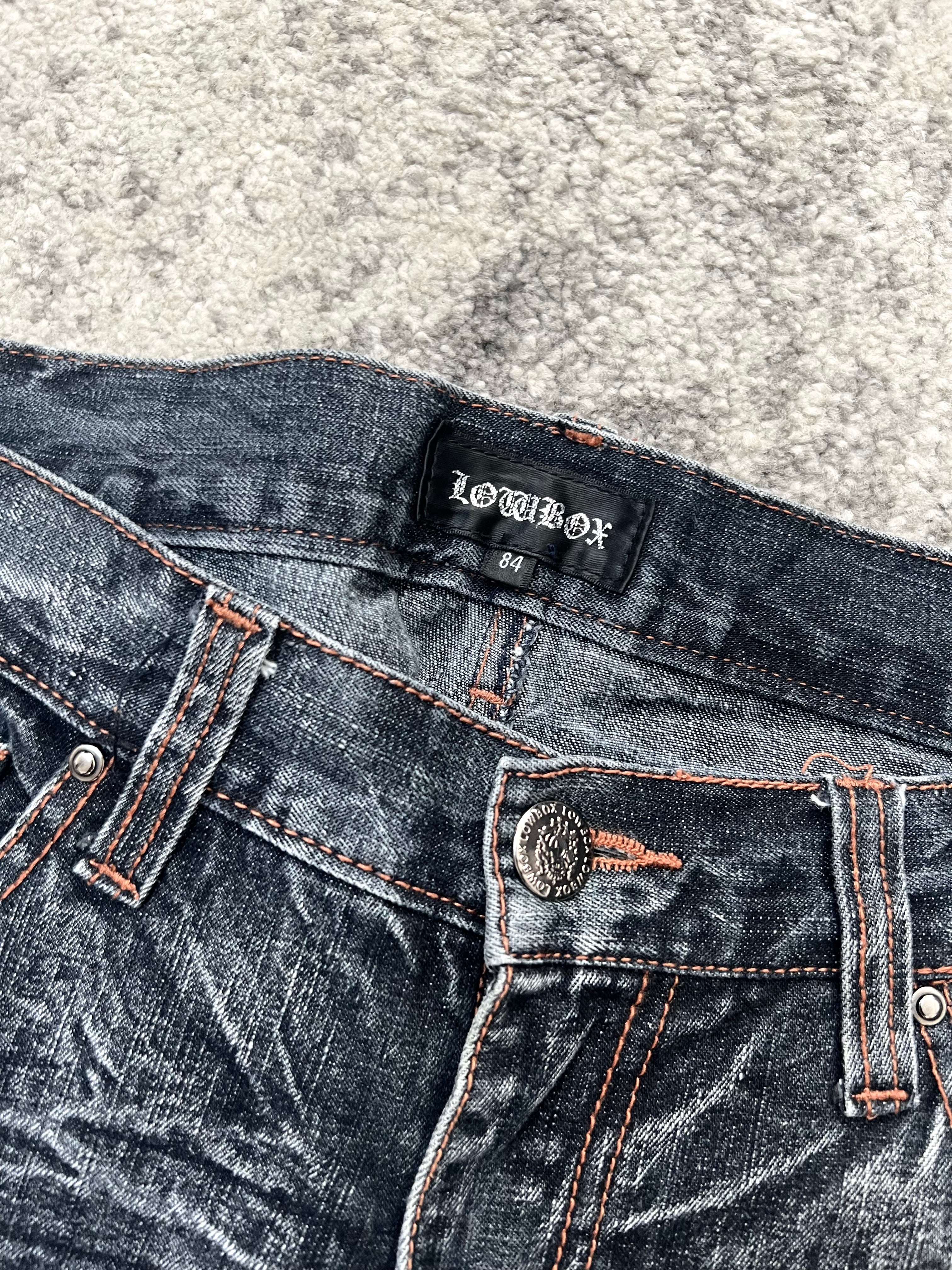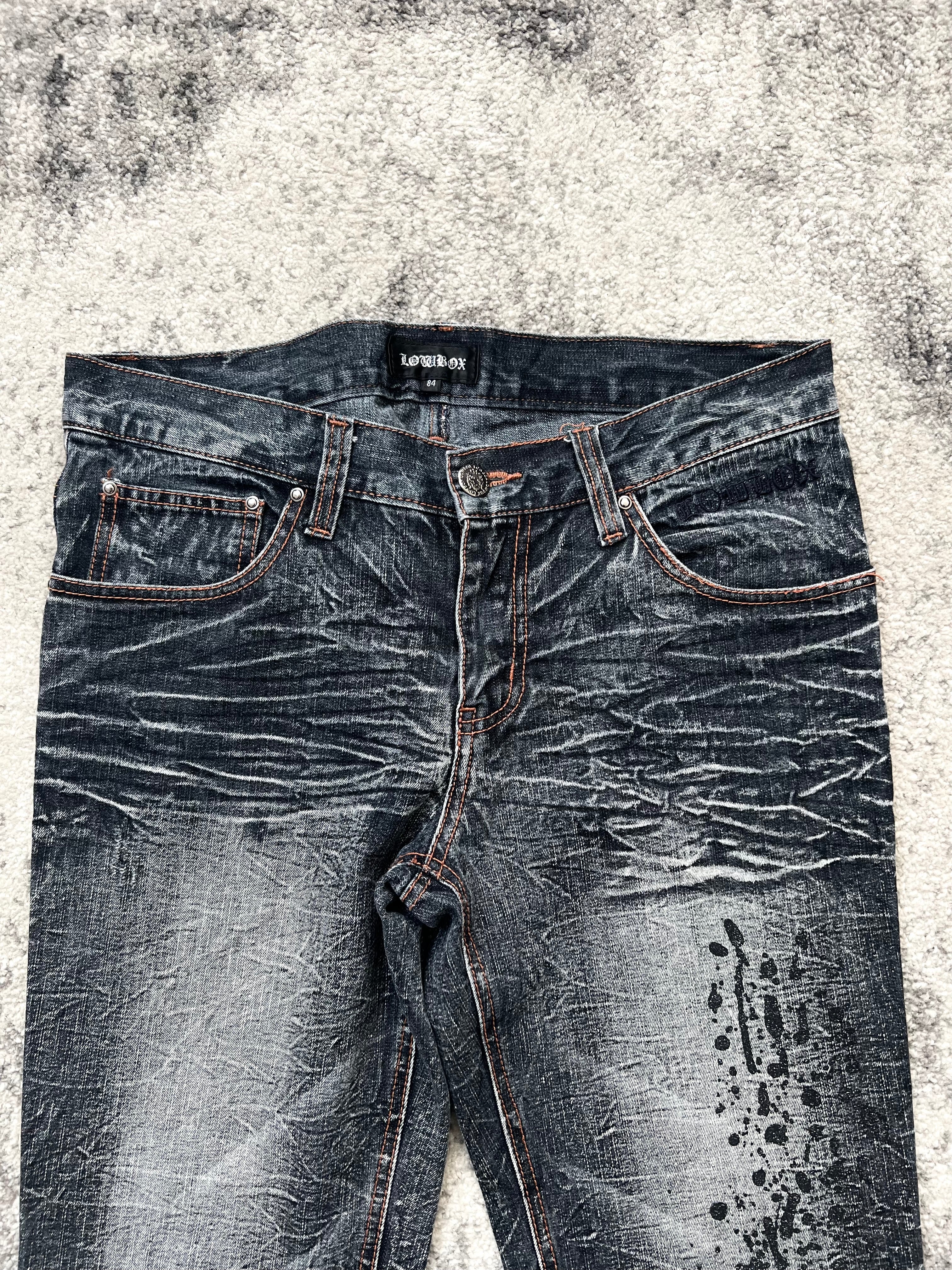 LOWBOX FLARE SPLATTER DENIM Size : M (fits like SM) Condition : 9/10 (might have some signs of usage) Measurements... Read more