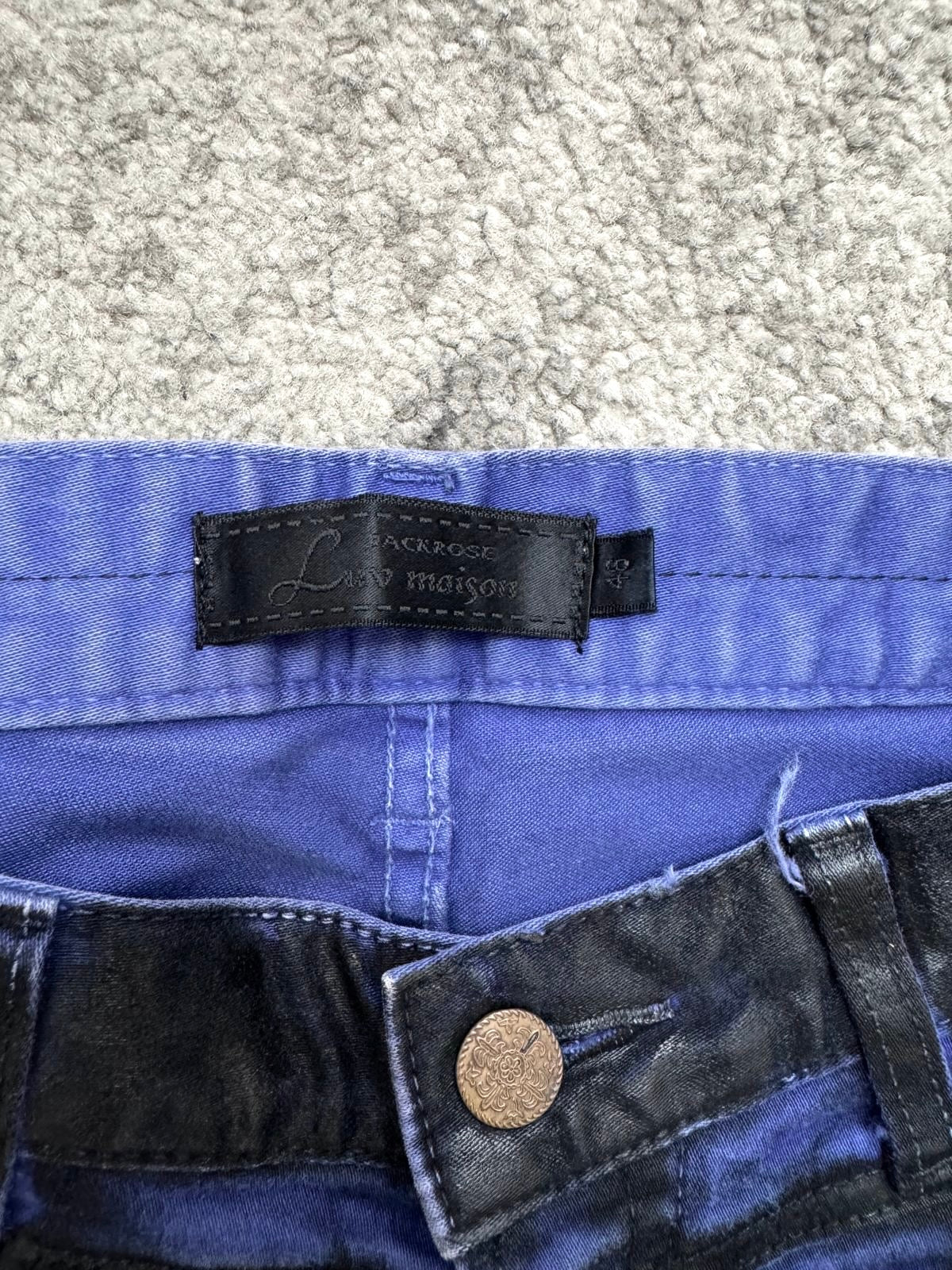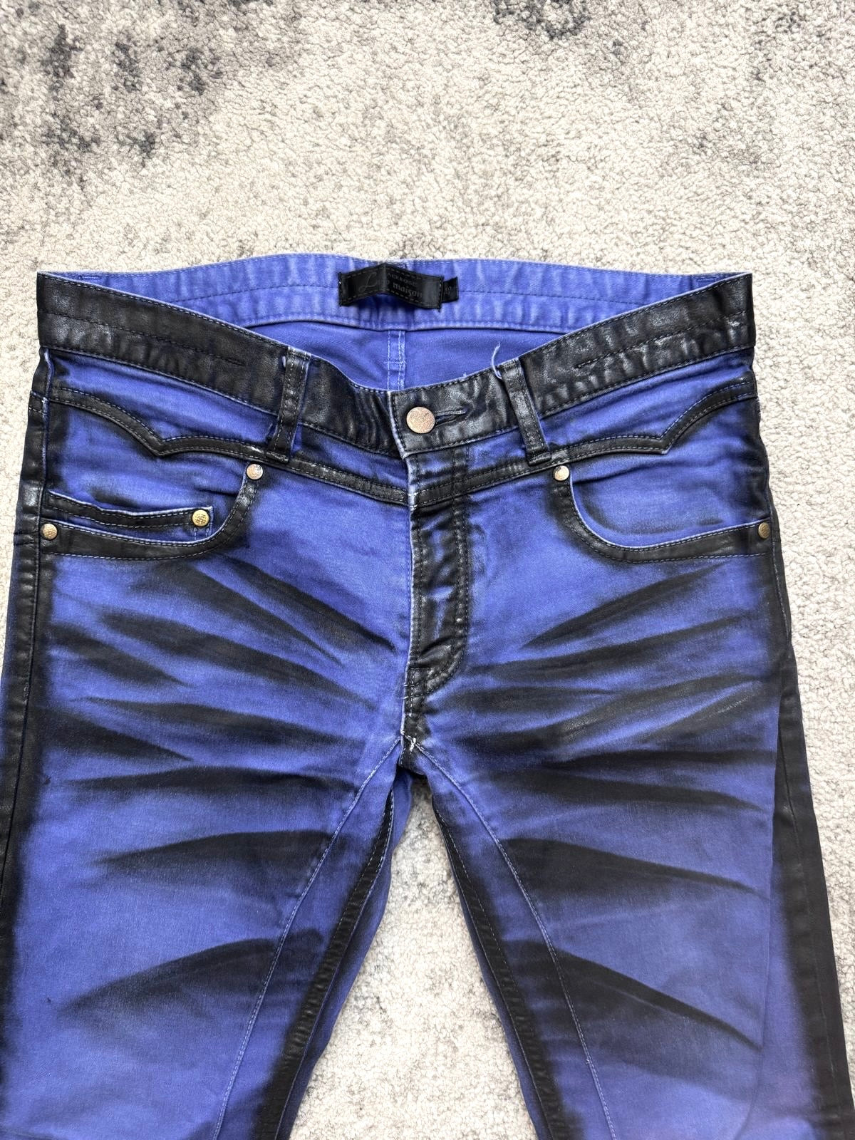 High-voltage indigo, cut through with blackened lightning fades — this is LUVMAISON’s night-creature denim. Slick, sharp, and unapologetically artificial in its beauty. Built for scenes lit by strobes, not sunlight.
