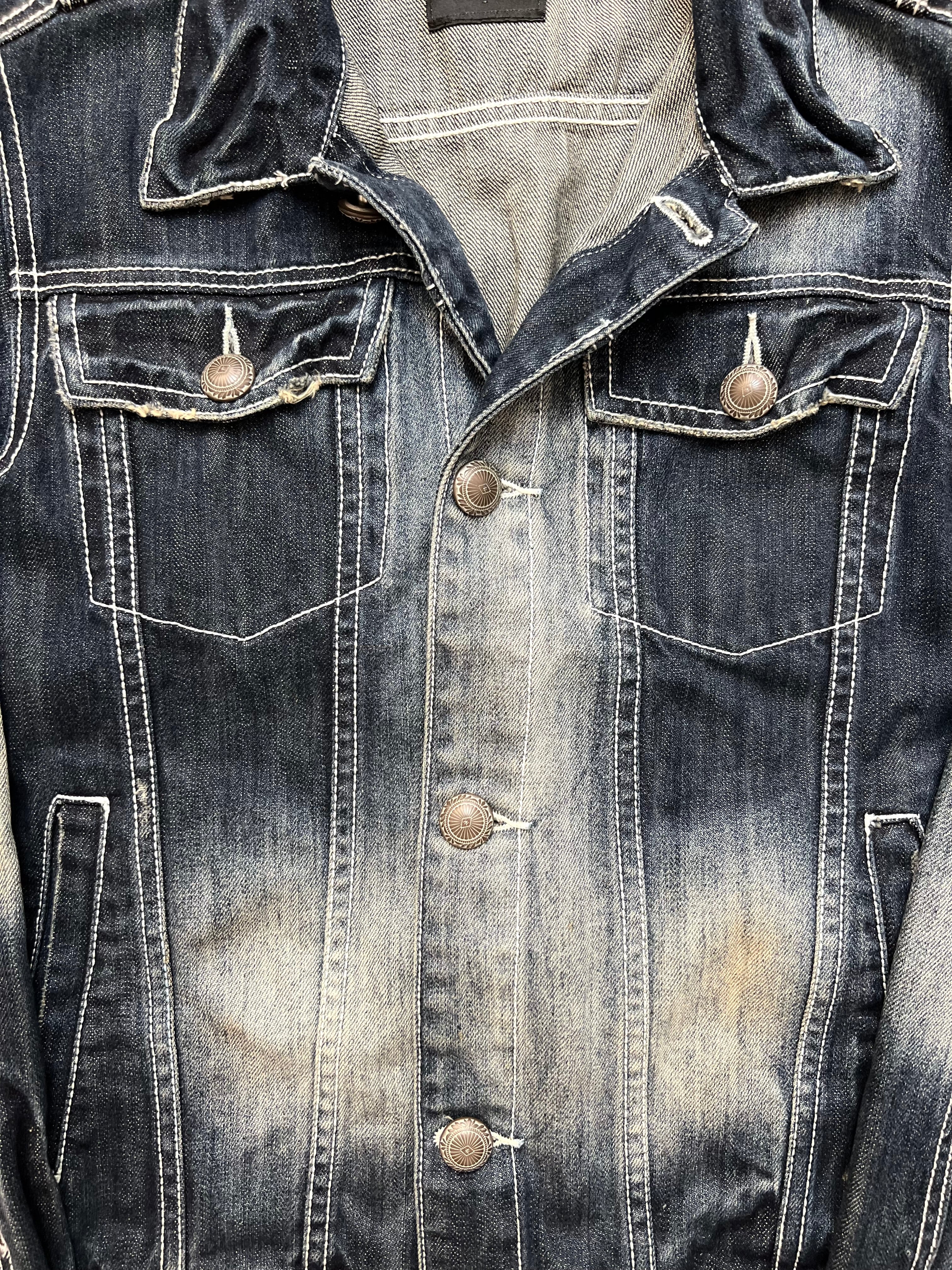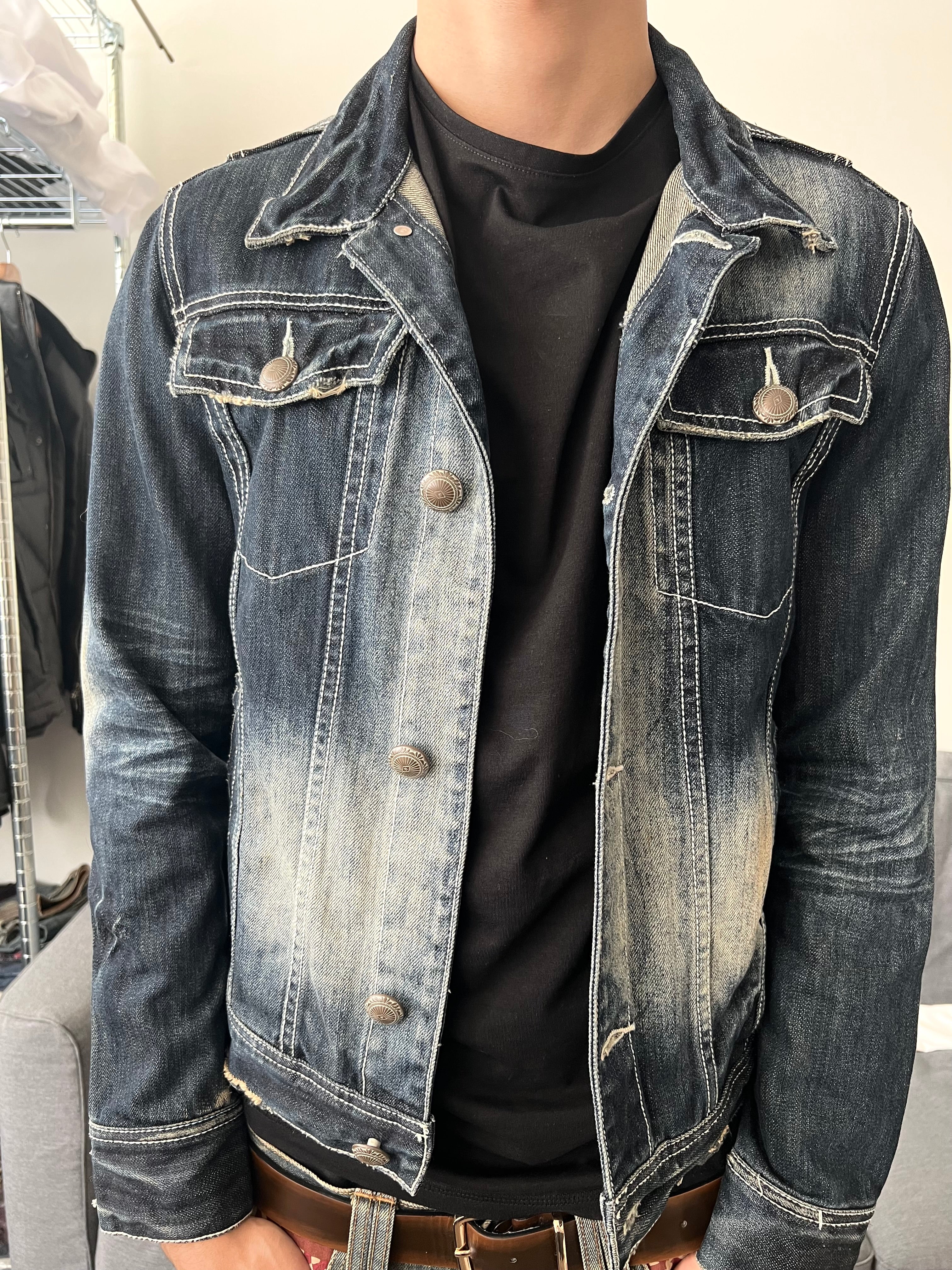 Classic Type III vibes, but twisted. The distressing isn’t for show – it’s lived-in. Thick contrast stitching, faded elbows, cropped hem. It’s loud without saying a word.