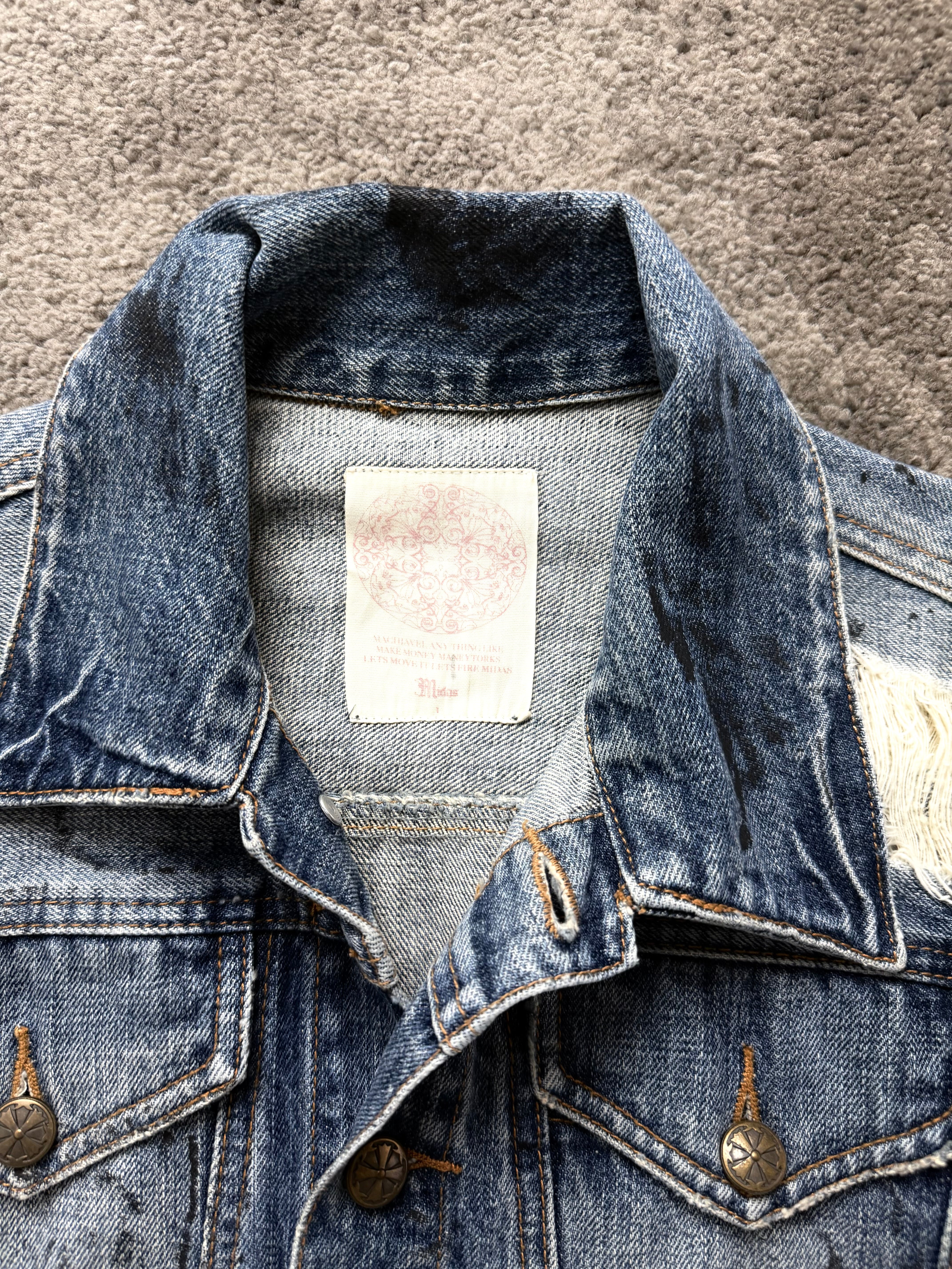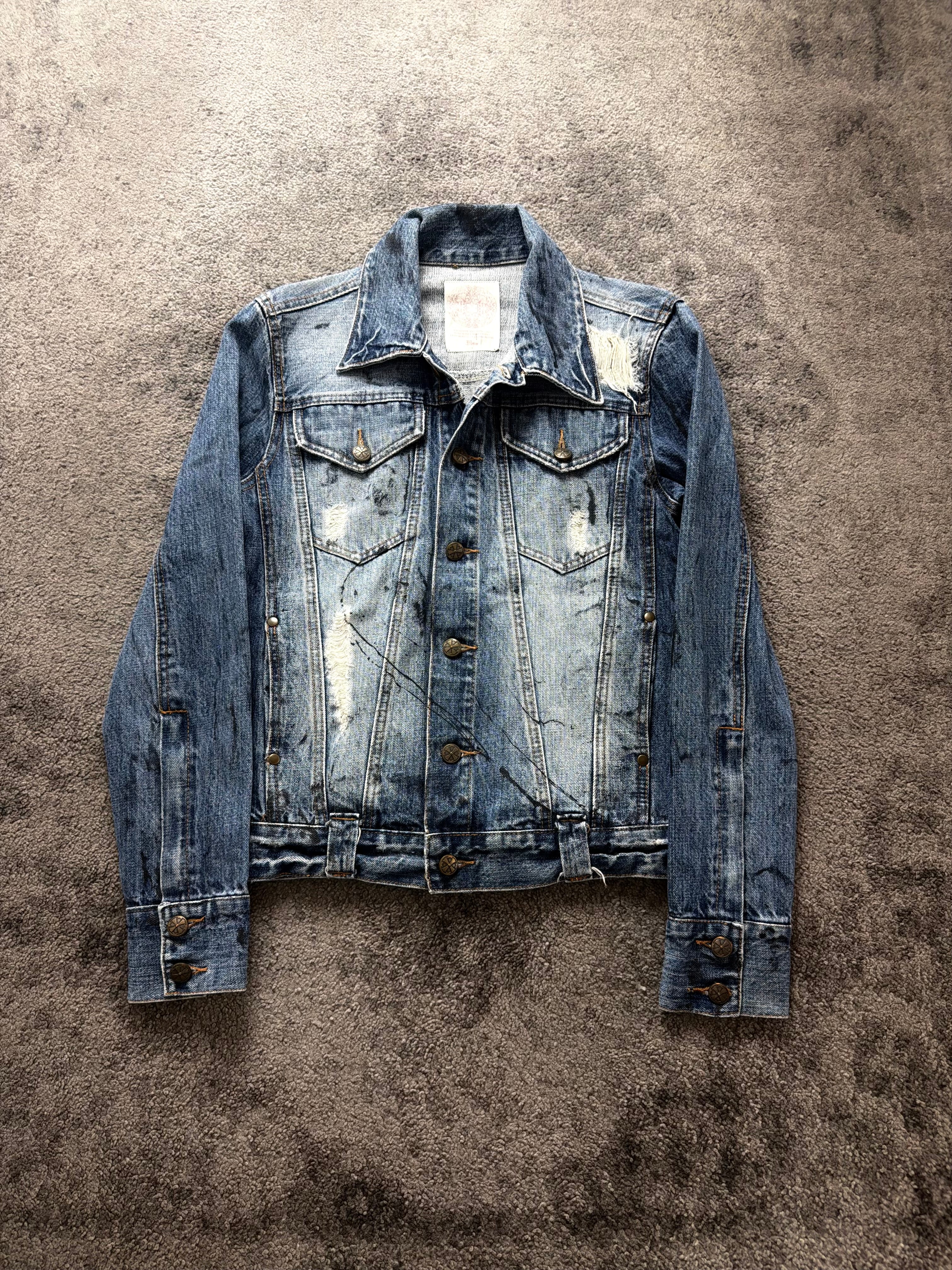This MIDAS denim jacket channels that early Number Nine / ifsixwasnine / Japanese archive style atmosphere — raw texture, emotional wash, and sharp proportions.