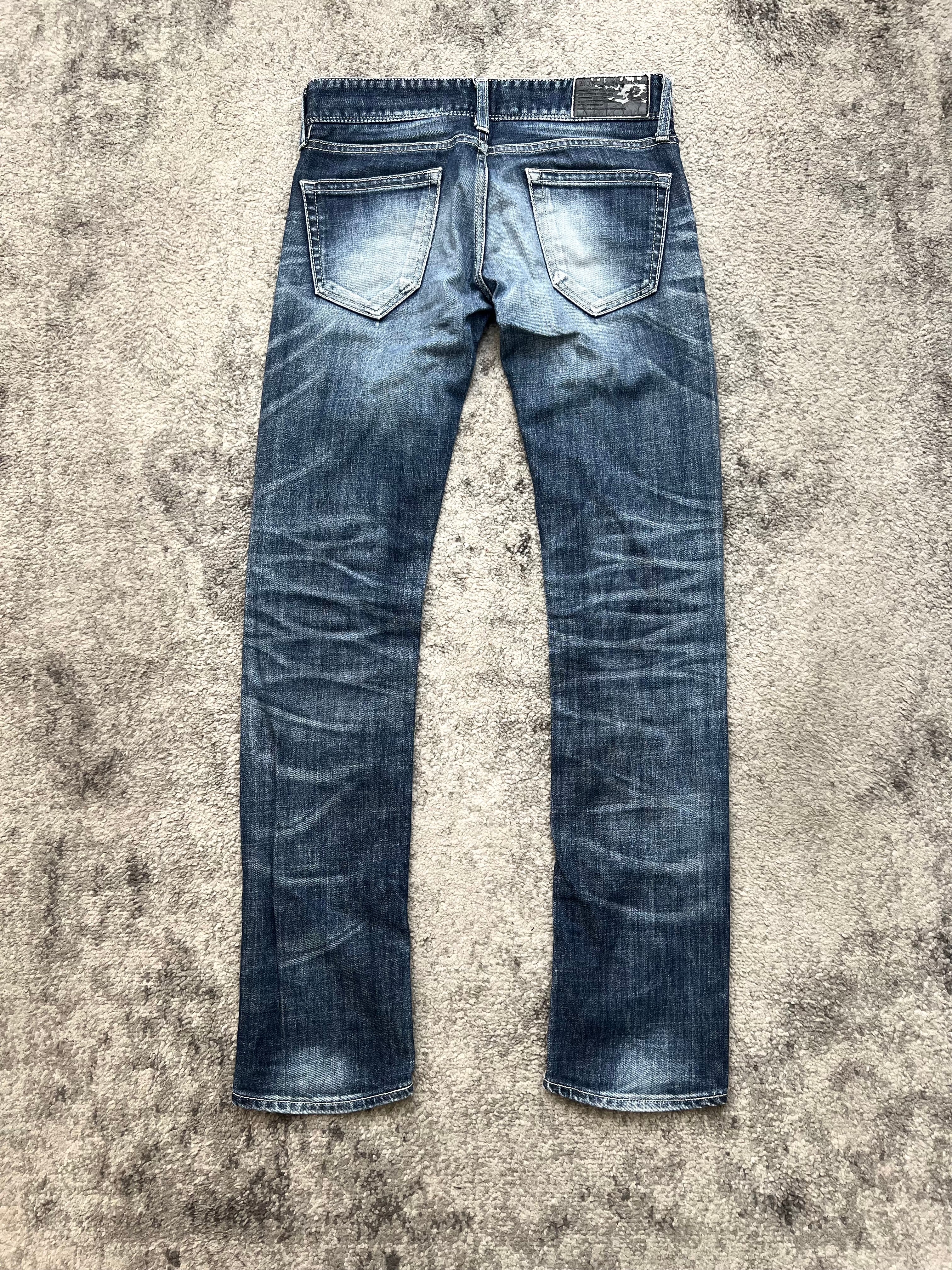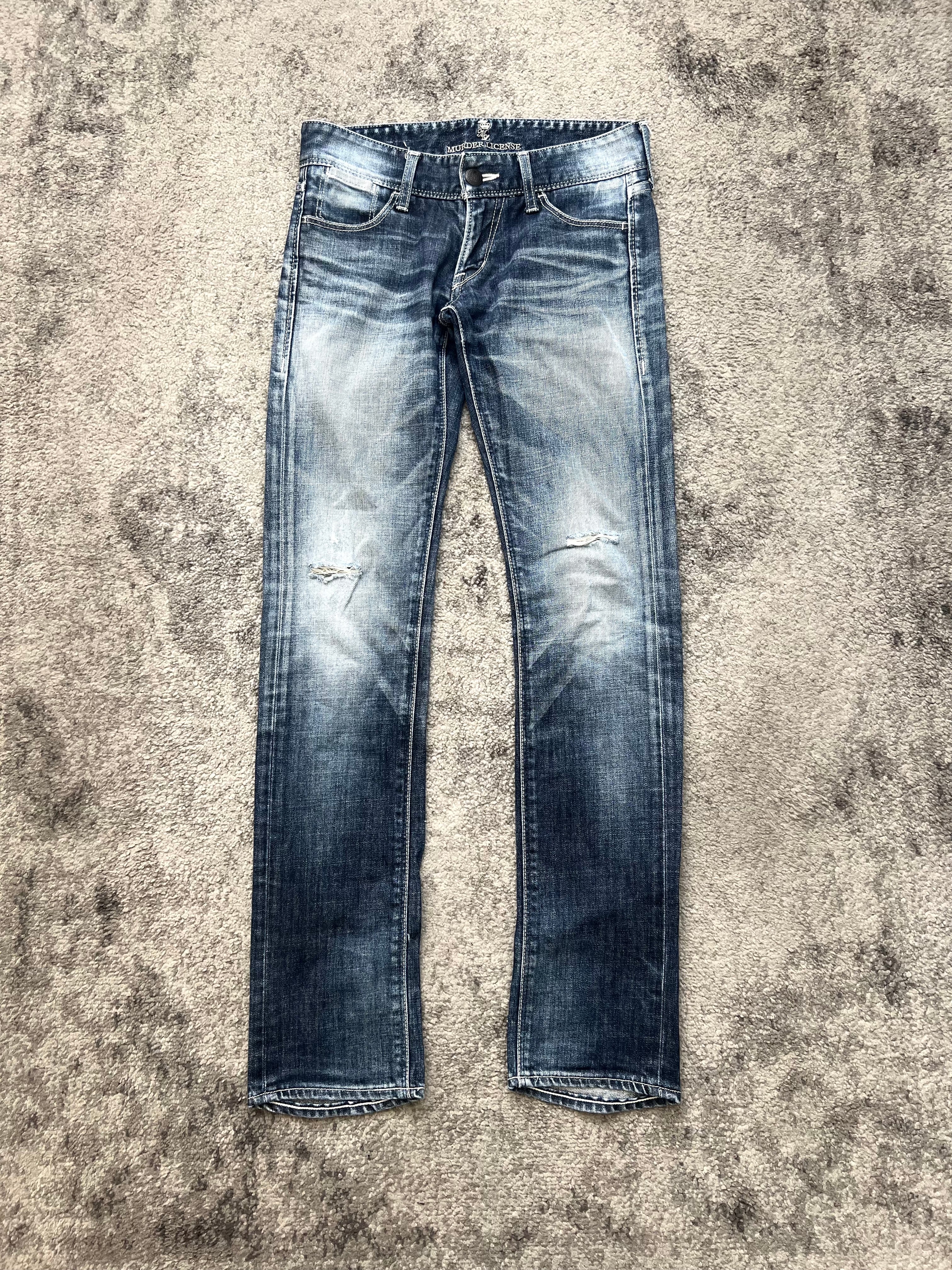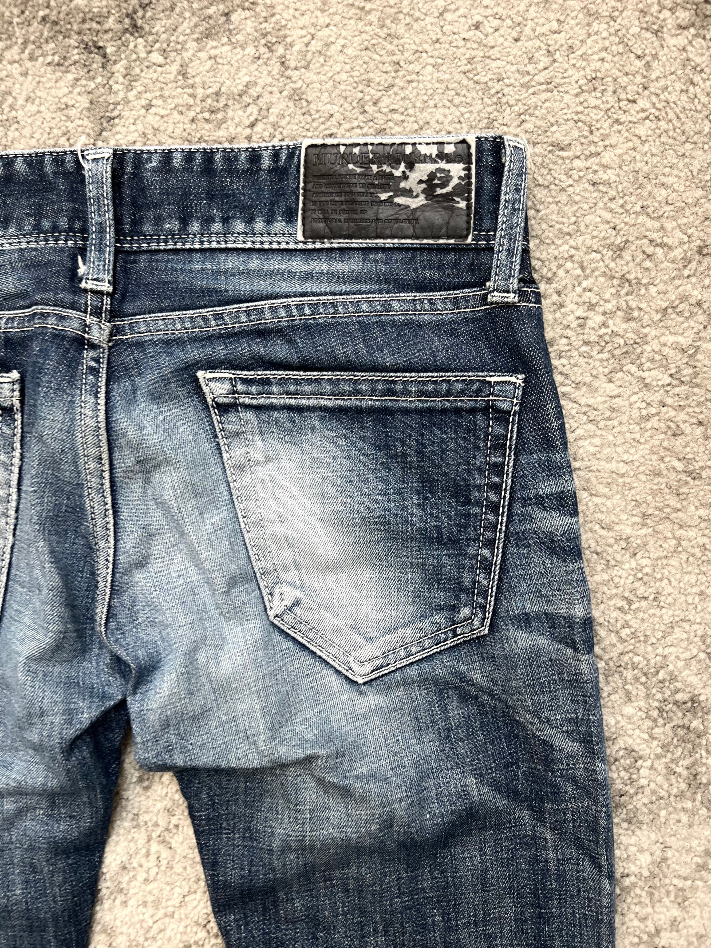 Condition: Pre-loved with natural fading, whiskering, and light distressing. Broken-in softness with a solid backbone.