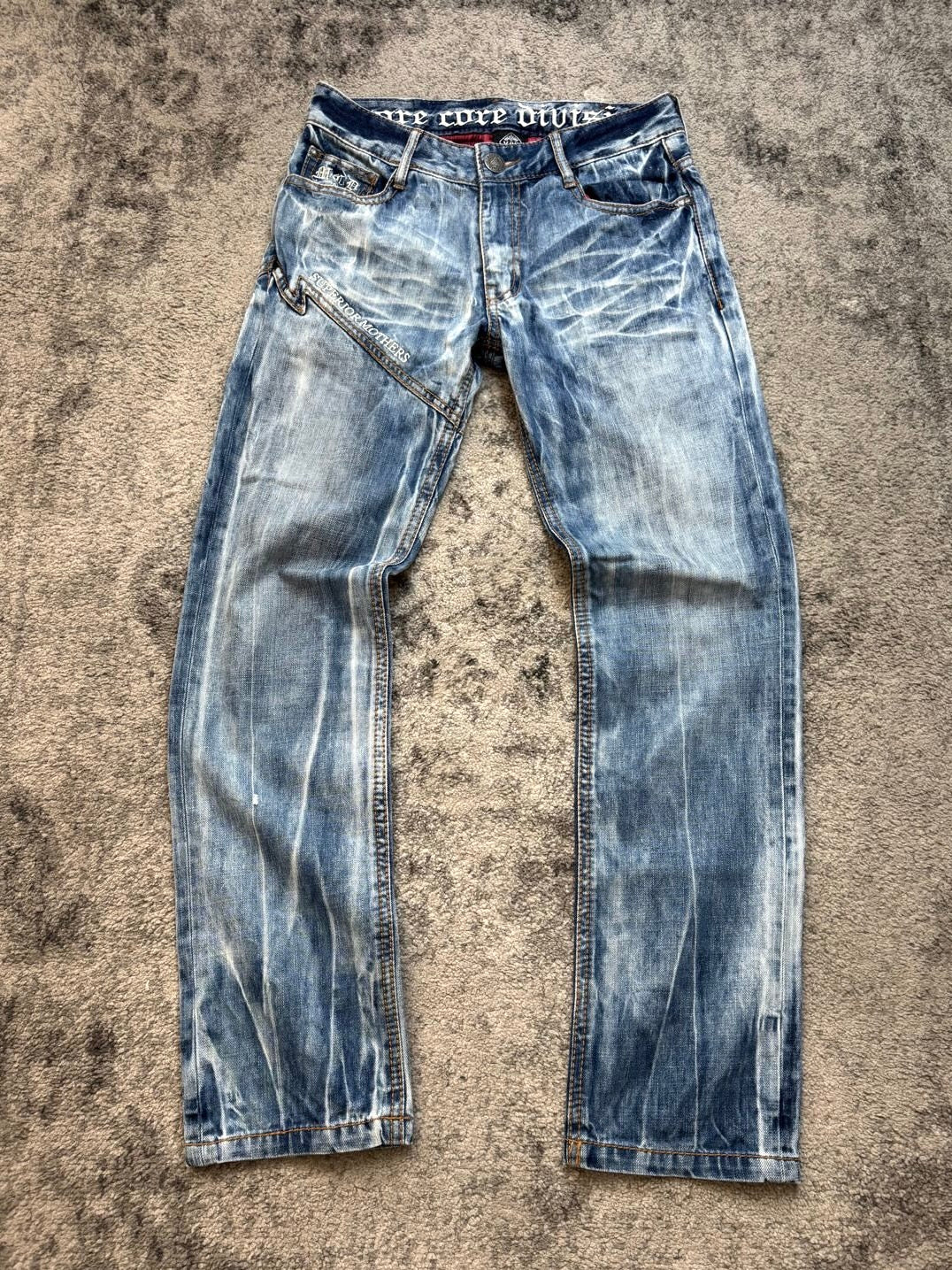 Pre-owned with heavy vintage fading, whiskers, and creases throughout. Strong structure, seams clean, hems intact. Softened by wear but still built to last.