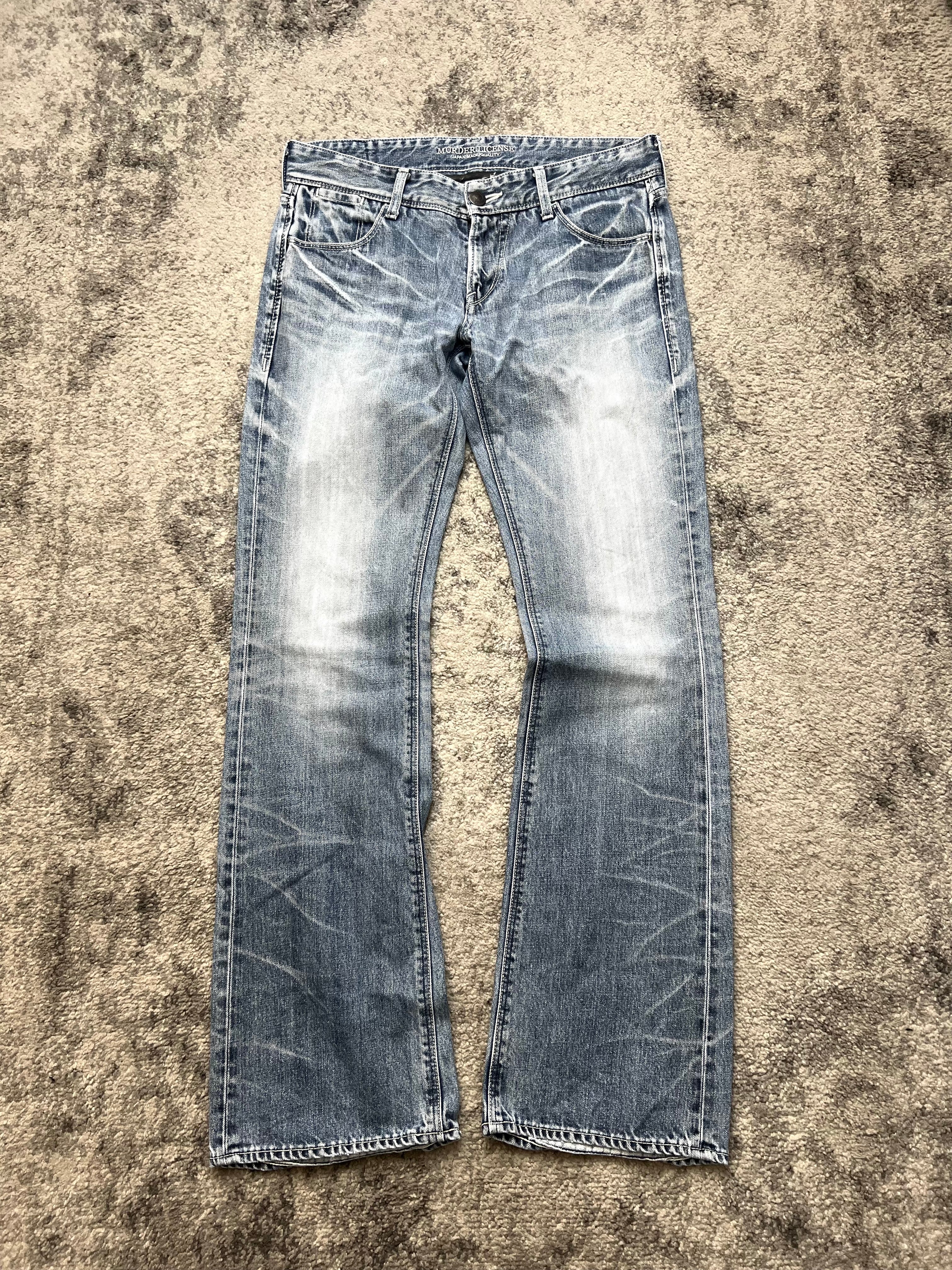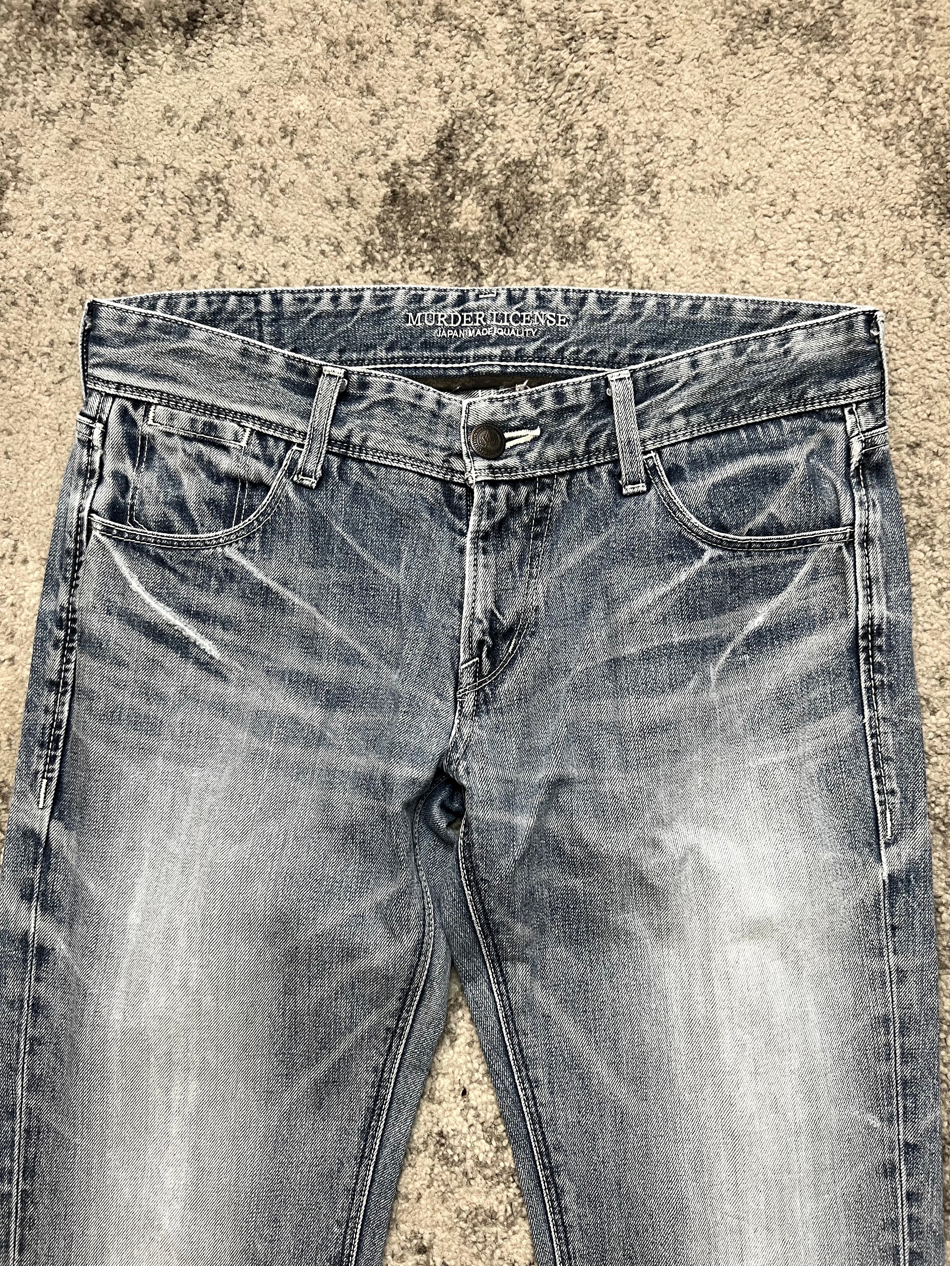 A lucid wave from the Japanese underground—this pair by MURDER LICENSE channels Harajuku minimalism through ghosted-out fades and razor-clean lines. A denim built for shadows and light. Pure archive energy.