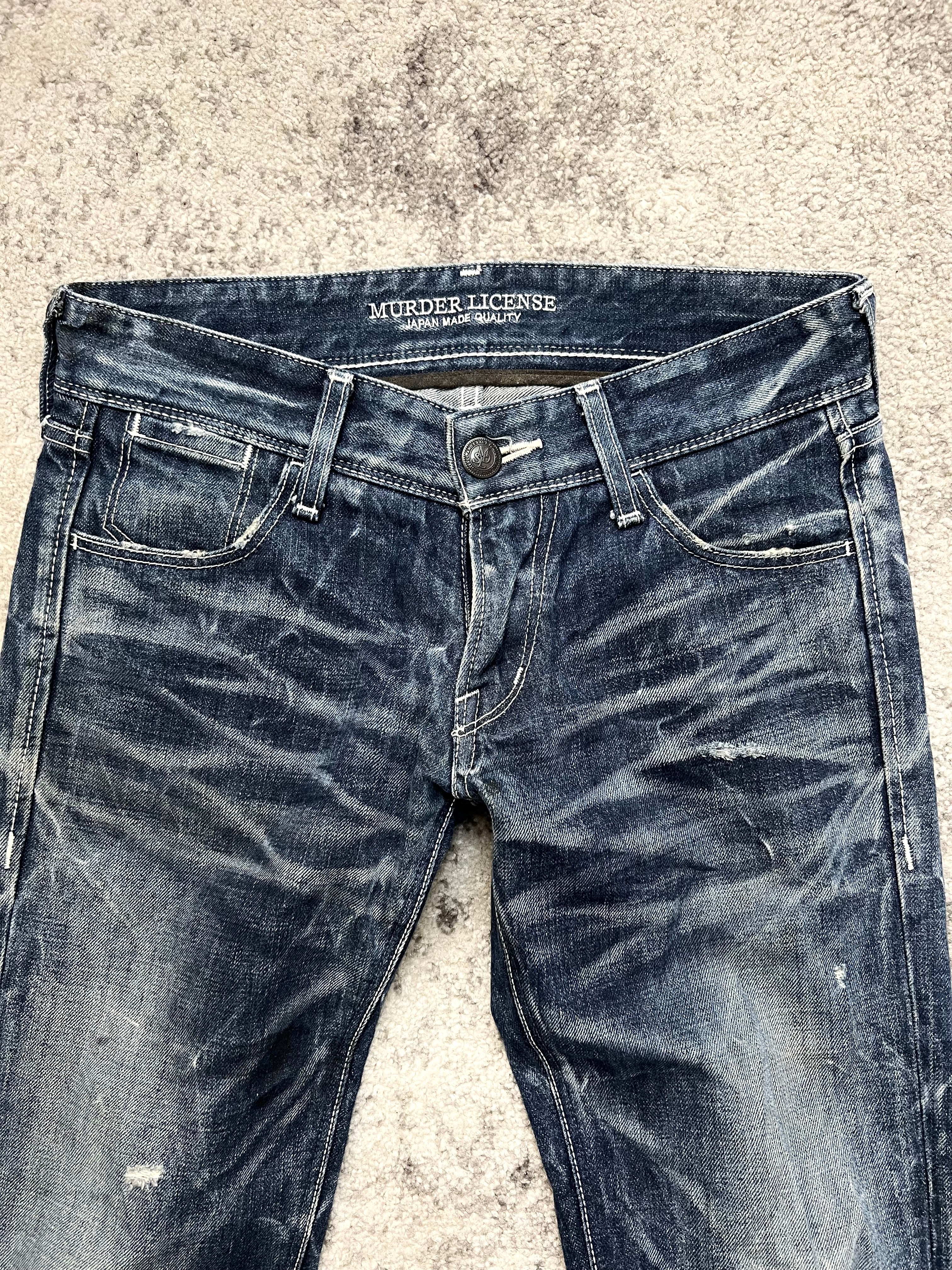 Straight outta Japan’s darker archive – this Murder License piece isn’t made to fit trends. It fits your story. Twisted whiskers, deep indigo, ghostlike creases – a denim that’s been places.