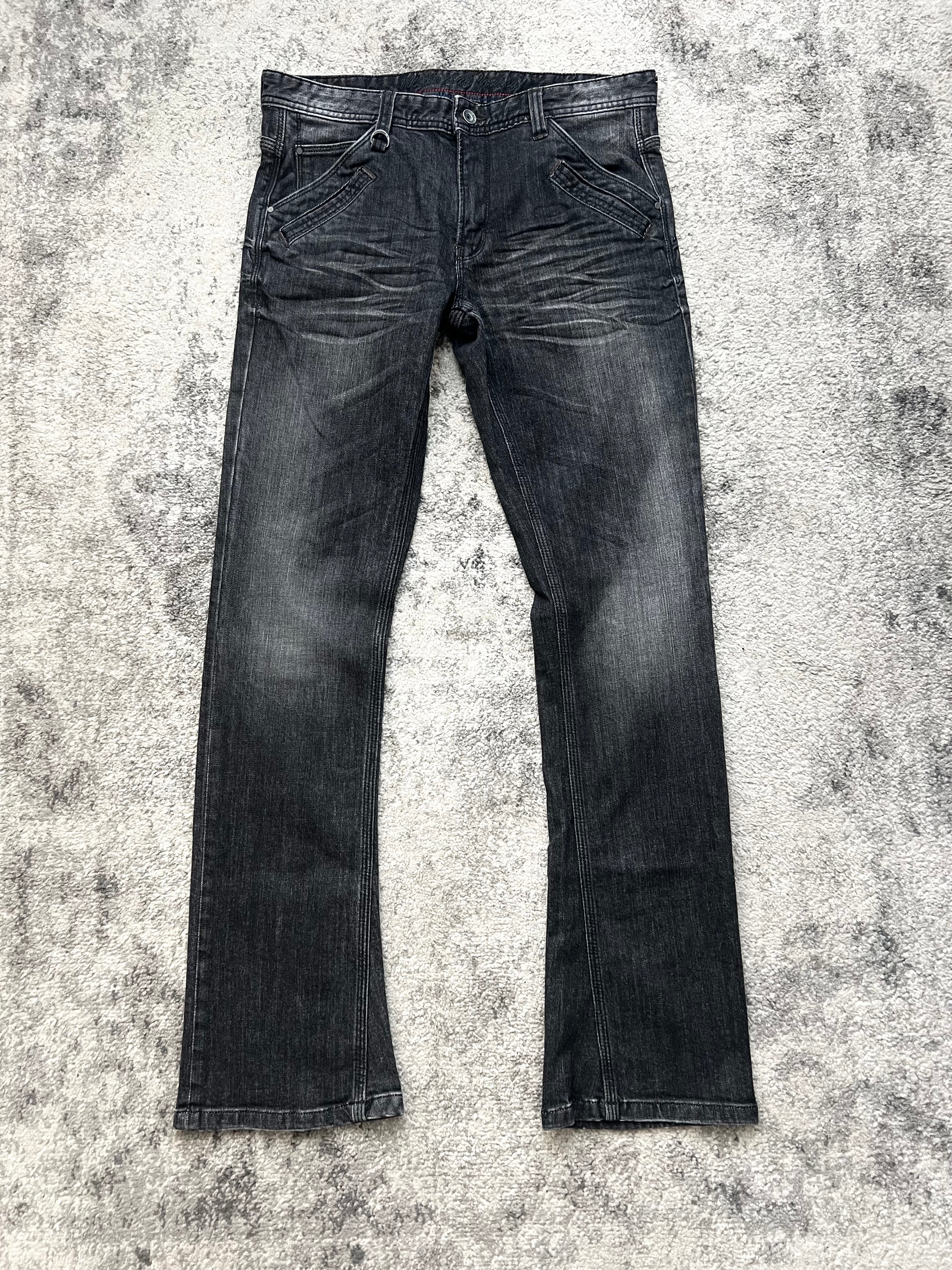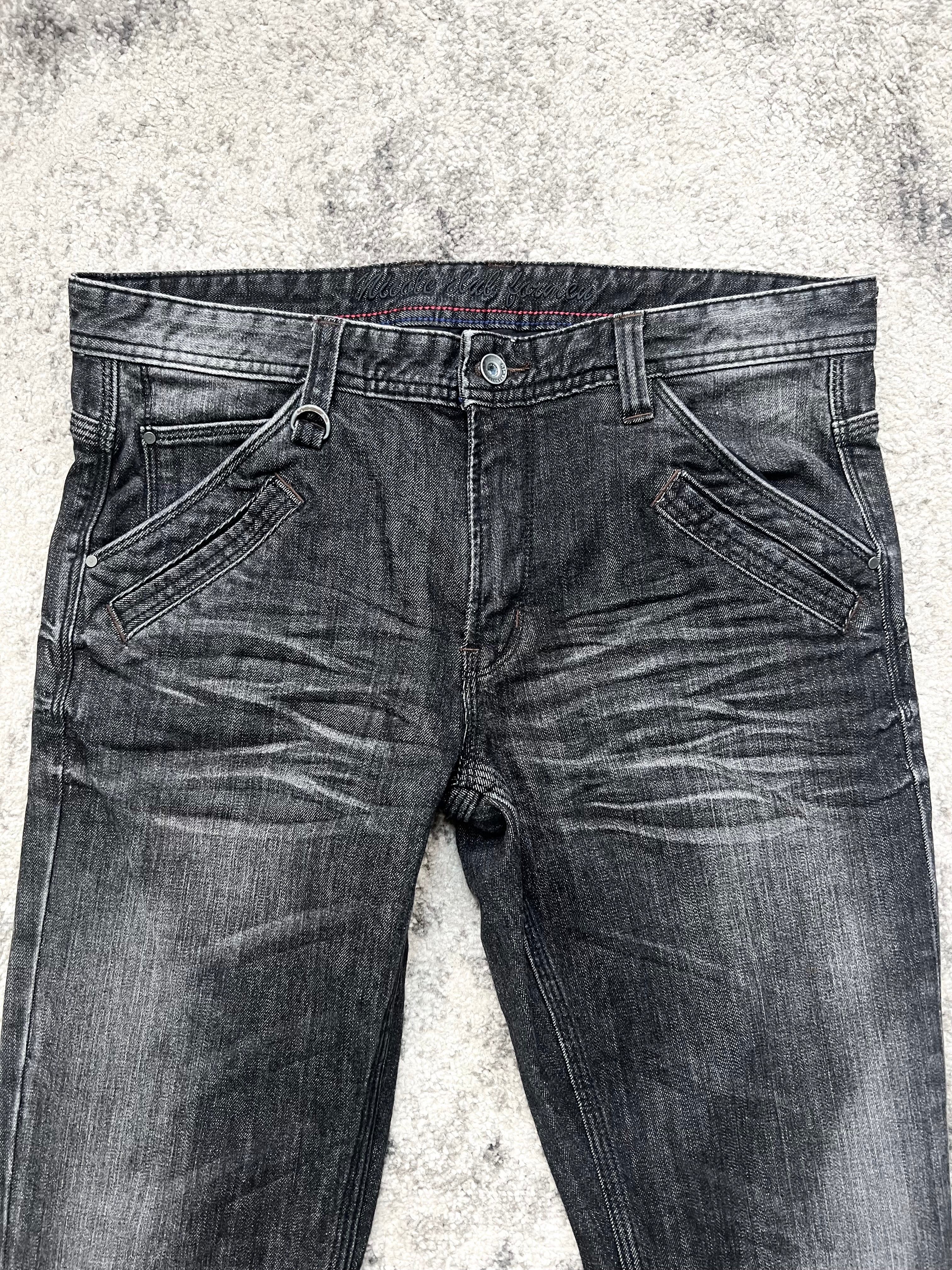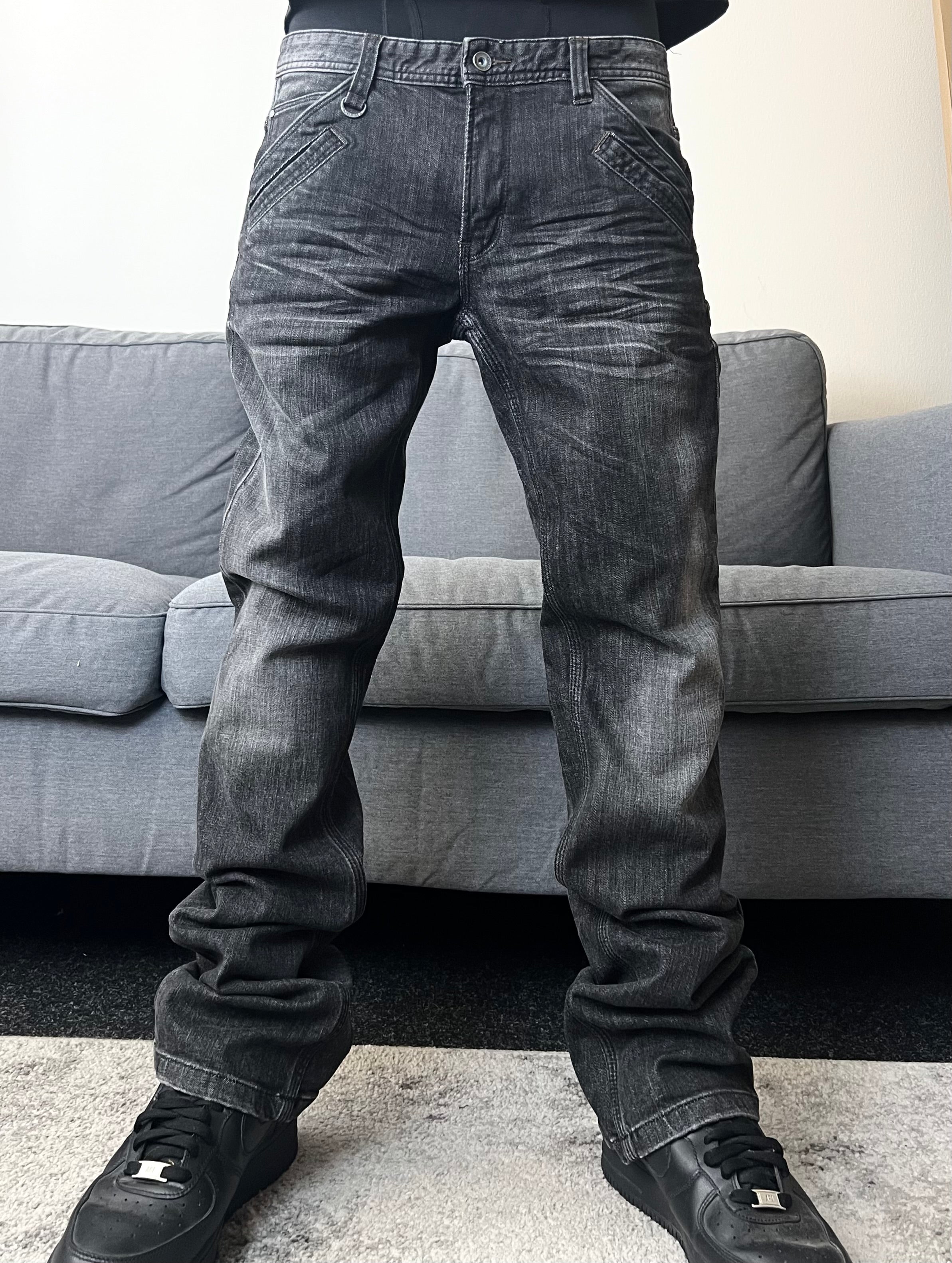 Slight bootcut opening, engineered stacking, and angled front pockets for a look that feels tactical but lived-in. Pair it with vintage graphic tees, worn-in leather, or let the denim speak solo.