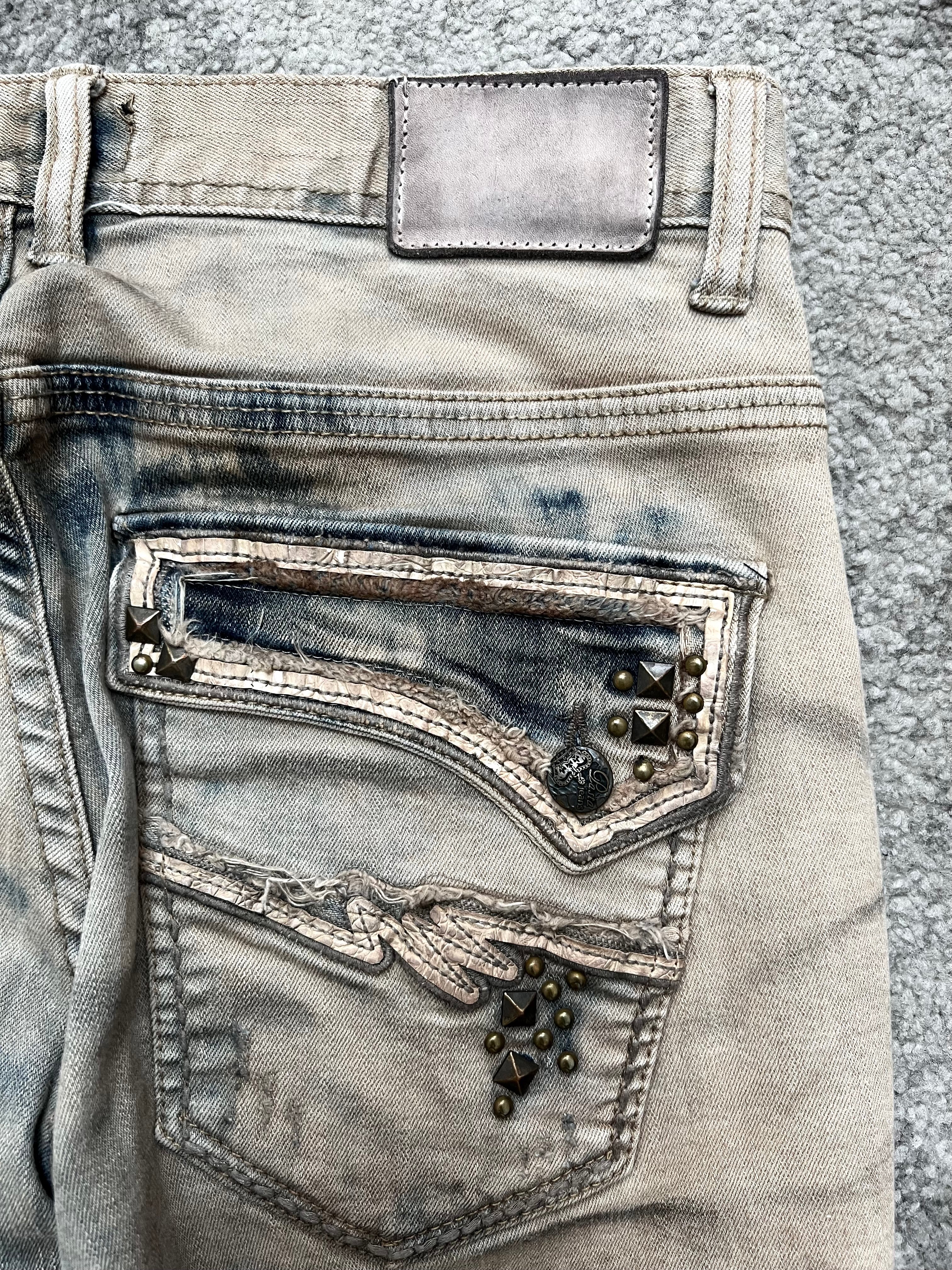 Studded coin pocket and inner fly stitch detail