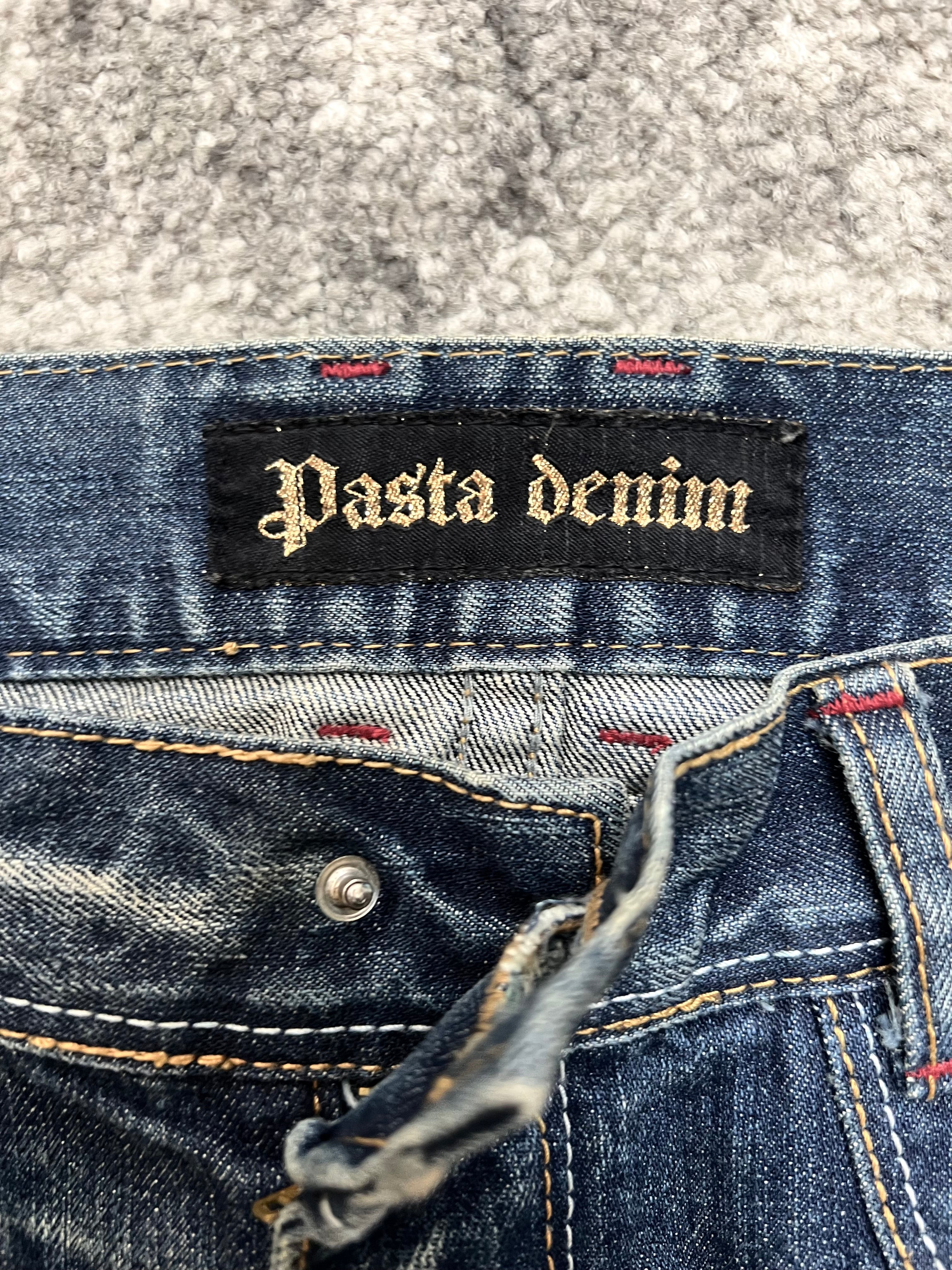 Back pockets with zip details and signature PASTA DENIM branding