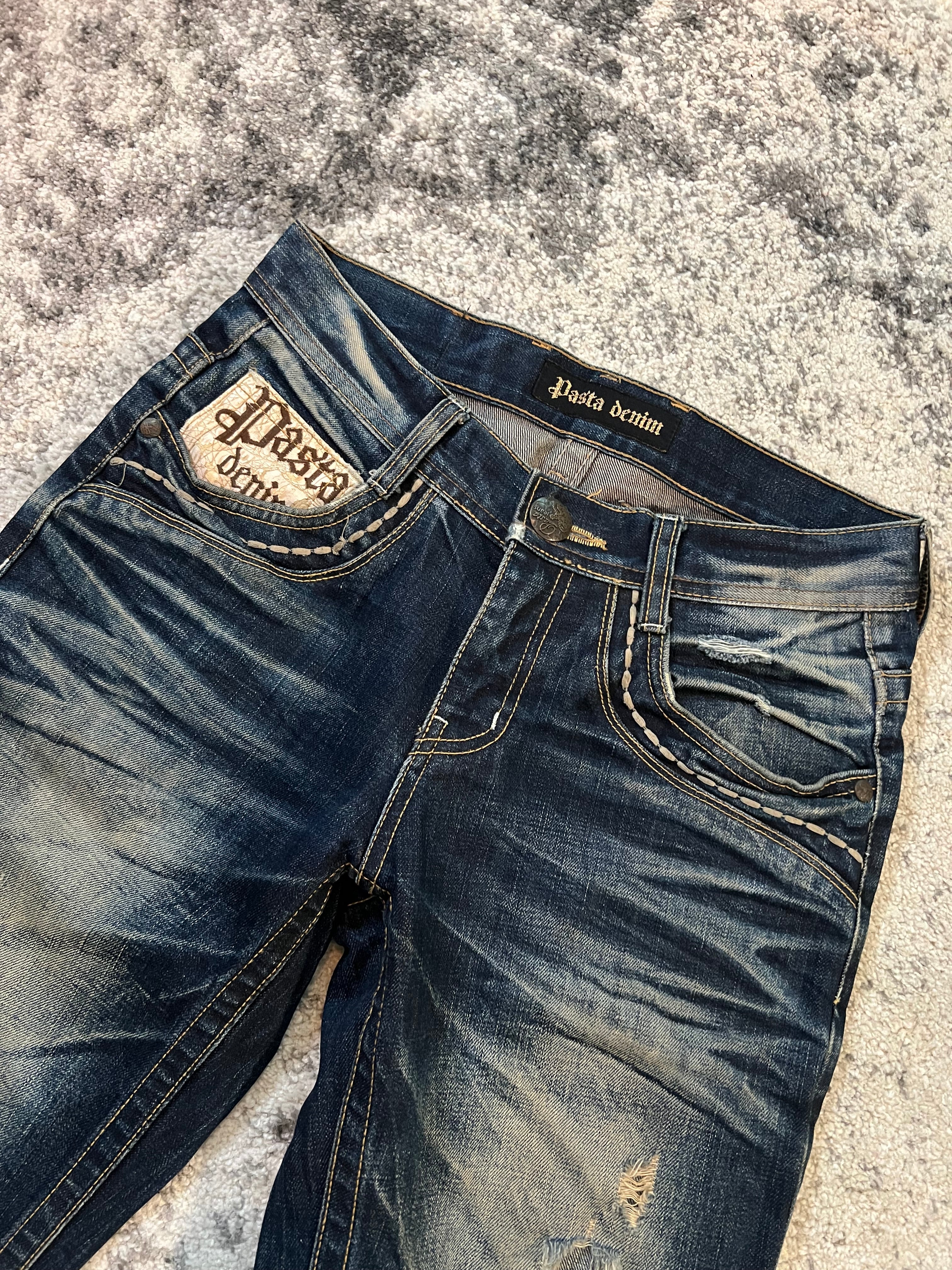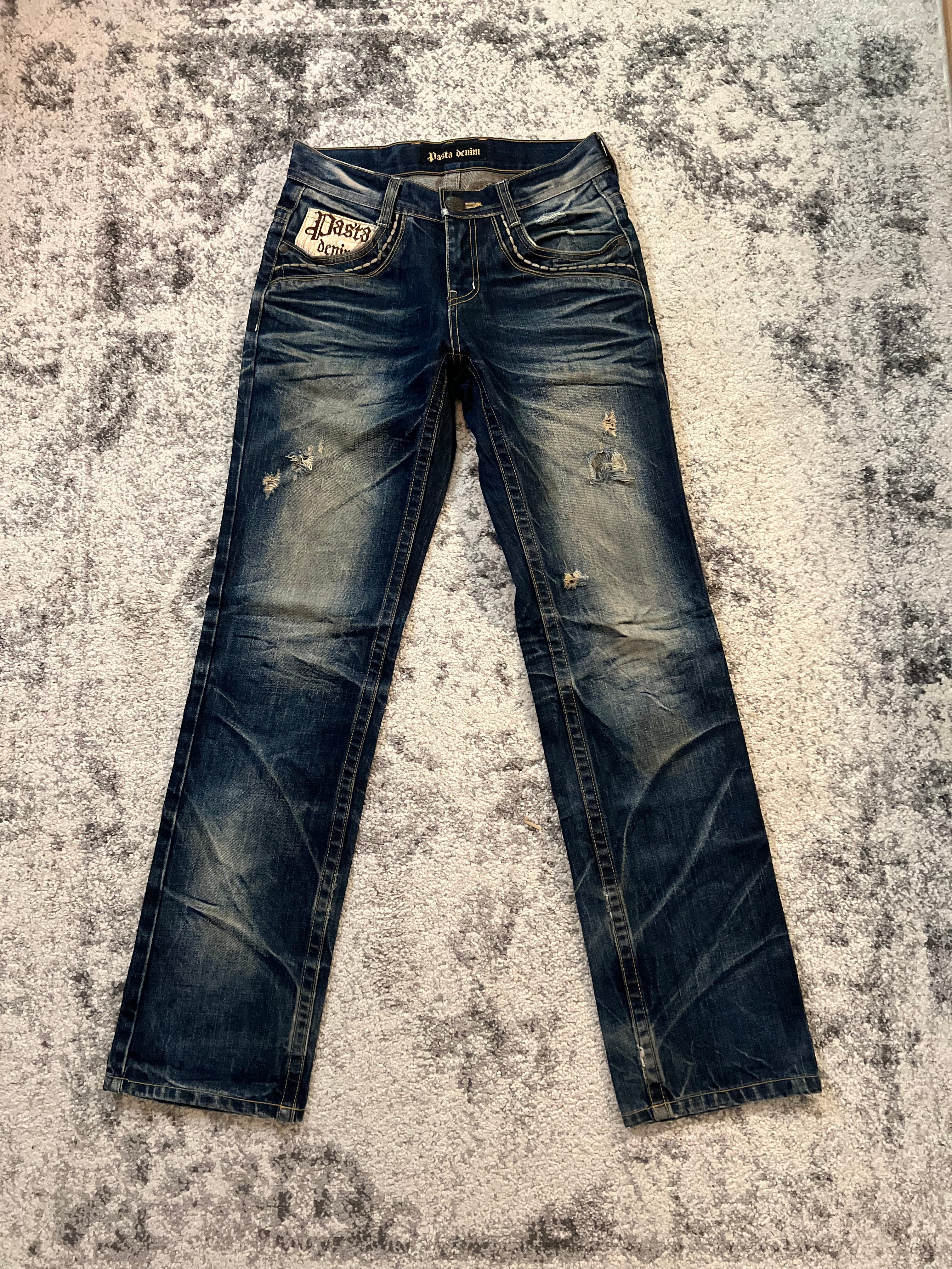 pasta Japanese Denim Size : S/M Condition : 9/10 Measurements : Length 114cm, Waist 39cm, Leg Opening 22cm Read more