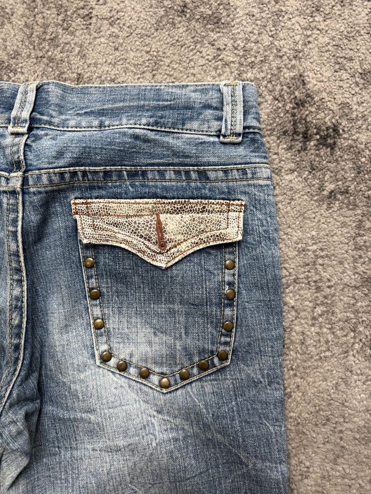 Pre-owned with soul intact. Authentic distressing at thighs and knees. Crease lines and surface fading throughout. Minor fray at hem for lived-in texture.