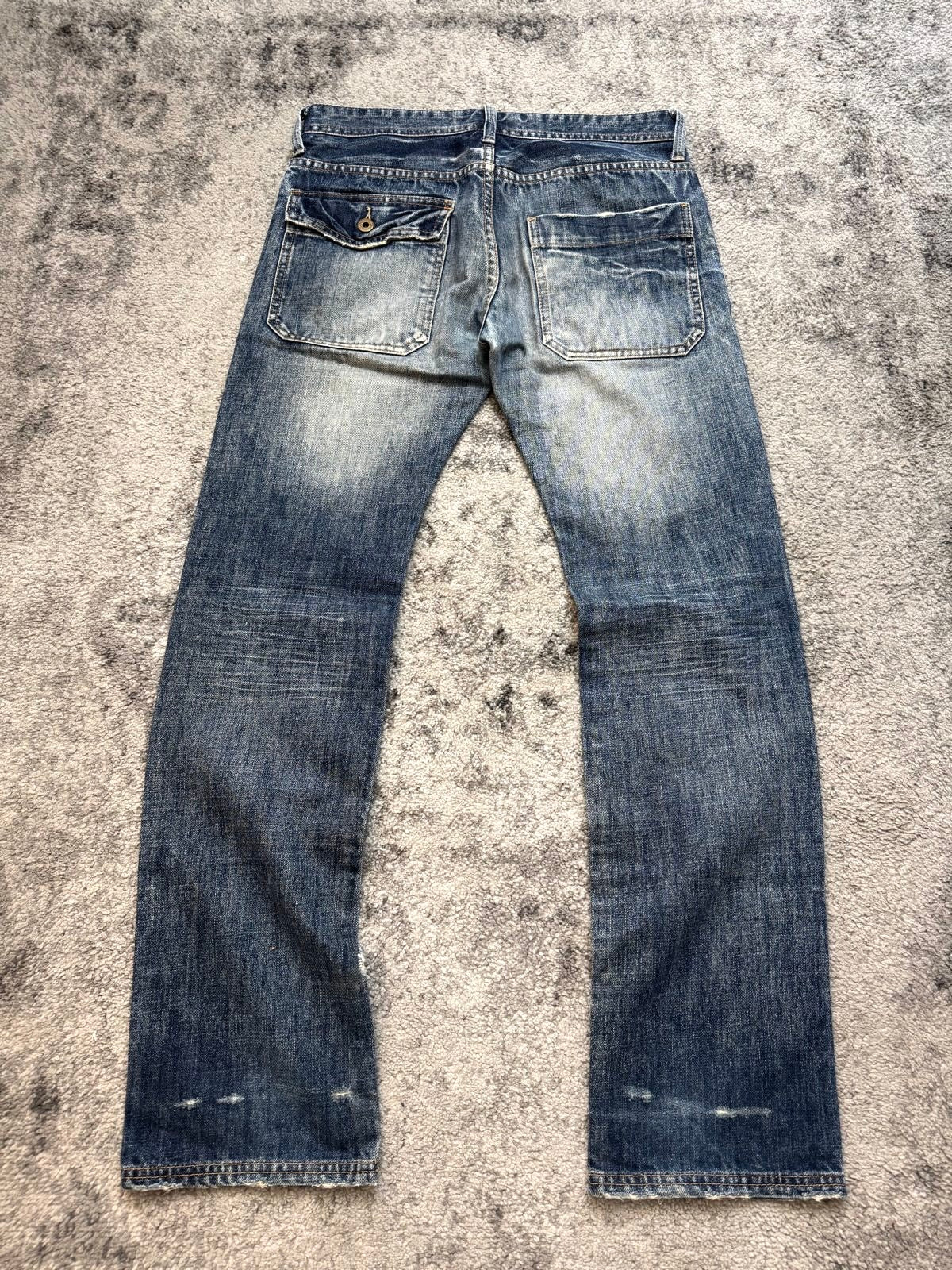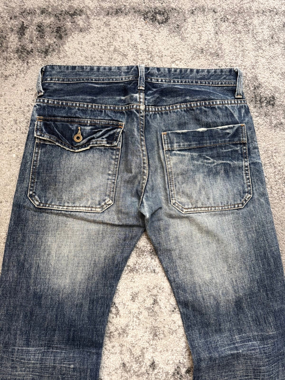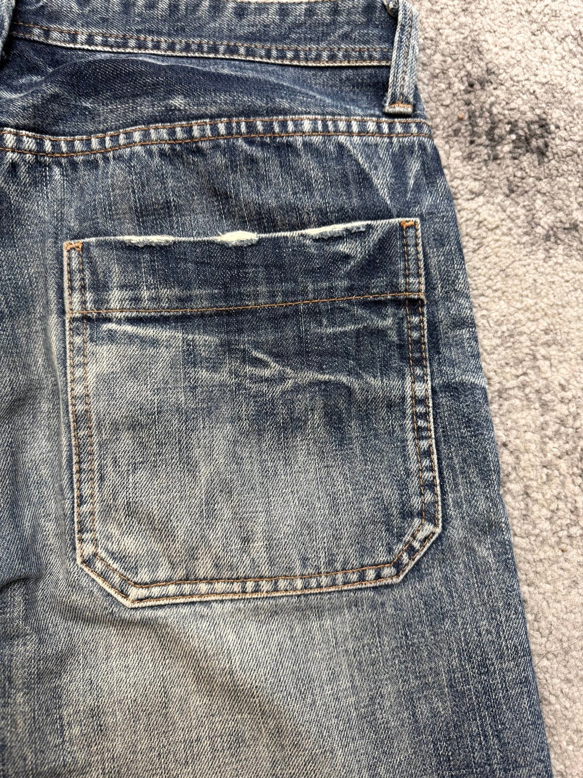 Pre-owned with natural fading, subtle scuffs at hem and knees, intact seams. Softened by time but built to endure.