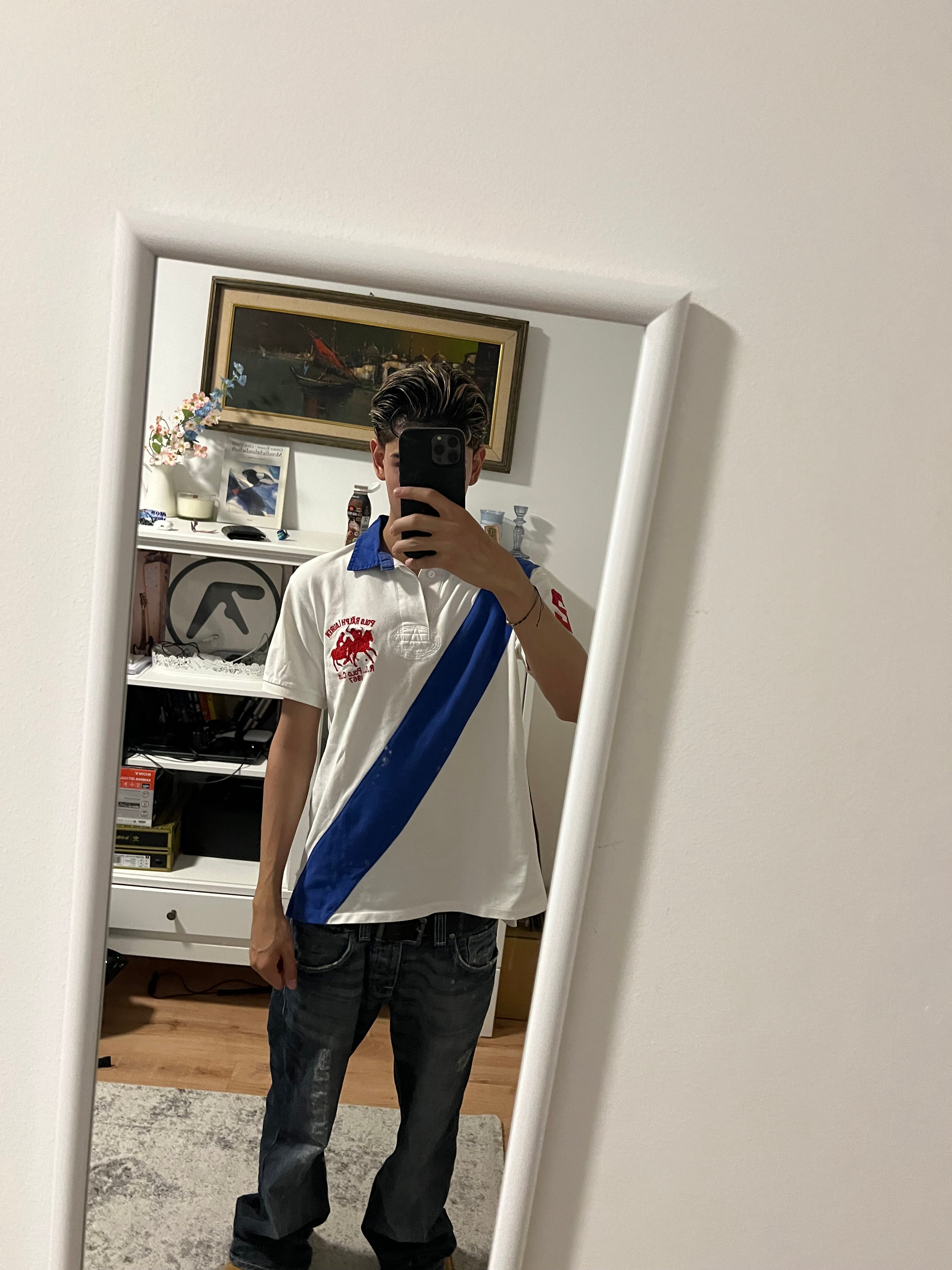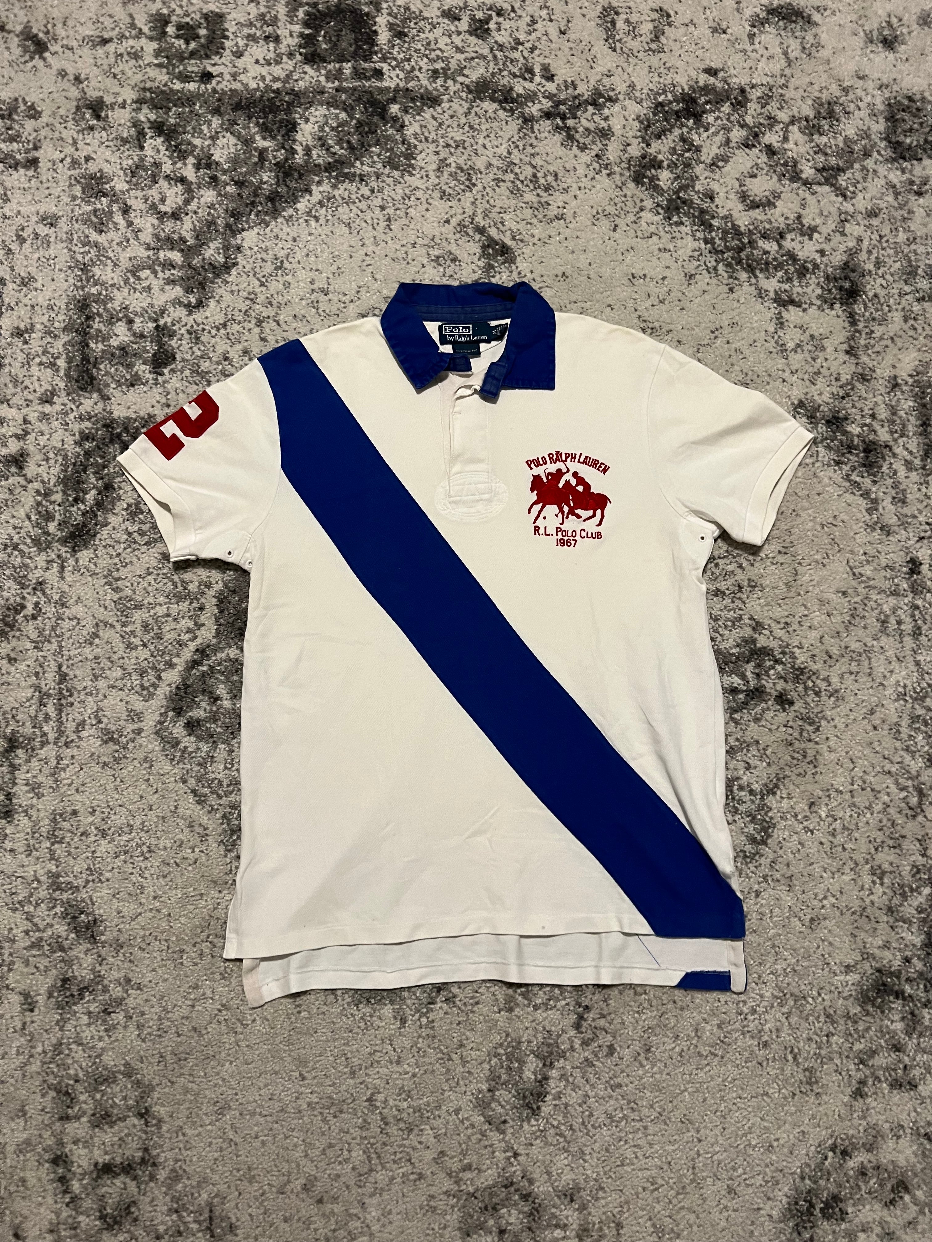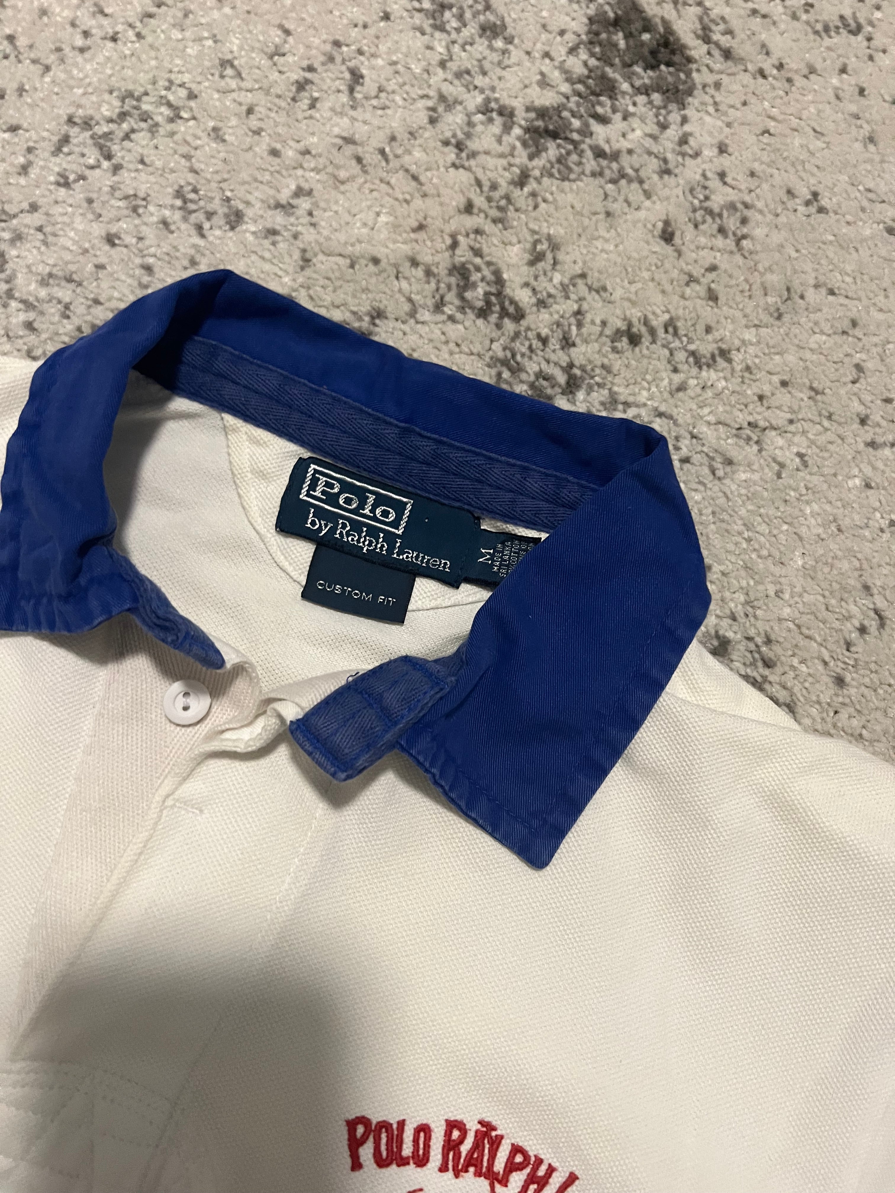 Ralph Lauren Polo Shirt White and Blue Size : M Condition: 9/10 Measurements: Length 75cm, chest 51cm, sleeves 20cm Read more