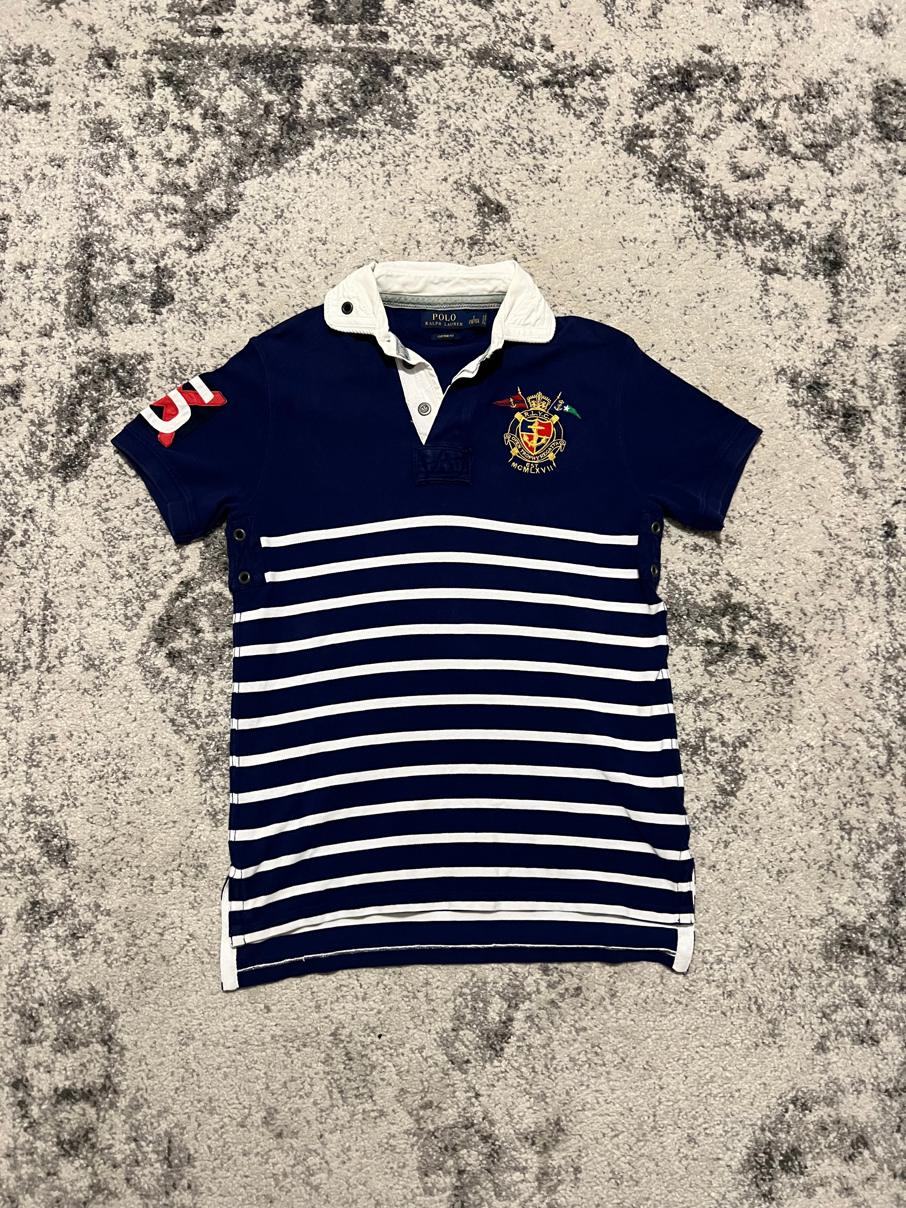 Ralph Lauren Polo Shirt Navy with stripes Size : S (fits like M) Condition : 9/10 Measurements : Length 70cm,... Read more
