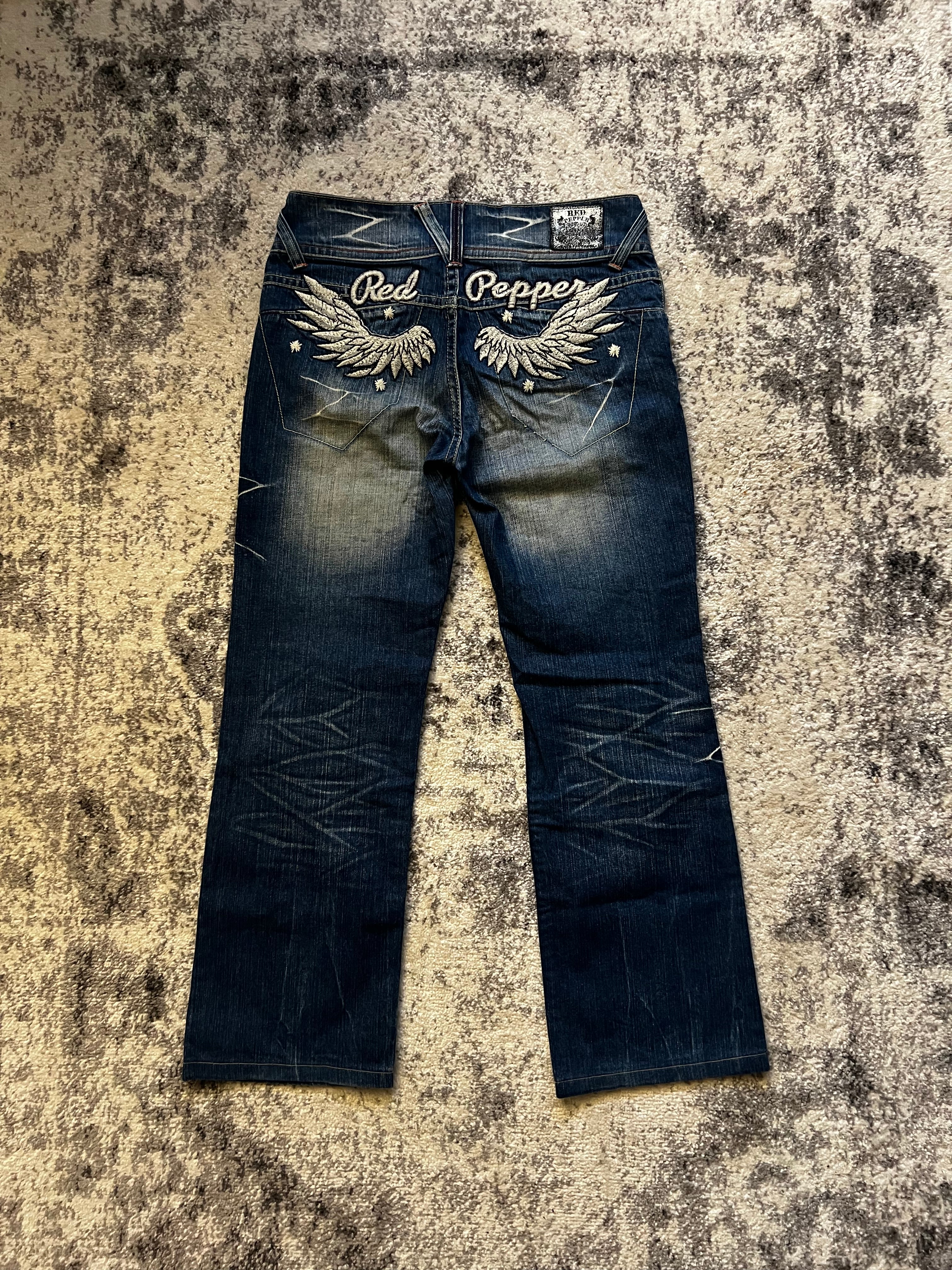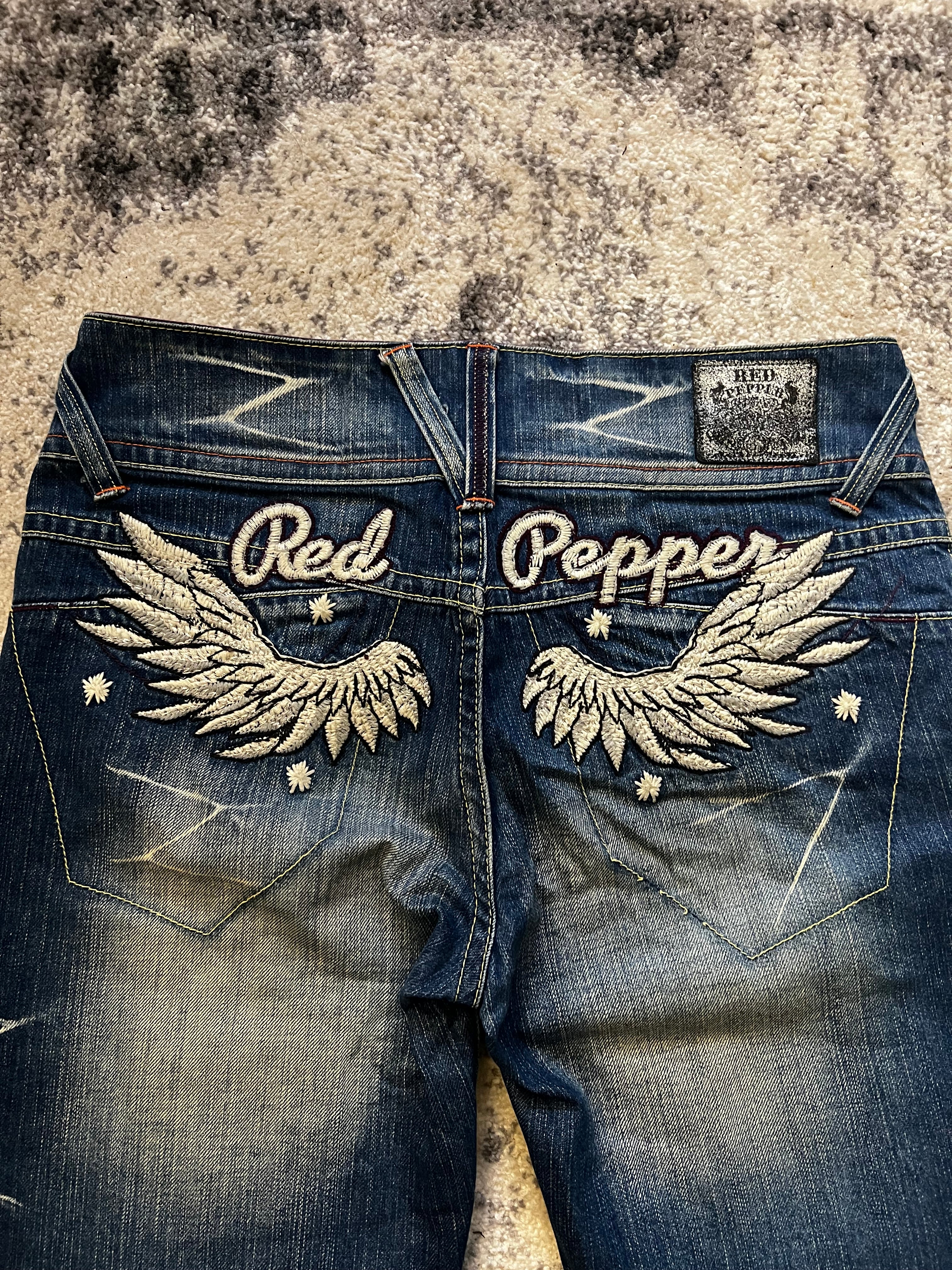 RED PEPPER DENIM 32 Size : M (32) Condition : 9/10 Measurements : Length 103cm, Waist 41cm, Leg Opening 23cm Read more