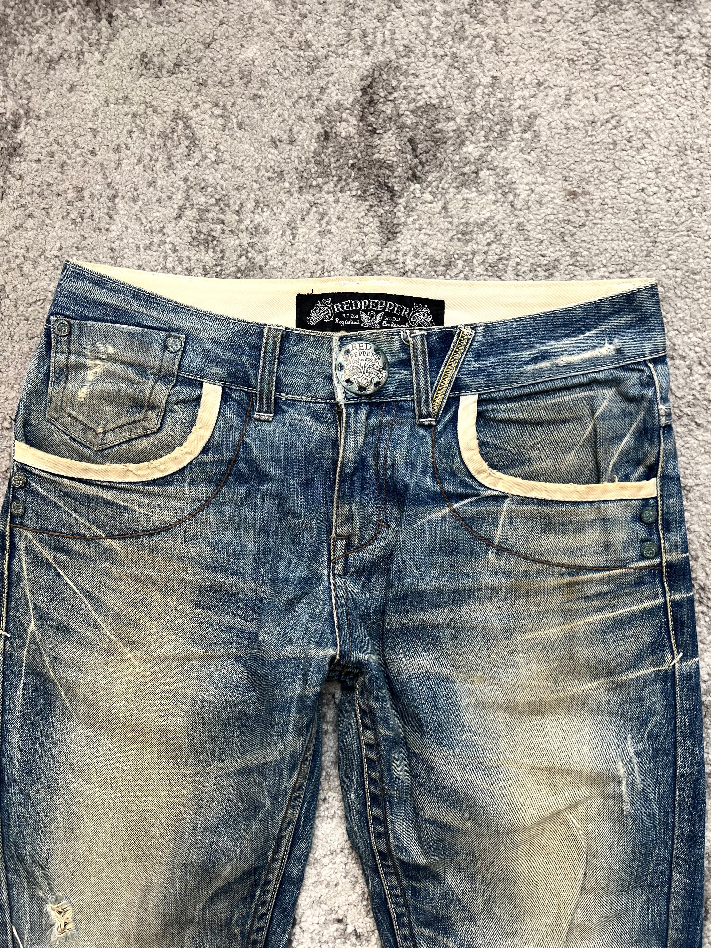 This is more than denim—it’s an anthem. Red Pepper cuts jeans like battle flags, waving for the ones who live loud, crash harder, and refuse to fade quietly. Archive attitude, unapologetically loud.