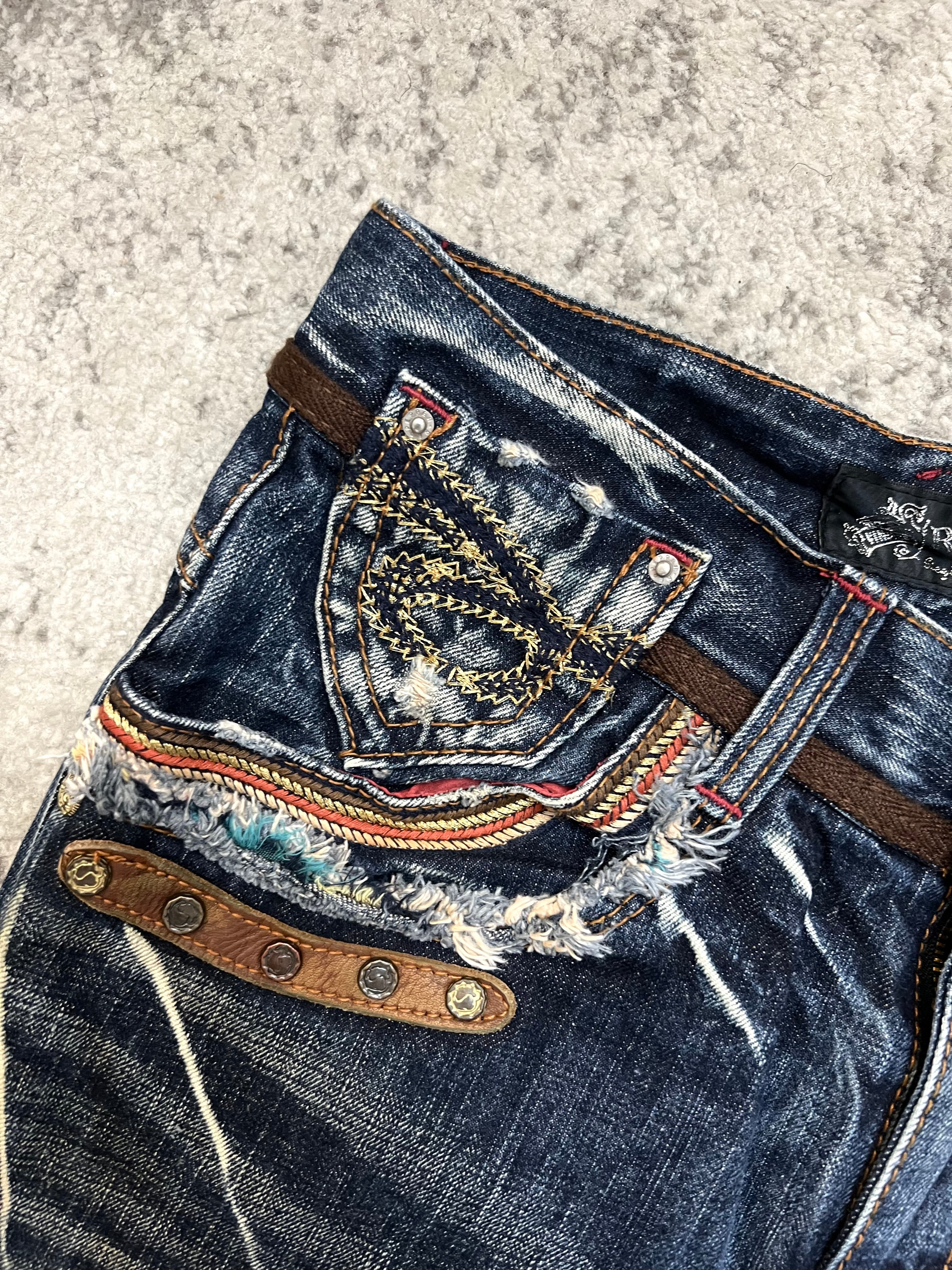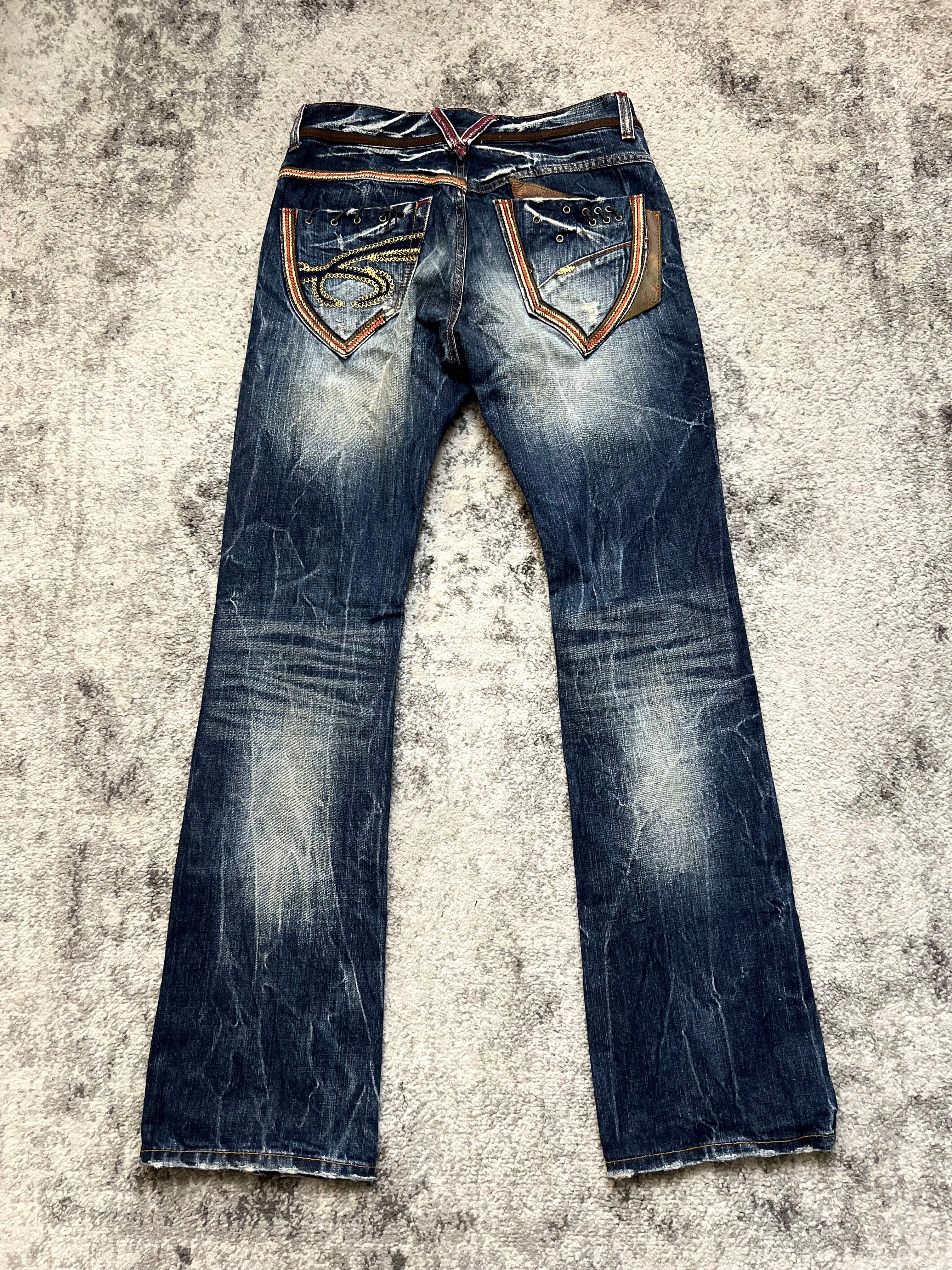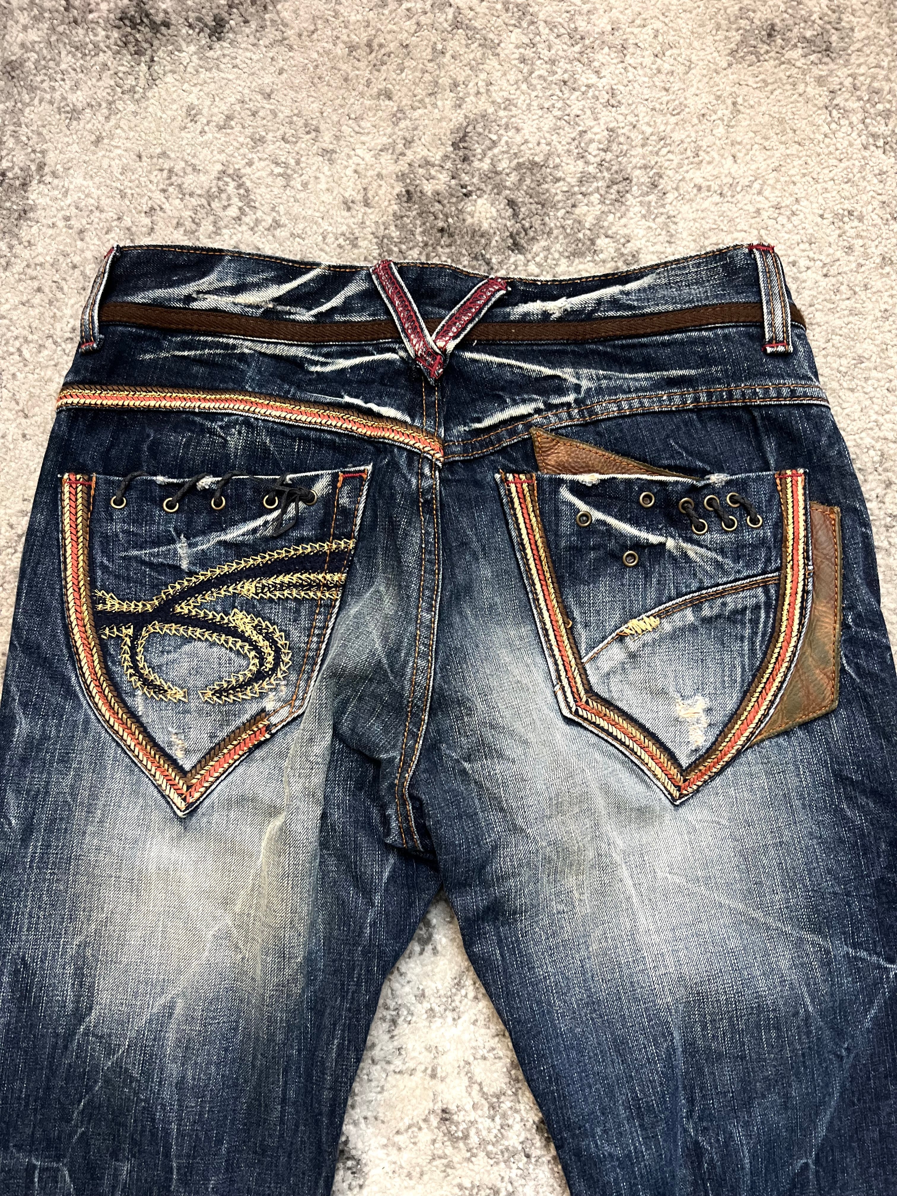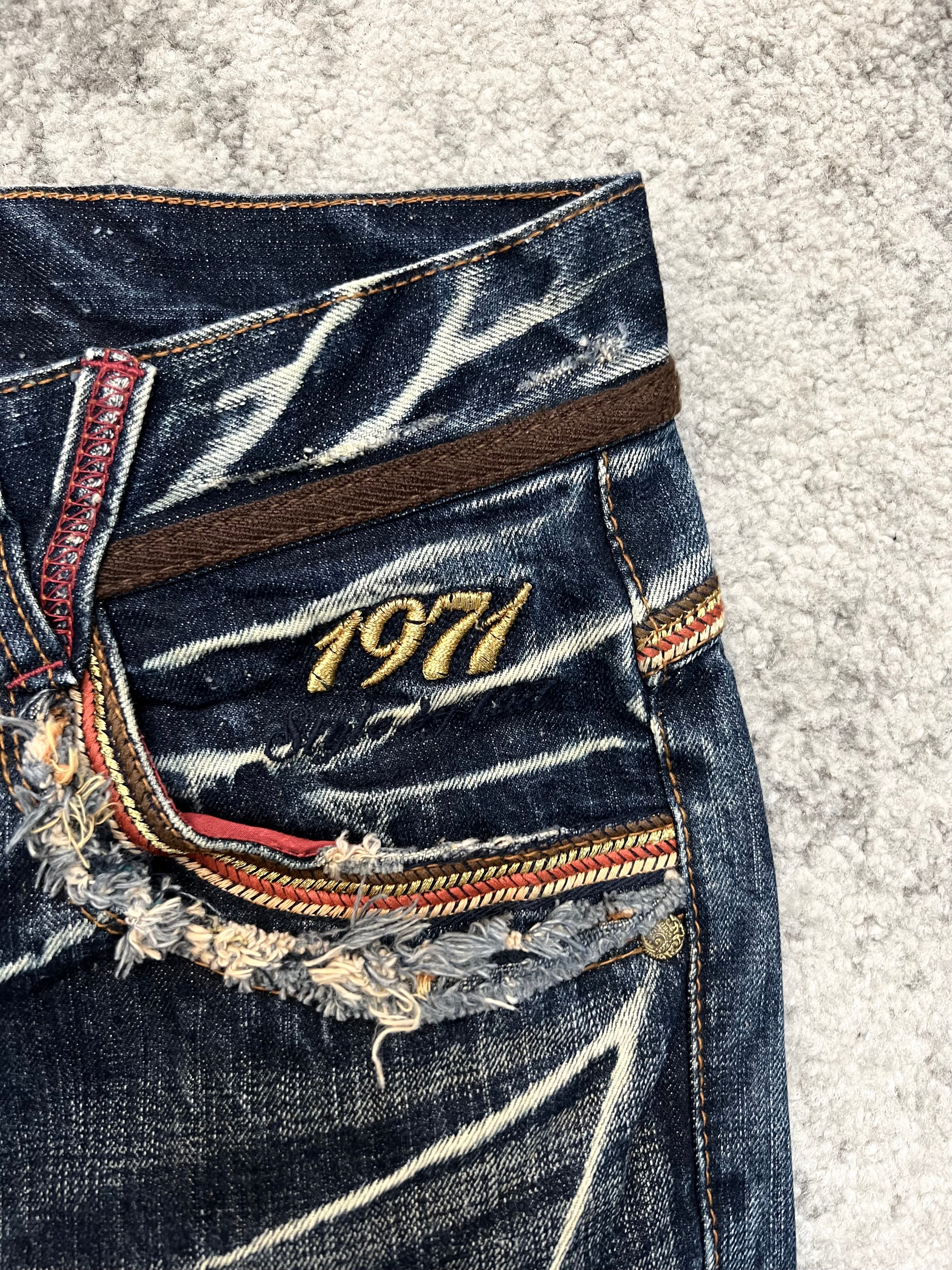 This pair doesn’t whisper, it howls — a visual overload of texture, wash, and Japanese Americana defiance.