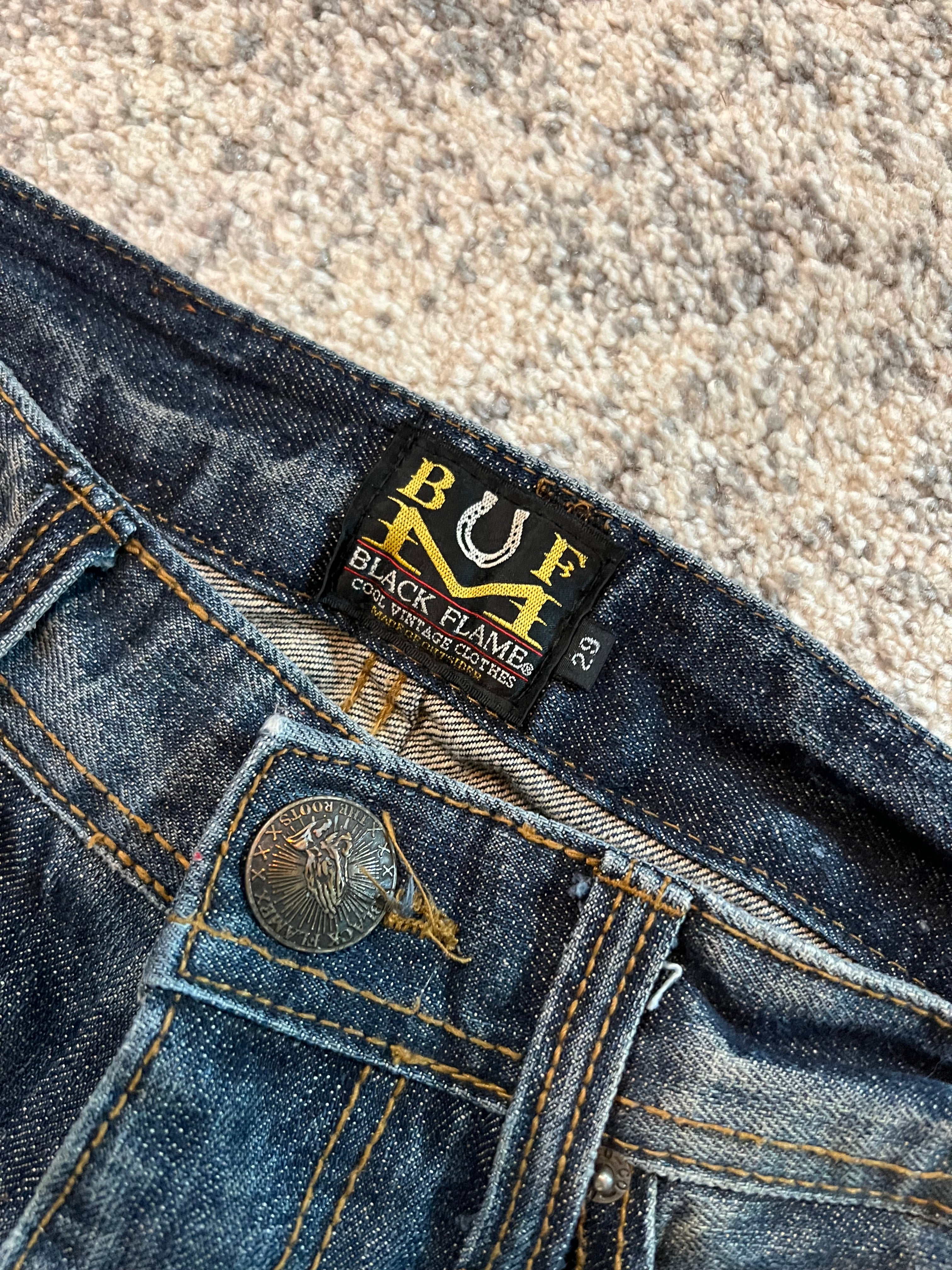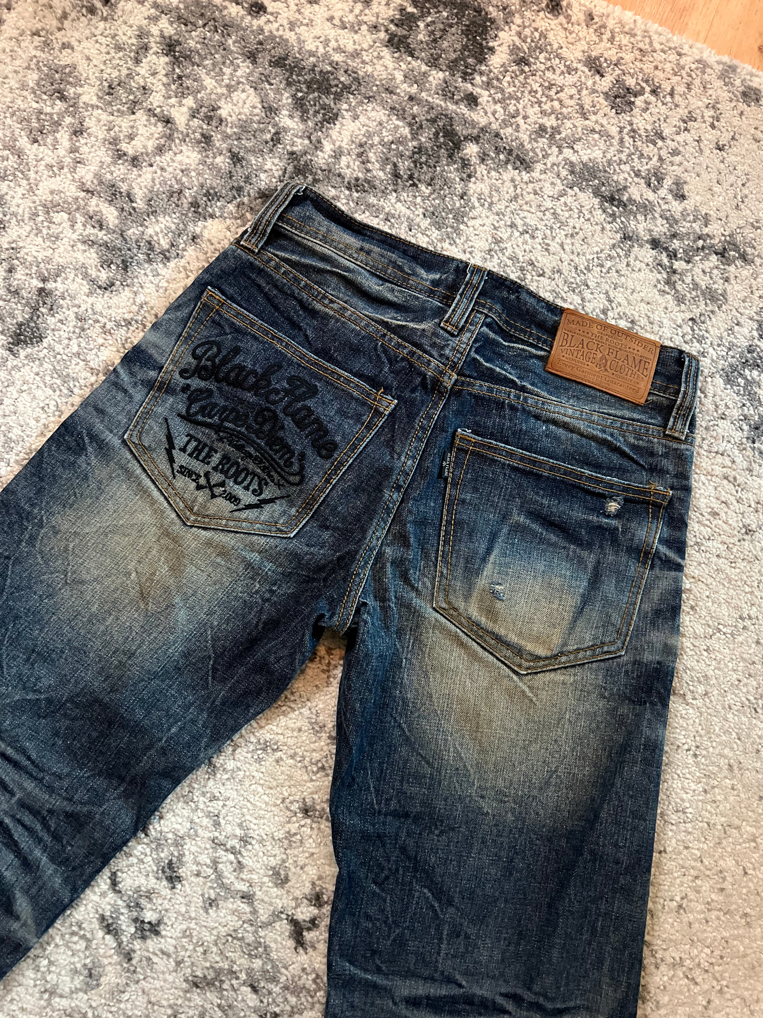 RUF Japanese Flared Denim Size : S Condition : 9/10 Measurements : Length 109cm, Waist 40cm, Leg Opening 22cm Read more